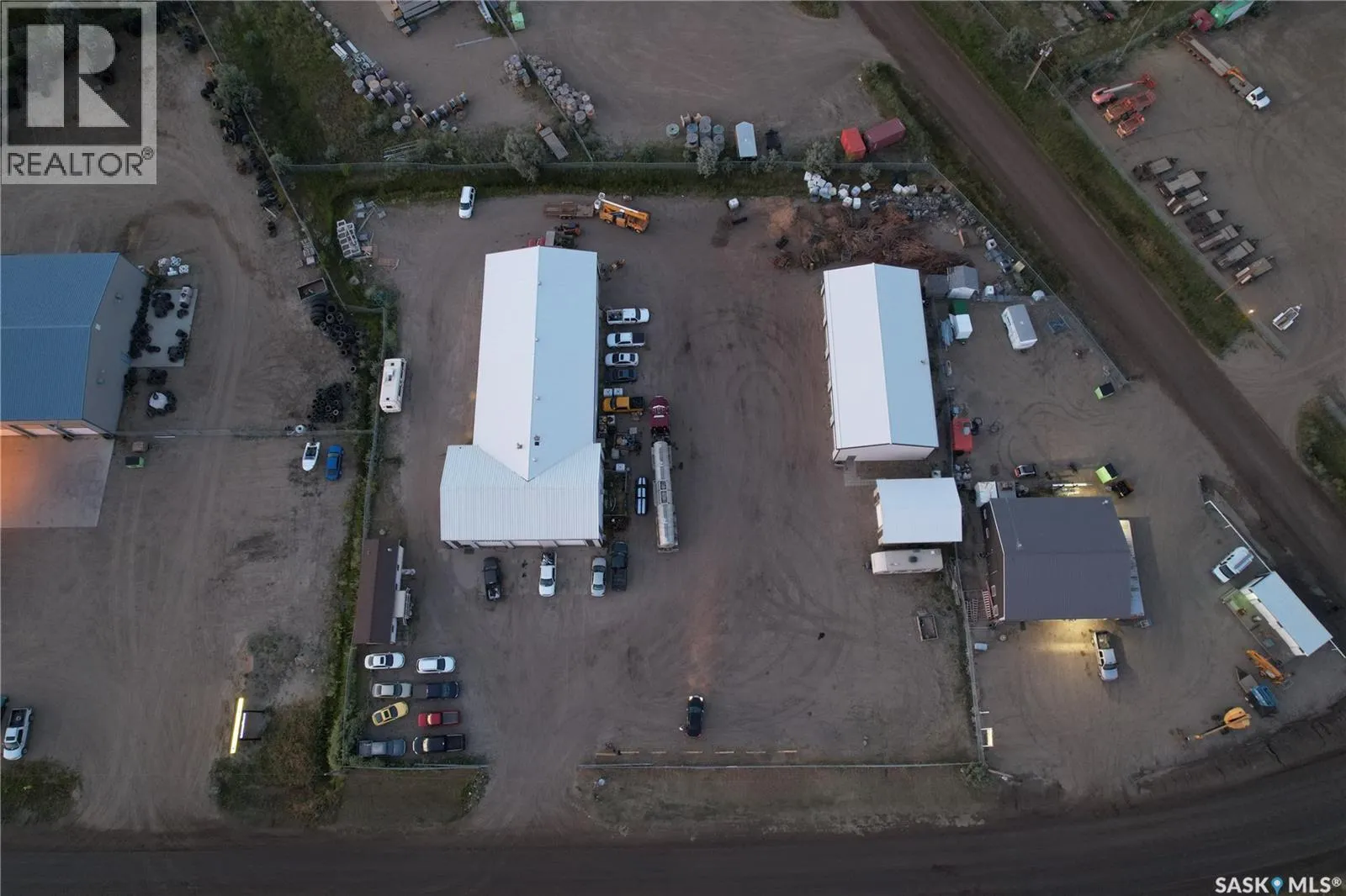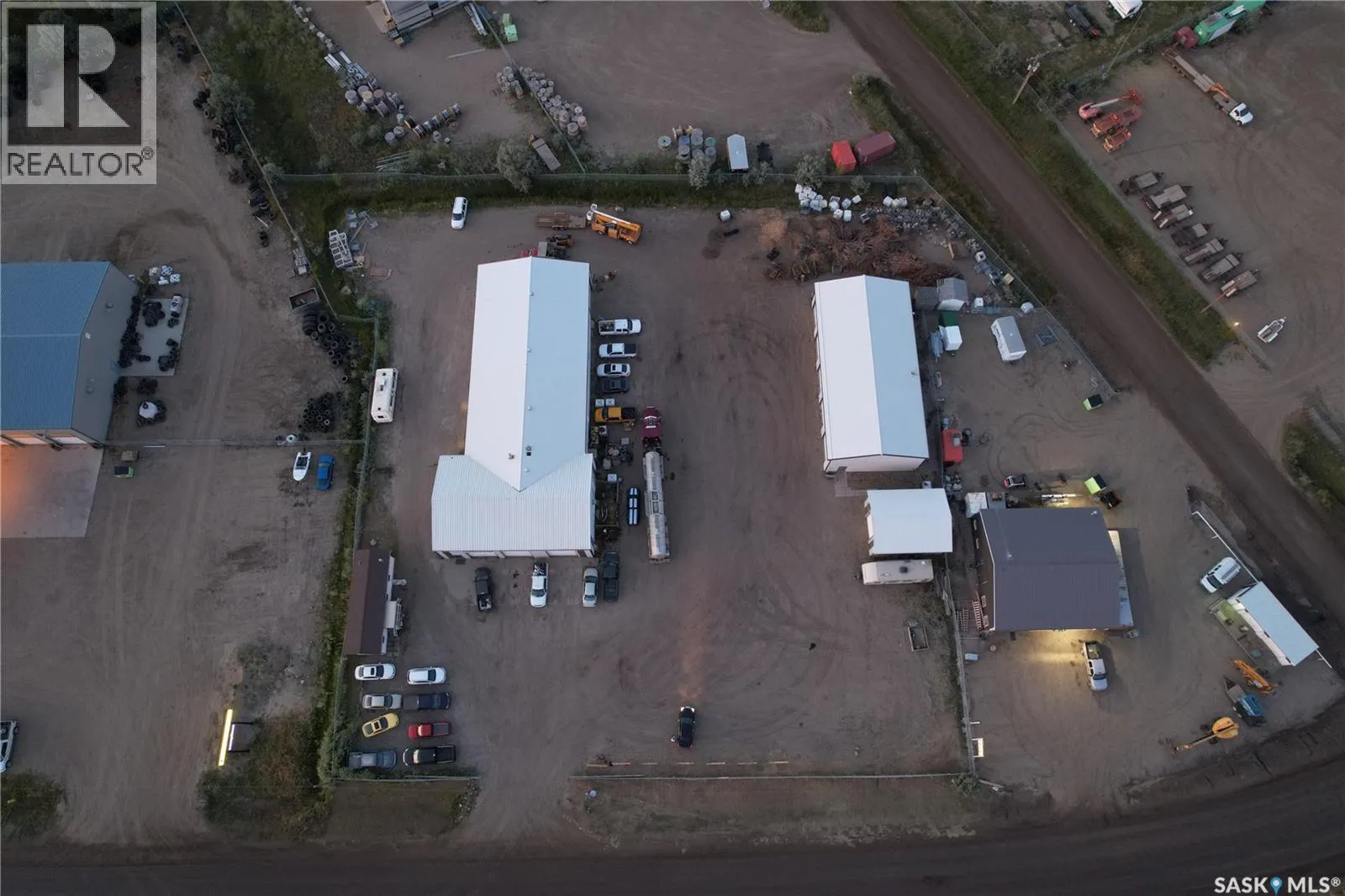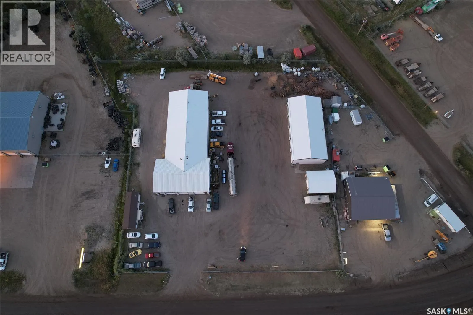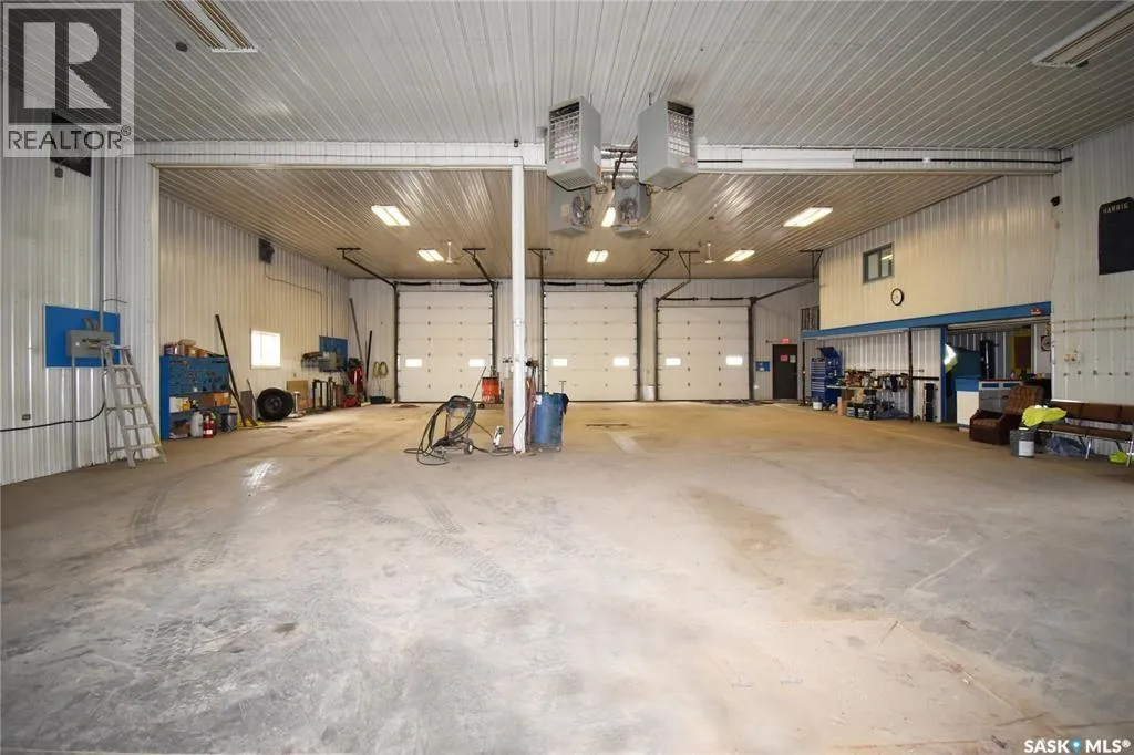 This is high visibility location on the service road in the East Industrial area just below the overpass. Easy access into and around the property. Semi vehicles can make a full drive around the main building. Building #1 is the main shop with 3 front overhead doors facing south and another door on the northeast side. Several walk in doors around the entire building. The original shop was built in 1985 with the back addition in apx. 1995. 1 half bath, locker area, and mezzanine office space. The building as 4 gas heaters located in the center of the ceiling blowing in 4 directions. Metal roof, city water, septic system. This building is approximately 8500 sq. ft. Building #2 is a storage building with 5 overhead doors constructed in 2007; heated, metal roof, gravel floor and apx. 3350 sq. ft. The 3rd building was used to store waste oil - heated, cement floor, metal roof. Near the front of the property on the southwest corner is a 12 x 40 Atco trailer used as finished office space - reception, 1/2 bath and one office. (id:27476)