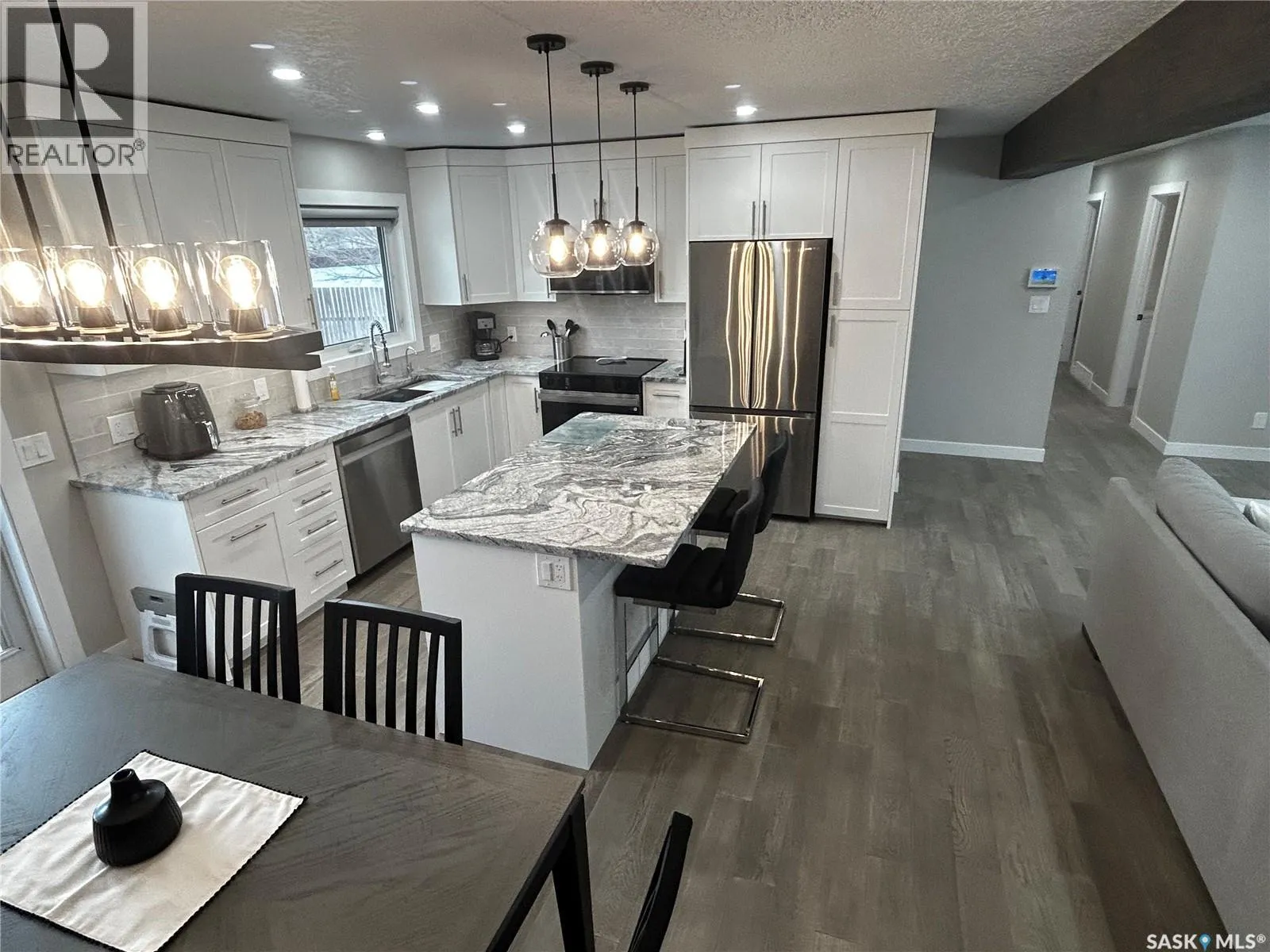 Do you strive to be the ENVY OF THE NEIGHBOURHOOD? Then youâre not going to want to Pass by This Property. This house is completely MOVE-IN-READY. Noting from the front entryway youâll be delighted with the Open Concept, light n bright Livingroom, Dining then Upscale Kitchen! (All NEW APPLIANCES) plus White Cabinets placed amongst the majestic Granite Countertops (& Work Island). + ceramic tile backsplash. The Main floor has been completely updated with new flooring (Engineered Hardwood floors throughout with the exception of plush carpets in the bedrooms and modern vinyl tile in bathrooms). There are 3 bathrooms in this lovely home. Main bathroom enjoys new cabinets/granite countertops/ flooring & lighting. All new paint plus all popcorn ceilings replaced with Knockdown ceiling texture. Youâll definitely want to brag about the Primary Bedroom w. New Ensuite. The size of the room contains a King size bed plus room for more furniture then the Ensuite is simply Terrific with its white & shiny new cabinets, granite countertops as well as the corner glass shower. The Full-size basement is completed with Wide Open spaces for the Family Room, Games area (built in bar), sizeable Laundry room (New large capacity Washer/Dryer) 3 piece bathroom and the Utility room. (New furnace, Water heater, H2o Softener and Reverse Osmosis system + Electrical Panel). For the exterior, enjoy low maintenance Brick and vinyl siding. Thereâs an abundance of Stamped Concrete to complete the stylish ambience. Large yard set on a corner lot (good portion fenced) and a very convenient back deck (privacy fencing) and patio area. The garage is an Oversized Single with the opportunity to perhaps add on to the length of this space for a double garage. (Driveway goes from Front to Back so Options galore). GEMSTONE Lights are an added Bonus. The LIST of updates is Soo Extensive youâll need to print that off to Admire ALL of the work that has been put into this Move-In-Ready Beauty. (id:27476)
