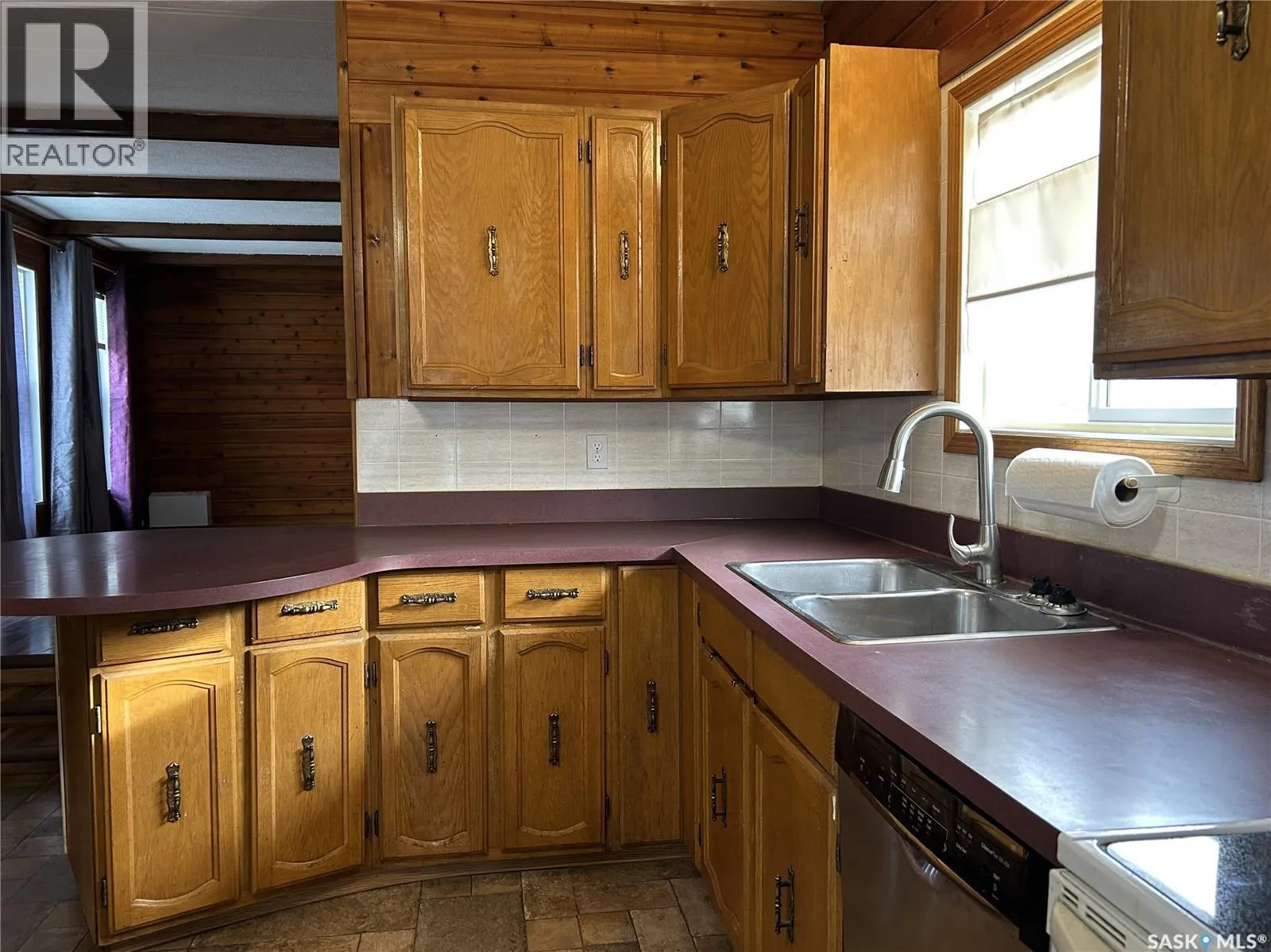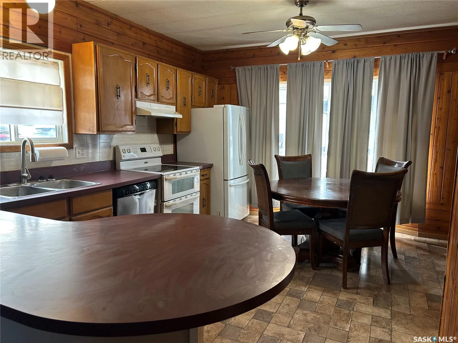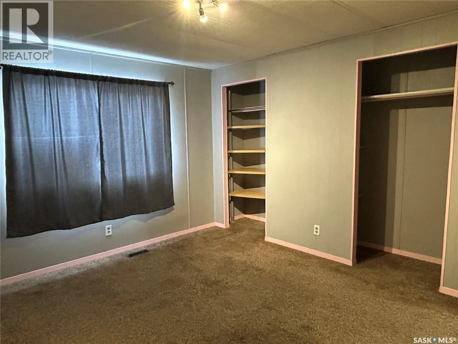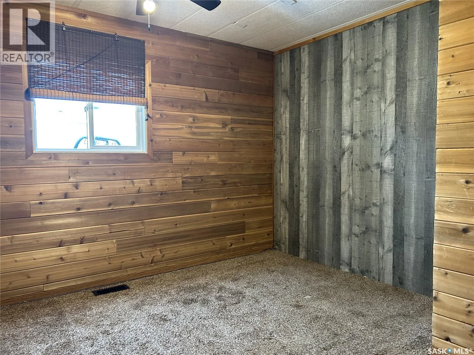 Located in the Royal Heights Mobile Home Park, this cozy home offers a warm, cabin-like atmosphere highlighted by wood panelling. Two thoughtful additions expand the living and storage space, including a versatile fourth bedroom or bonus room, as well as an electrified shed for extra storage. The welcoming entryway features a convenient storage closet and access to the bonus room/additional bedroom. The main living area includes an eat-in kitchen with ample cabinetry, a small pantry, and a built-in storage cabinet, flowing into a spacious living room filled with natural light from three large windows. Down the hallway youâll find main-floor laundry, a full bathroom, and three bedrooms. Outside, enjoy a deck, a nicely sized yard, and a detached storage shedâperfect for outdoor living and extra storage. An affordable opportunity to live comfortably in a well-maintained park setting. (id:27476)