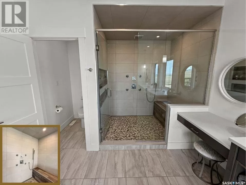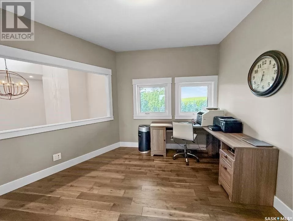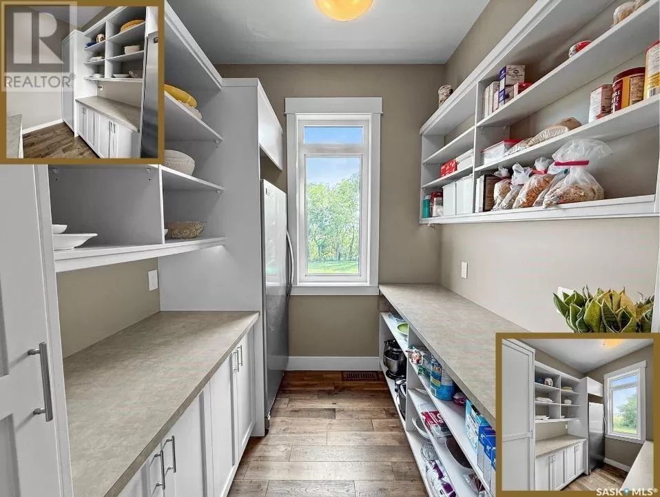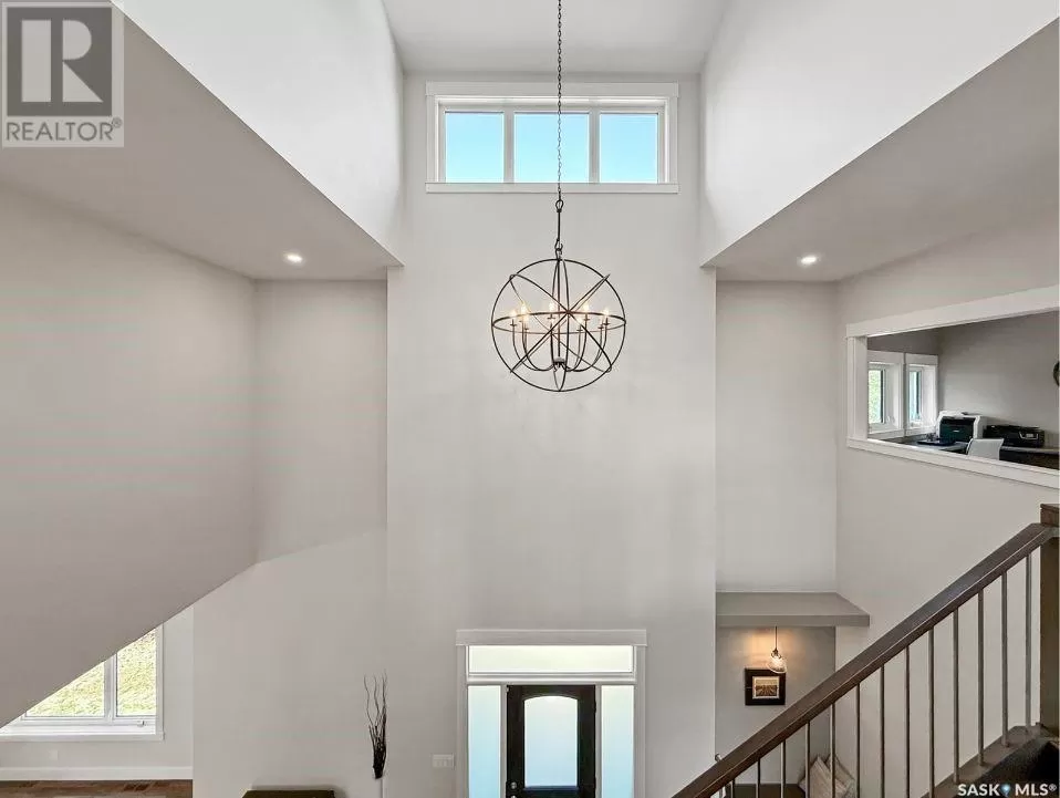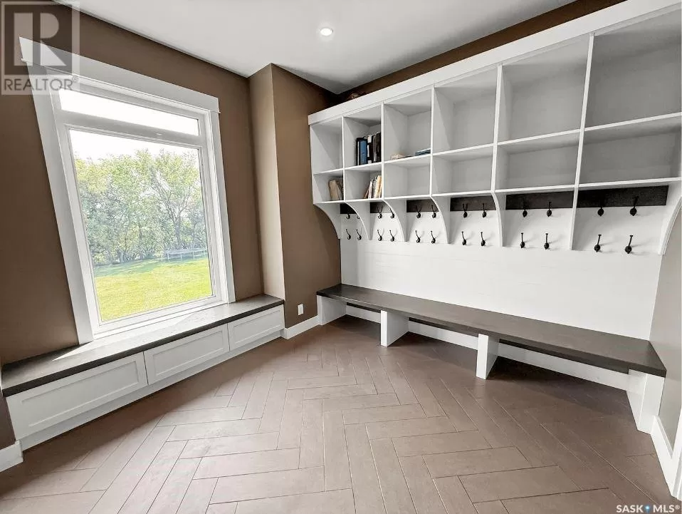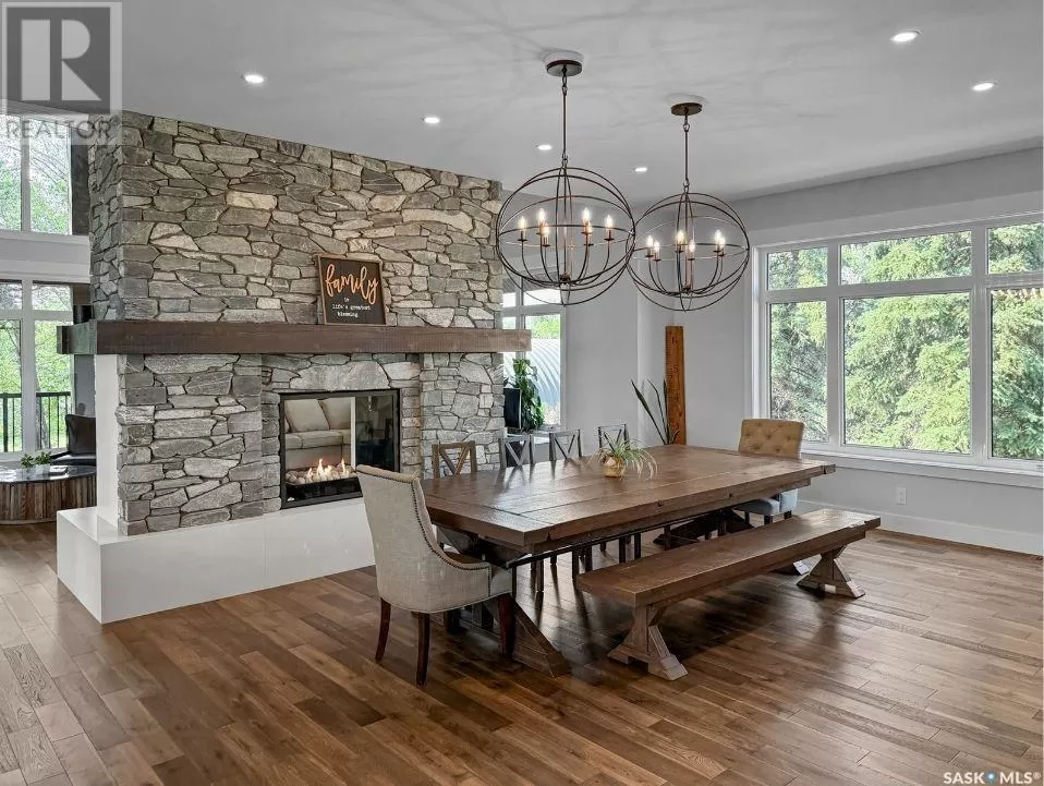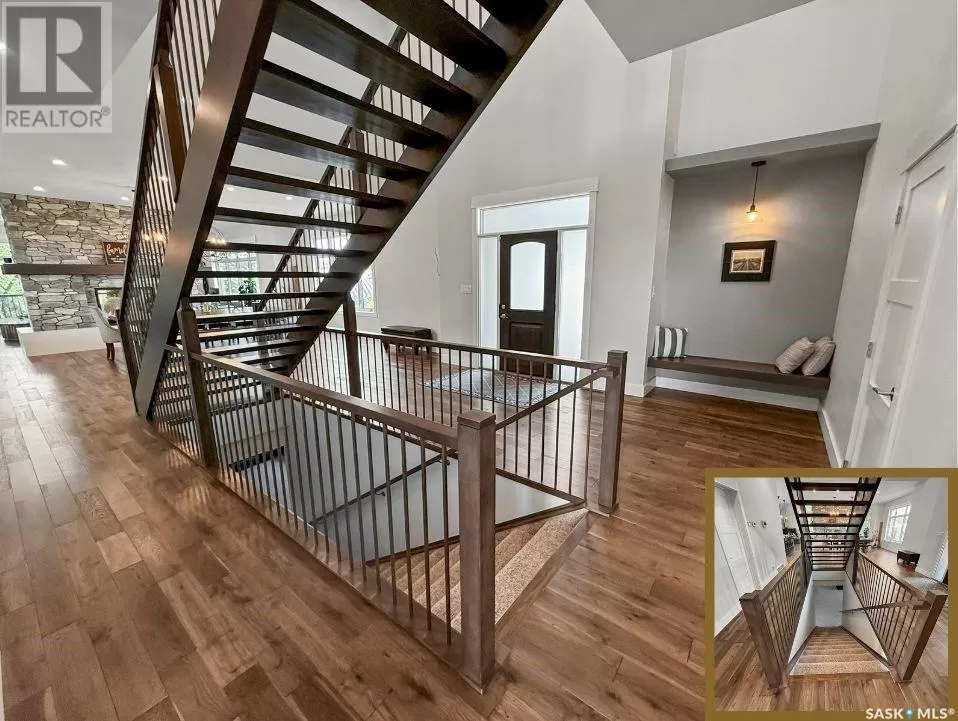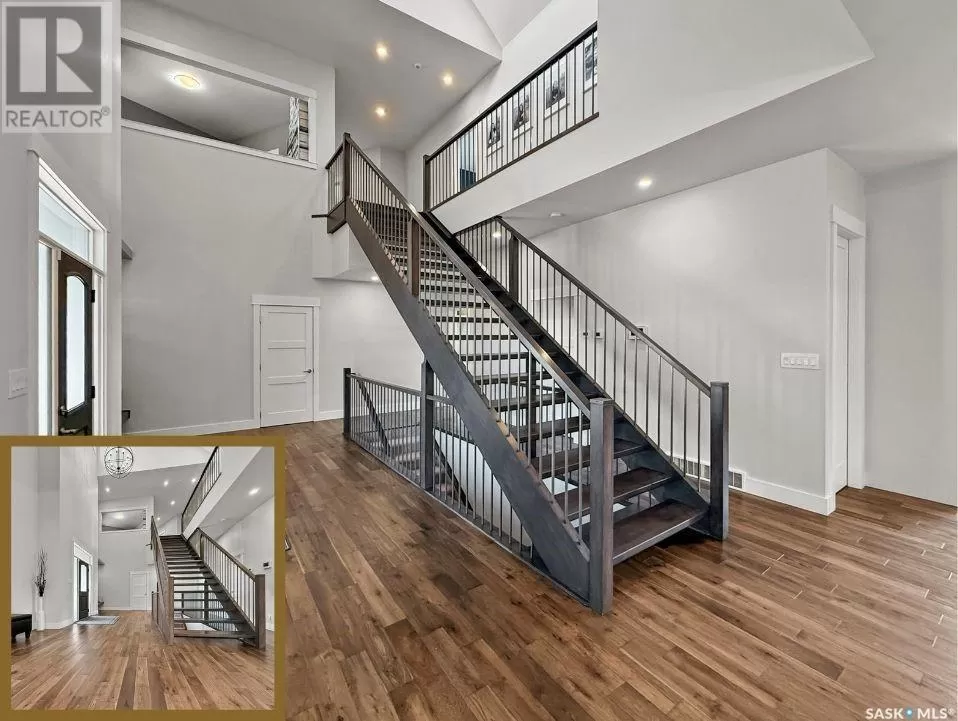 East on #1 Highway turn North prior to Rush Lake onto RR #3115, acreage on east side of road Welcome to a showstopping acreage just minutes from townâwhere luxury, functionality & wide-open spaces come together in the most stunning way. Built in 2017, this exceptional 2-storey home offers over 4,400 sq ft of finished living space, a heated triple attached garage & outdoor amenities that are next-level. Step into the oversized entry & prepare to be wowed by the open-riser staircase with floating treads leading both up & down. The heart of the home is a grand open-concept kitchen, dining room & great room with vaulted ceilings, floor-to-ceiling windows & a dramatic double-sided gas fireplace that anchors the living space & formal dining area. Gorgeous hardwood floors flow throughout the main. The dream kitchen is magazine-worthyâquartz counters, oversized sit-up island w prep sink, 5-burner gas range, BI ovens, full appliance pkg & a jaw-dropping butlerâs pantry. Wall-to-wall windows bring the outdoors in, garden doors lead to a vaulted, covered 2-tiered deck featuring a stone-accented wood-burning fireplace. This is outdoor living at its finestâdesigned for gathering, relaxing & unobstructed country views. A full 3-pc bath & large laundry/mudroom off the garage complete the main floor. Upstairs, the primary suite is a true retreatâcontemporary black French doors open to both north & south-facing balconies. Enjoy his & hers walk-in closets, a spa-inspired ensuite w freestanding tub, double vanities, tiled shower & a 2-sided gas fireplace shared w the bedroom. A home gym w balcony access, open-concept office, 3 additional bedrooms (one oversized), & a 5-pc main bath round out this level. The partially finished basement offers a huge family/games room, 2 more bedrooms & an upgraded mechanical room. Outside, enjoy a beautifully treed yard, firepit, above-ground pool, 40x60 Quonset converted to an indoor rink + outdoor rink. The well offers ample water. This one-of-a-kind acreage offers luxury, lifestyle & spaceâinside & out. (id:27476)