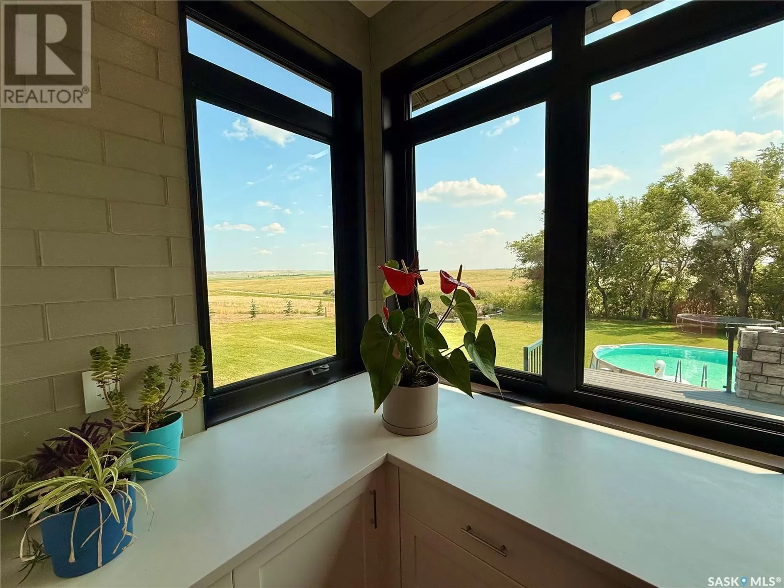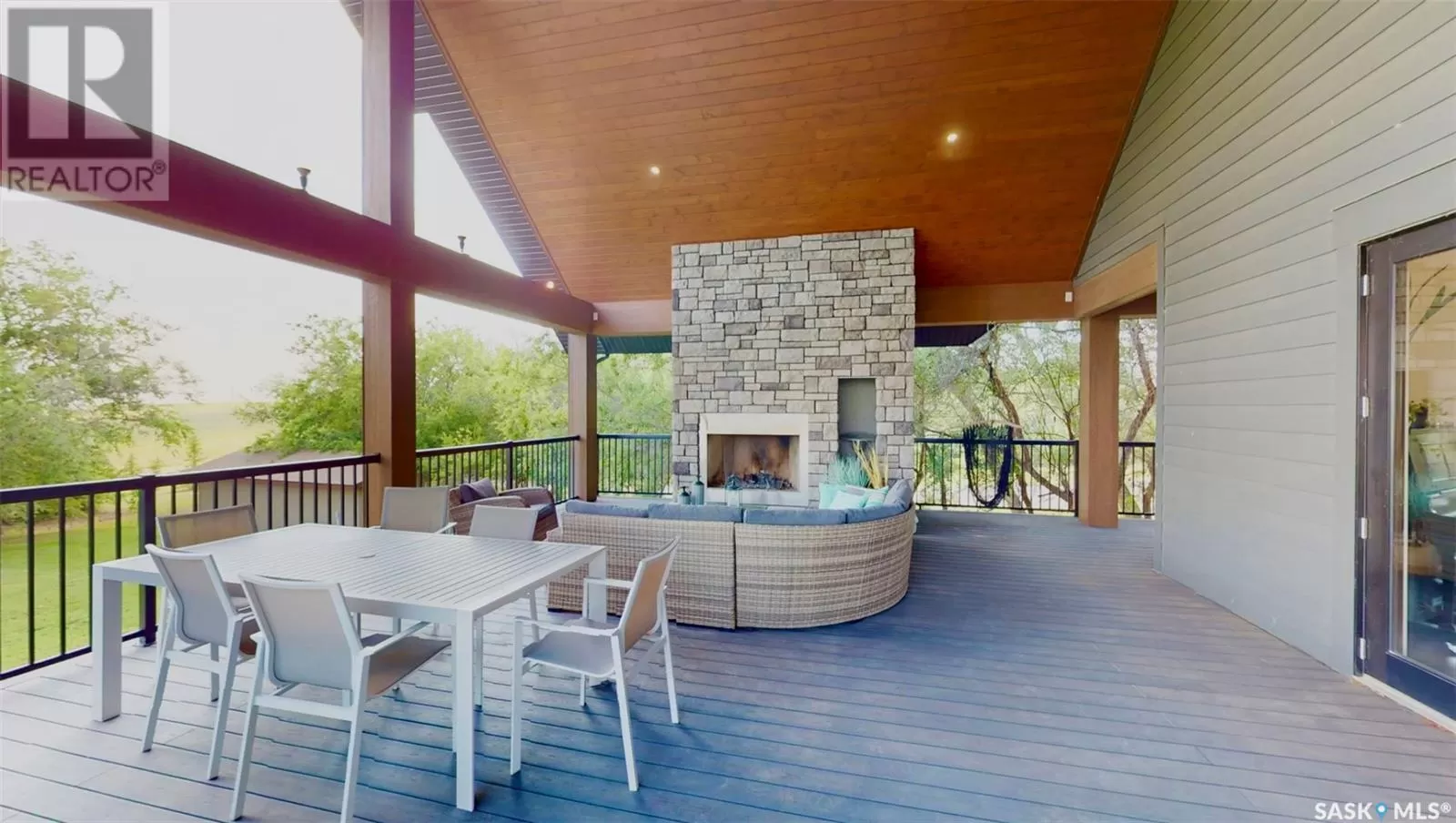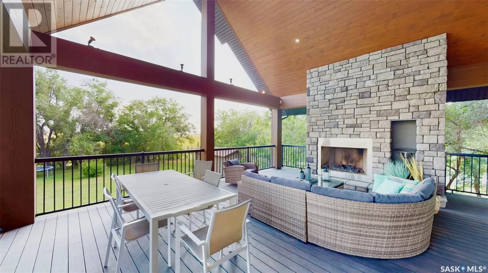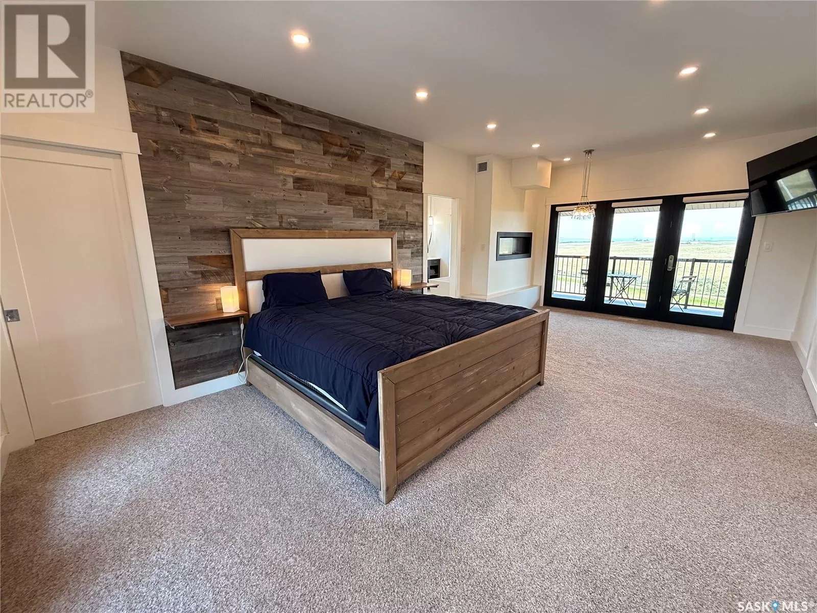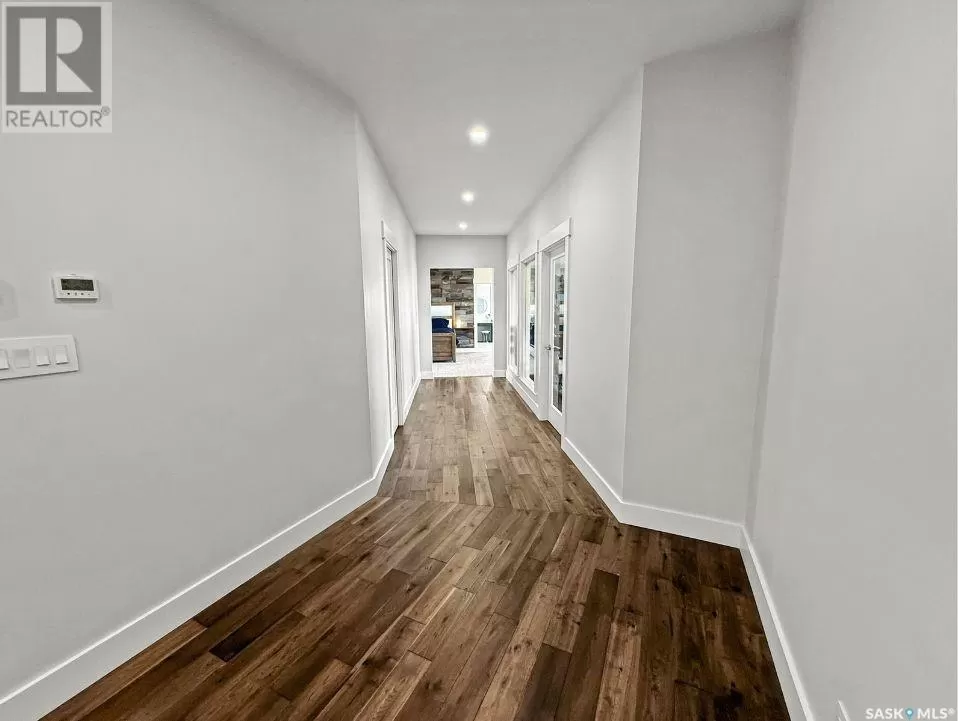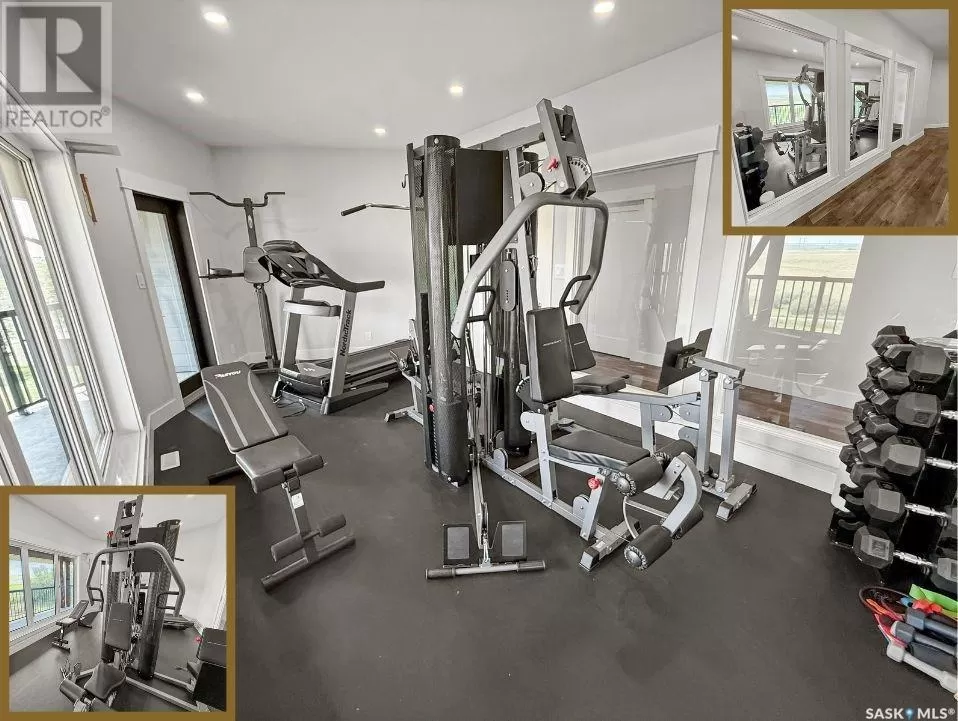 East on #1 Highway turn North prior to Rush Lake onto RR #3115, acreage on east side of road Welcome to a showstopping acreage just minutes from townâwhere luxury, functionality & wide-open spaces come together in the most stunning way. Built in 2017, this exceptional 2-storey home offers over 4,400 sq ft of finished living space, a heated triple attached garage & outdoor amenities that are next-level. Step into the oversized entry & prepare to be wowed by the open-riser staircase with floating treads leading both up & down. The heart of the home is a grand open-concept kitchen, dining room & great room with vaulted ceilings, floor-to-ceiling windows & a dramatic double-sided gas fireplace that anchors the living space & formal dining area. Gorgeous hardwood floors flow throughout the main. The dream kitchen is magazine-worthyâquartz counters, oversized sit-up island w prep sink, 5-burner gas range, BI ovens, full appliance pkg & a jaw-dropping butlerâs pantry. Wall-to-wall windows bring the outdoors in, garden doors lead to a vaulted, covered 2-tiered deck featuring a stone-accented wood-burning fireplace. This is outdoor living at its finestâdesigned for gathering, relaxing & unobstructed country views. A full 3-pc bath & large laundry/mudroom off the garage complete the main floor. Upstairs, the primary suite is a true retreatâcontemporary black French doors open to both north & south-facing balconies. Enjoy his & hers walk-in closets, a spa-inspired ensuite w freestanding tub, double vanities, tiled shower & a 2-sided gas fireplace shared w the bedroom. A home gym w balcony access, open-concept office, 3 additional bedrooms (one oversized), & a 5-pc main bath round out this level. The partially finished basement offers a huge family/games room, 2 more bedrooms & an upgraded mechanical room. Outside, enjoy a beautifully treed yard, firepit, above-ground pool, 40x60 Quonset converted to an indoor rink + outdoor rink. The well offers ample water. This one-of-a-kind acreage offers luxury, lifestyle & spaceâinside & out. (id:27476)