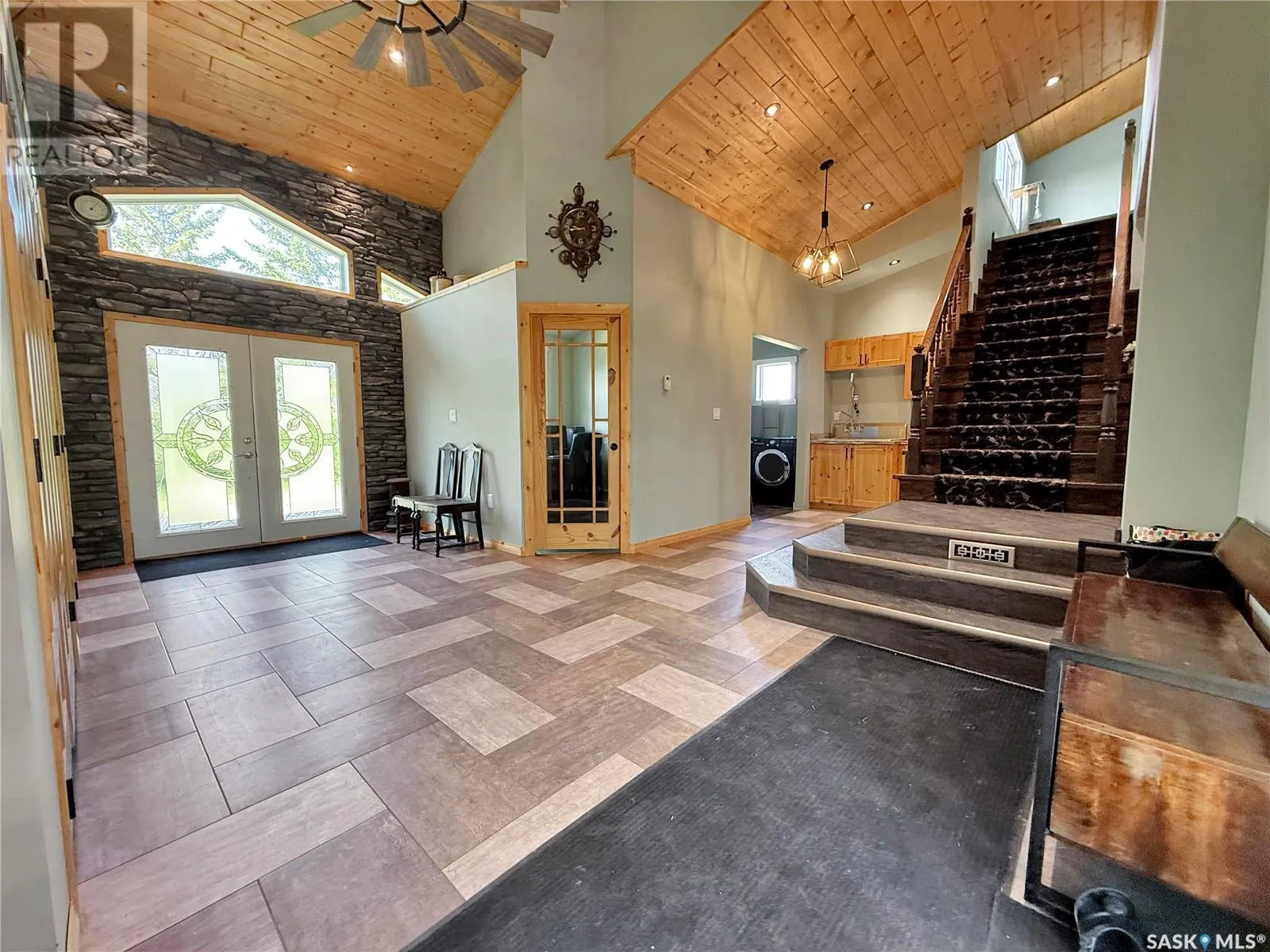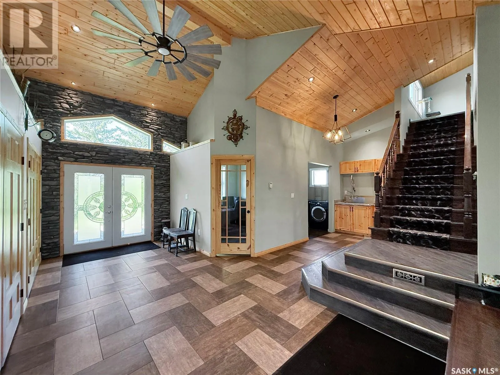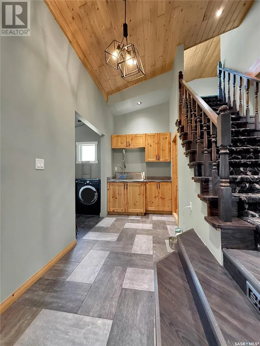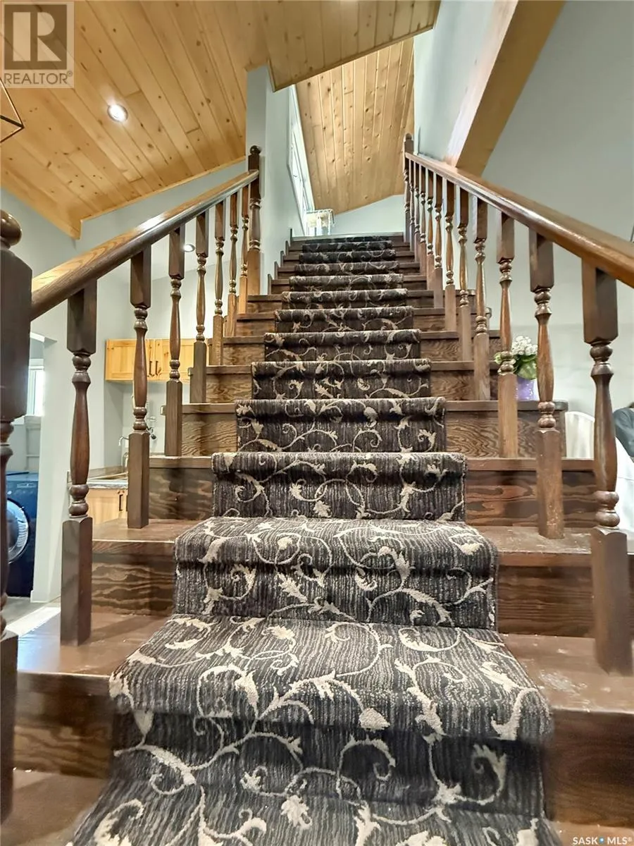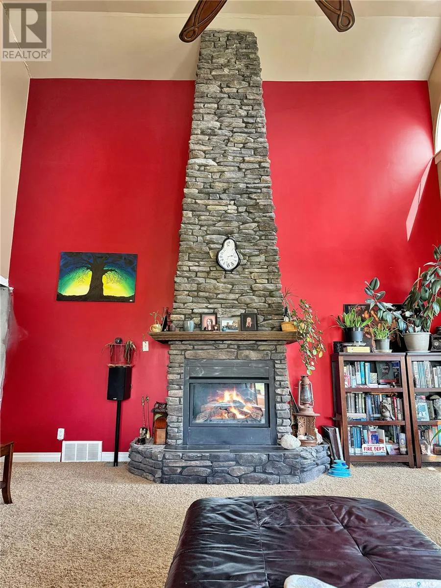 The perfect location for an acreage does exist! Imagine ten acres, full acreage capabilities but with the ability to ride your bike to town or walk to the brag worthy community ball diamonds/Slims Salloon for a beverage/snack. This acreage boasts 10 acres, a 32x12 shed/shop, and a copious amount of updated sq ftg and living space. Covered porches, concrete BBQ zones, perennials, trees & a move in ready-updated home all on the edges of Stockholm Se Sk. Upon entry a massive infloor heat entry way with custom closets, garage access, office/bedroom & a storage area with laundry and large produce sink for the great sized garden on the west edge of the 10 acre parcel. Another new addition zone on this home add the master bedroom/living room with a shared NG fire place and striking vaulted ceilings. A chefs dream kitchen, over sized pantry with custom pull outs add extra function to this updated & upgraded kitchen/dining room. A mainfloor 3 pc bath with custom tile work & a theatre room further extend this main floors desirable attributes of a dream home. The top floor gives this home added Value with two extra bedrooms & a 2 pc bathroom and updated flooring. Updated mechanical in the solid basement is not limited to but includes wiring, hot water on demand, RO, Softener & forced air ng furnace & more. This is a package deal with motivated sellers, book your showing with your agent in SE SK where potash, wheat and recreation meet! (id:27476)