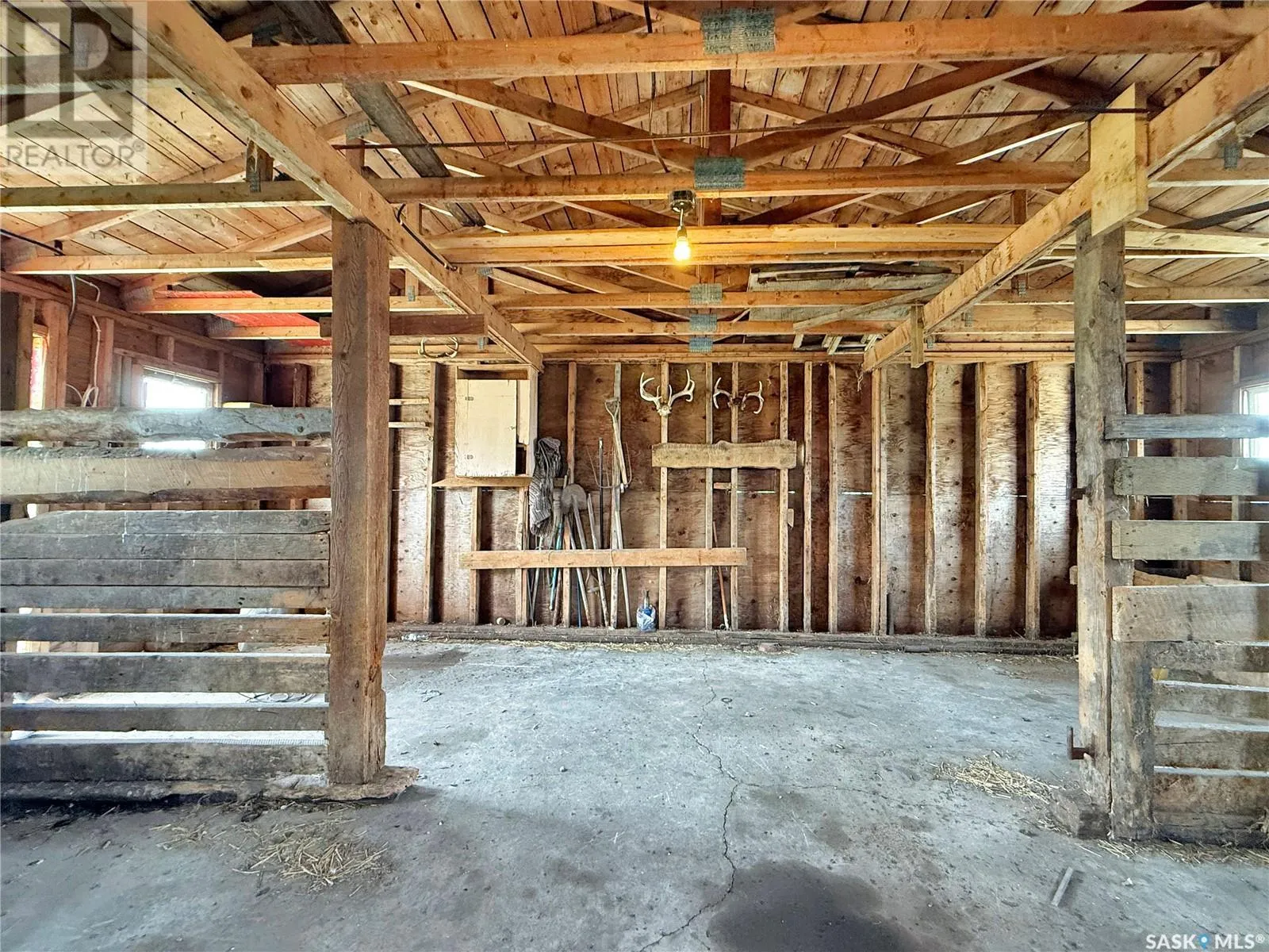 Do you have a Little bitty plan and a little bitty dream? It's all part of your little bitty scheme? The Excel acreage can be a part of where your 17ish acre little bitty farm starts! 16 kms from #9 highway a 4 bedroom 1 bath Eatonesk home is perched and awaiting your personal preference renovations & updates on a mature treed & power/septic serviced site. A cowboy or chicken ladies dreams can unfold once stepping in to the 22 x 24 tin roofed barn with power & 2 hydrants & 1 watering bowl- adding immense value to your horse or cattle set up along with cement bottom bins ranging in size: 2 @ 1350 bushel, 1 @ 1650, 1@2800, 3@1350 bushels & 1 wood bottom feed bin @ 1000 bushels along side the barn for access and ease for that horse lovers hide out. 80/90 ft well with 36" cribbing & 3 year old well pump is another huge win for this acreage buyer. Recent inspections and updates have been completed on the oil furnace to meet insurance regulations & standards. New basement refurbish as well as a fresh bathroom Reno on the mainfloor, new paint on floor 2 . The home itself has a tin roof and upgraded vinyl siding as well as a cement pad ready for a fresh new screened in sun porch to be attached. Original wooden details line the homes interior. No need to ask if you can count your chickens & goats in town when Excel acreage has the space you need! Pull the trigger on your acreage dreams today by contacting your agent for a tour where Potash, Wheat & Prairie meet! (id:27476)