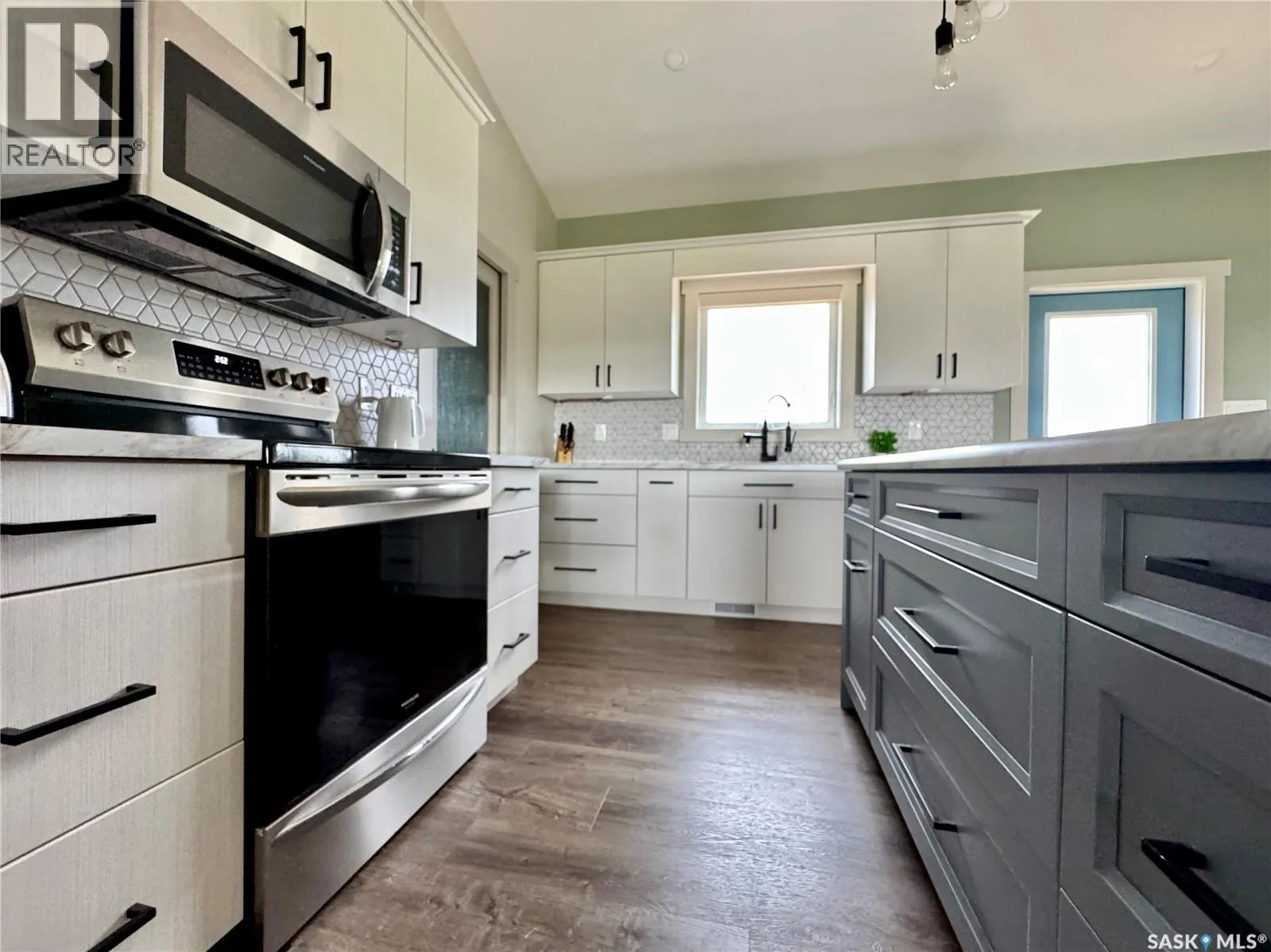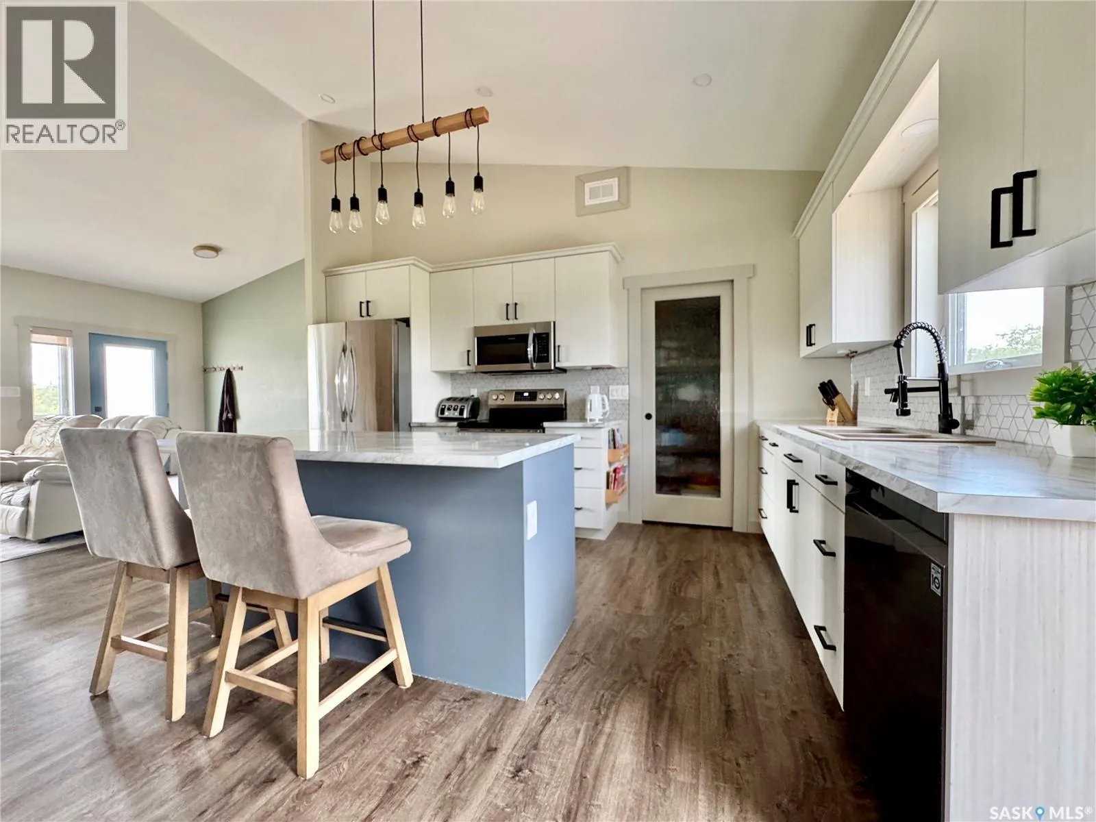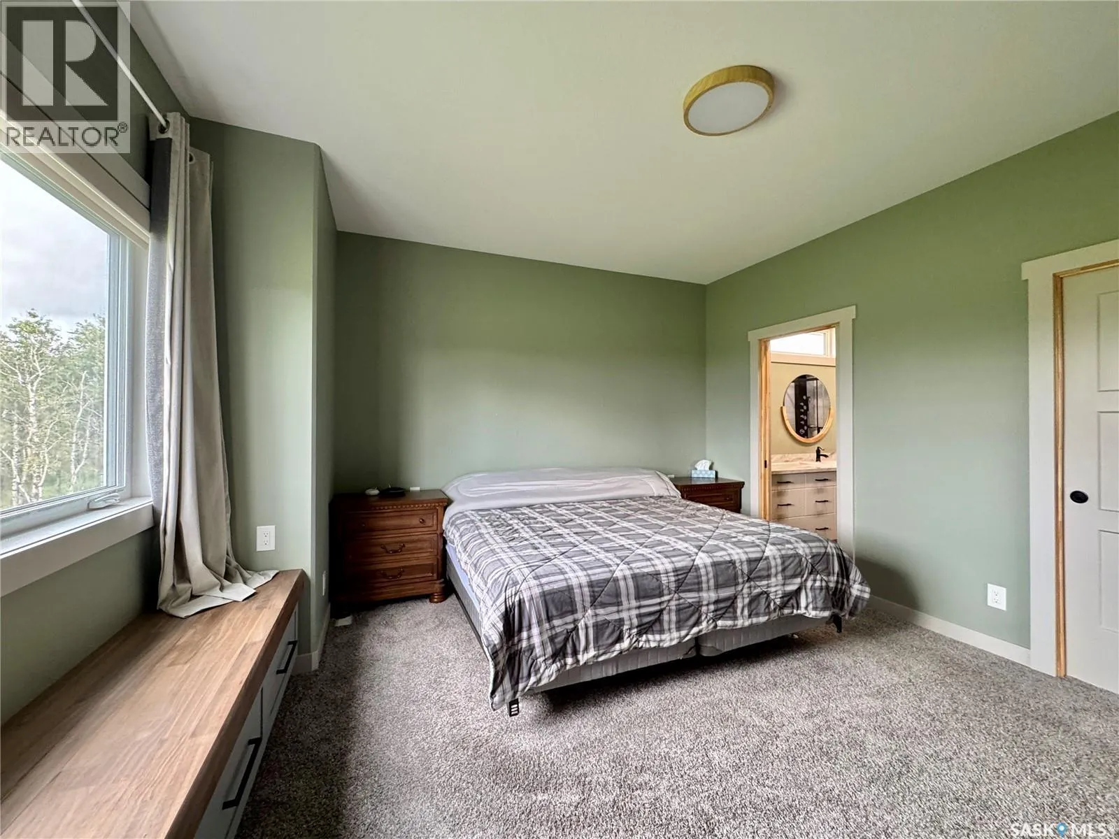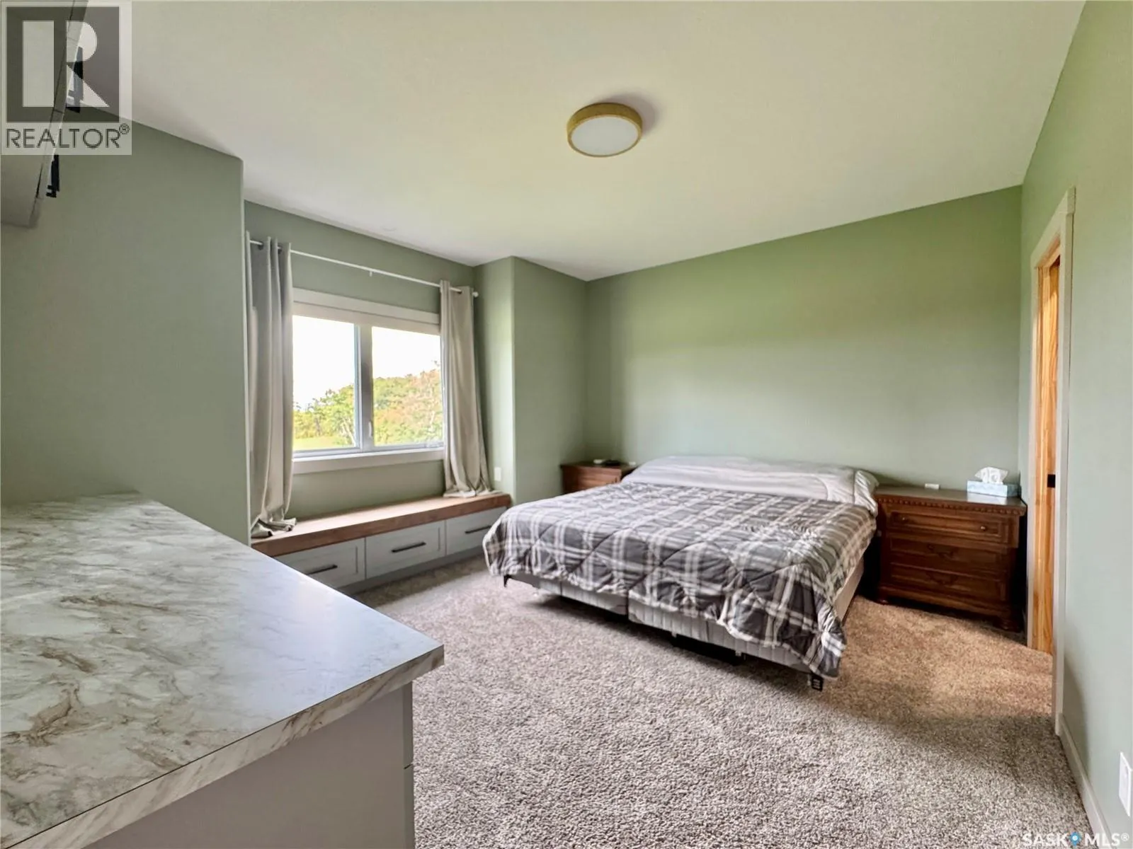 West of Stockholm down Excel Road North - look for signs - text agent for pin drop At Natures Edge Acres, nature and new construction come together in a way rarely seen in SE Saskatchewan. Tucked behind a mature shelterbelt where deer and songbirds wander, this 2022 custom build delivers more than 3,000 sqft. of exceptional living spaceâa chance to own a true countryside original without the wait of building. Designed from the ground up with family and entertaining in mind, the home offers 5 bedrooms and 4 bathrooms, plus a surprise youâll be talking about long after the showing: a 6th bedroom with a built-in slide right at the heart of the house. Whether itâs kids at play or simply hauling heavy bags downstairs, the slide turns everyday tasks into something fun. The main living area wows from the moment you walk in. Vaulted ceilings and wall-to-wall windows capture prairie light from sunrise to those legendary Saskatchewan sunsets. A dramatic floor-to-vault river rock fireplace anchors the spaceâbeautiful to look at and practical too, with settings that keep the home warm even if the power goes out. The chefâs kitchen is ready for gatherings big or small, complete with a generous prep island, deep dovetailed pot drawers, and soft-close cabinetry. The sink frames tranquil eastern views while the west-facing picture window serves up nightly sunset shows. Built with modern efficiency in mind, the home features geothermal heating and cooling, weeping tile, excellent insulation, and spa-style ensuite showers. The electrical wiring has been thoughtfully plannedââoverbuilt,â as the owners like to sayâso youâre ready for anything from a future basement bar with toe-kick lighting to advanced tech upgrades. Outside, the unfinished shop is already set up for big projects with a welder plug, 30-amp camper hookup, and doors tall enough for a lifted truck. Whether youâre after a family retreat, a place to host unforgettable gatherings, or simply room to breathe, this acreage offers a rare combination of new-home comfort and Saskatchewanâs natural beauty. (id:27476)