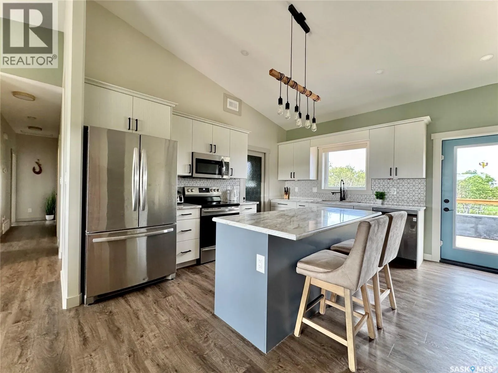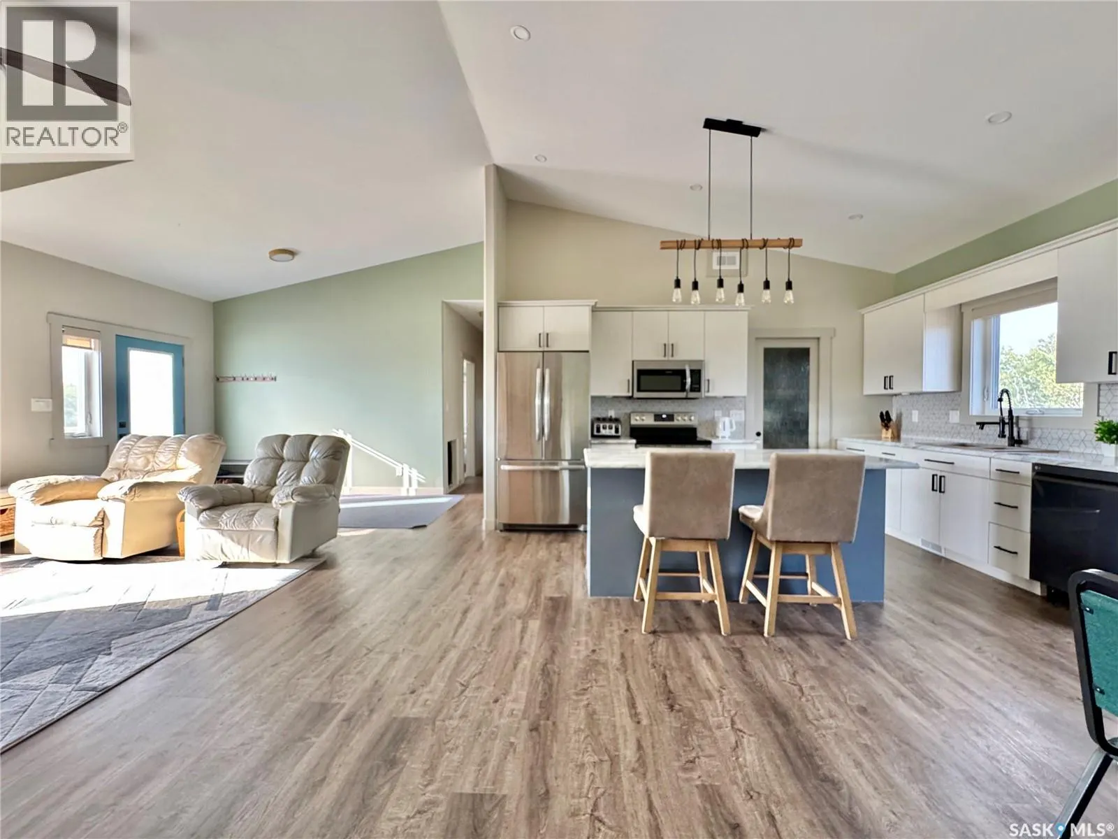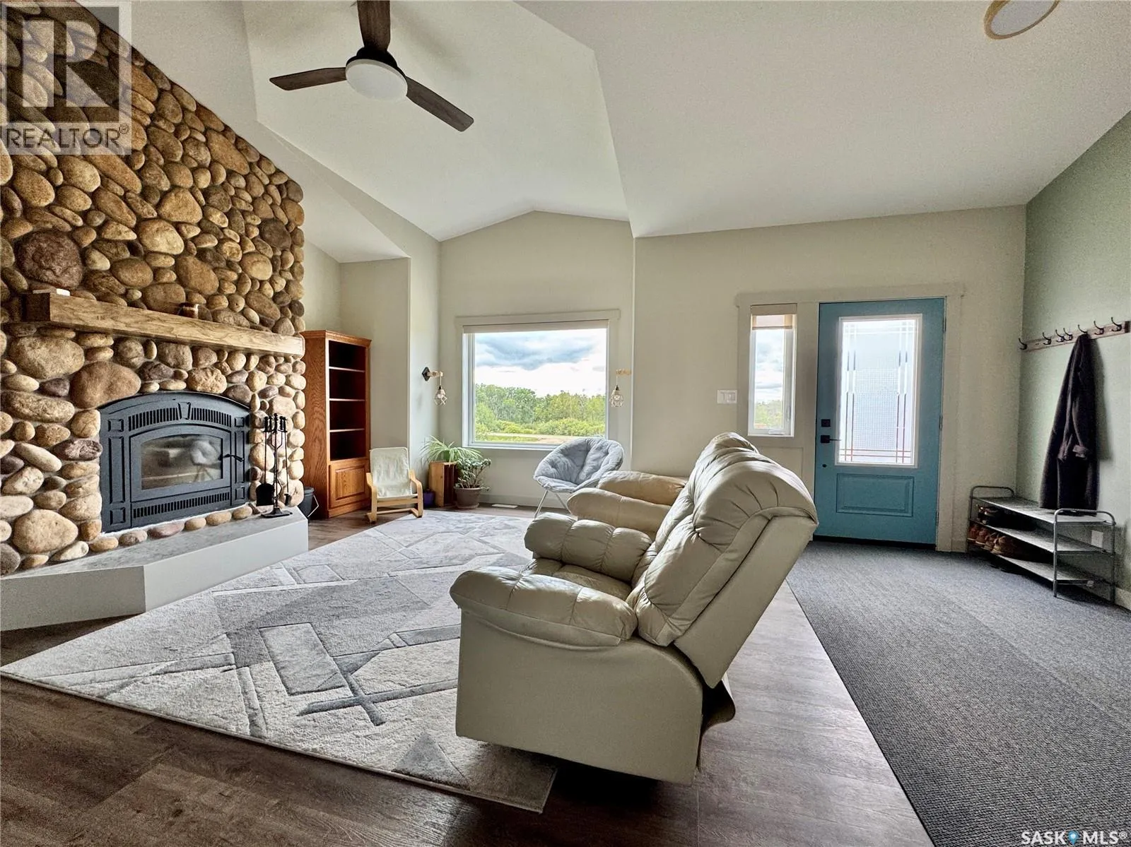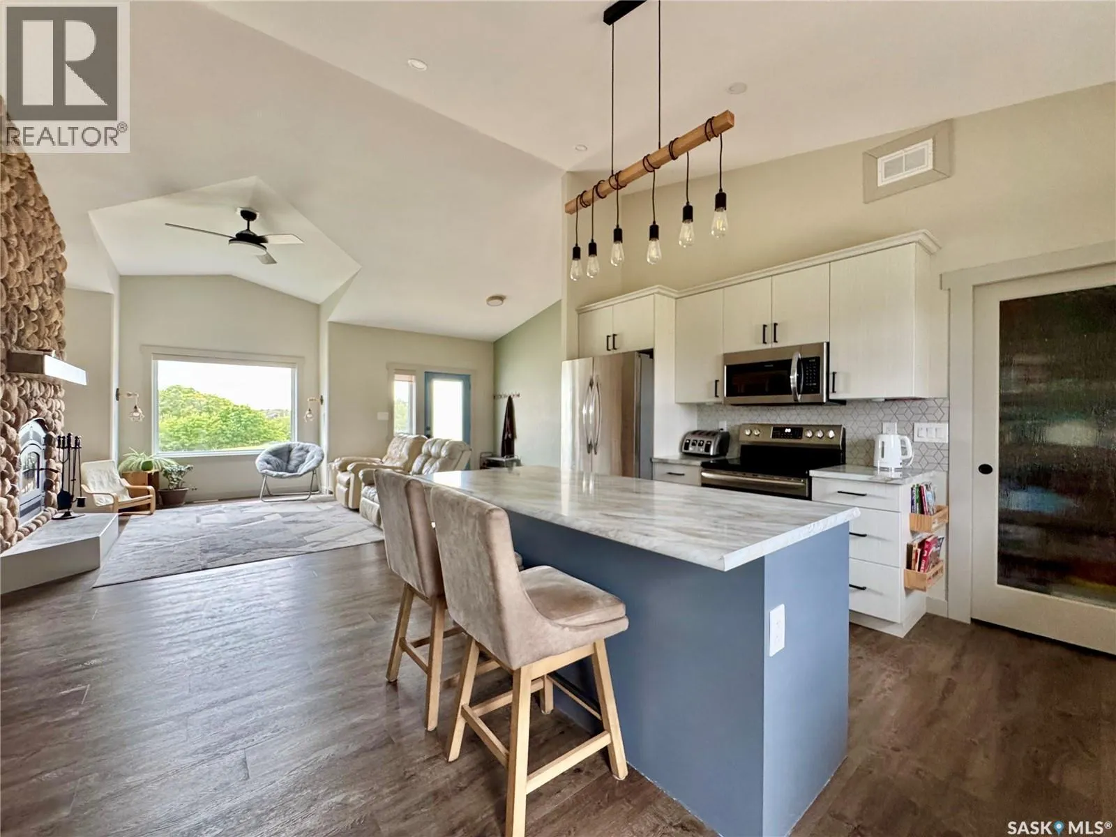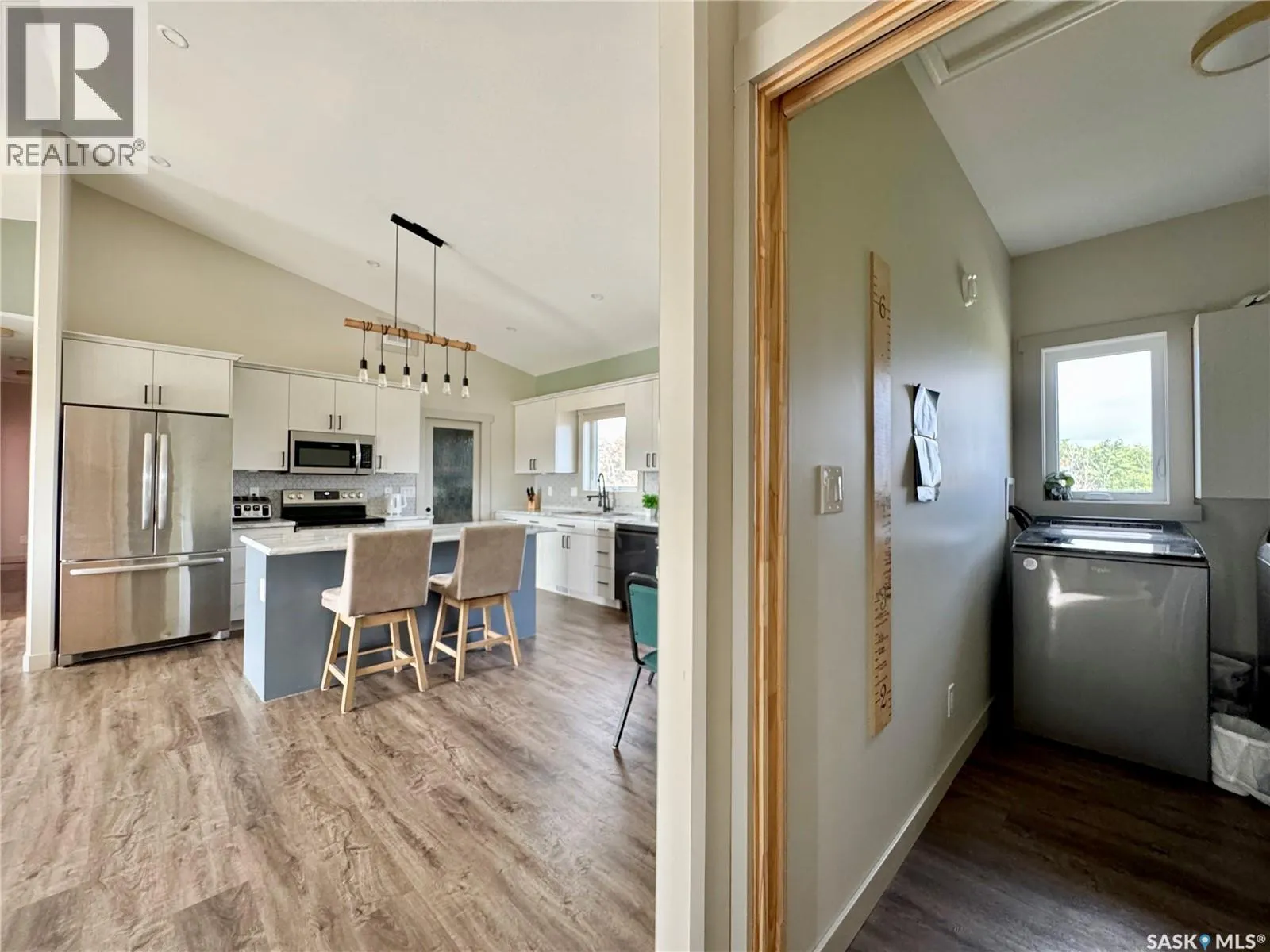 West of Stockholm down Excel Road North - look for signs - text agent for pin drop At Natures Edge Acres, nature and new construction come together in a way rarely seen in SE Saskatchewan. Tucked behind a mature shelterbelt where deer and songbirds wander, this 2022 custom build delivers more than 3,000 sqft. of exceptional living spaceâa chance to own a true countryside original without the wait of building. Designed from the ground up with family and entertaining in mind, the home offers 5 bedrooms and 4 bathrooms, plus a surprise youâll be talking about long after the showing: a 6th bedroom with a built-in slide right at the heart of the house. Whether itâs kids at play or simply hauling heavy bags downstairs, the slide turns everyday tasks into something fun. The main living area wows from the moment you walk in. Vaulted ceilings and wall-to-wall windows capture prairie light from sunrise to those legendary Saskatchewan sunsets. A dramatic floor-to-vault river rock fireplace anchors the spaceâbeautiful to look at and practical too, with settings that keep the home warm even if the power goes out. The chefâs kitchen is ready for gatherings big or small, complete with a generous prep island, deep dovetailed pot drawers, and soft-close cabinetry. The sink frames tranquil eastern views while the west-facing picture window serves up nightly sunset shows. Built with modern efficiency in mind, the home features geothermal heating and cooling, weeping tile, excellent insulation, and spa-style ensuite showers. The electrical wiring has been thoughtfully plannedââoverbuilt,â as the owners like to sayâso youâre ready for anything from a future basement bar with toe-kick lighting to advanced tech upgrades. Outside, the unfinished shop is already set up for big projects with a welder plug, 30-amp camper hookup, and doors tall enough for a lifted truck. Whether youâre after a family retreat, a place to host unforgettable gatherings, or simply room to breathe, this acreage offers a rare combination of new-home comfort and Saskatchewanâs natural beauty. (id:27476)