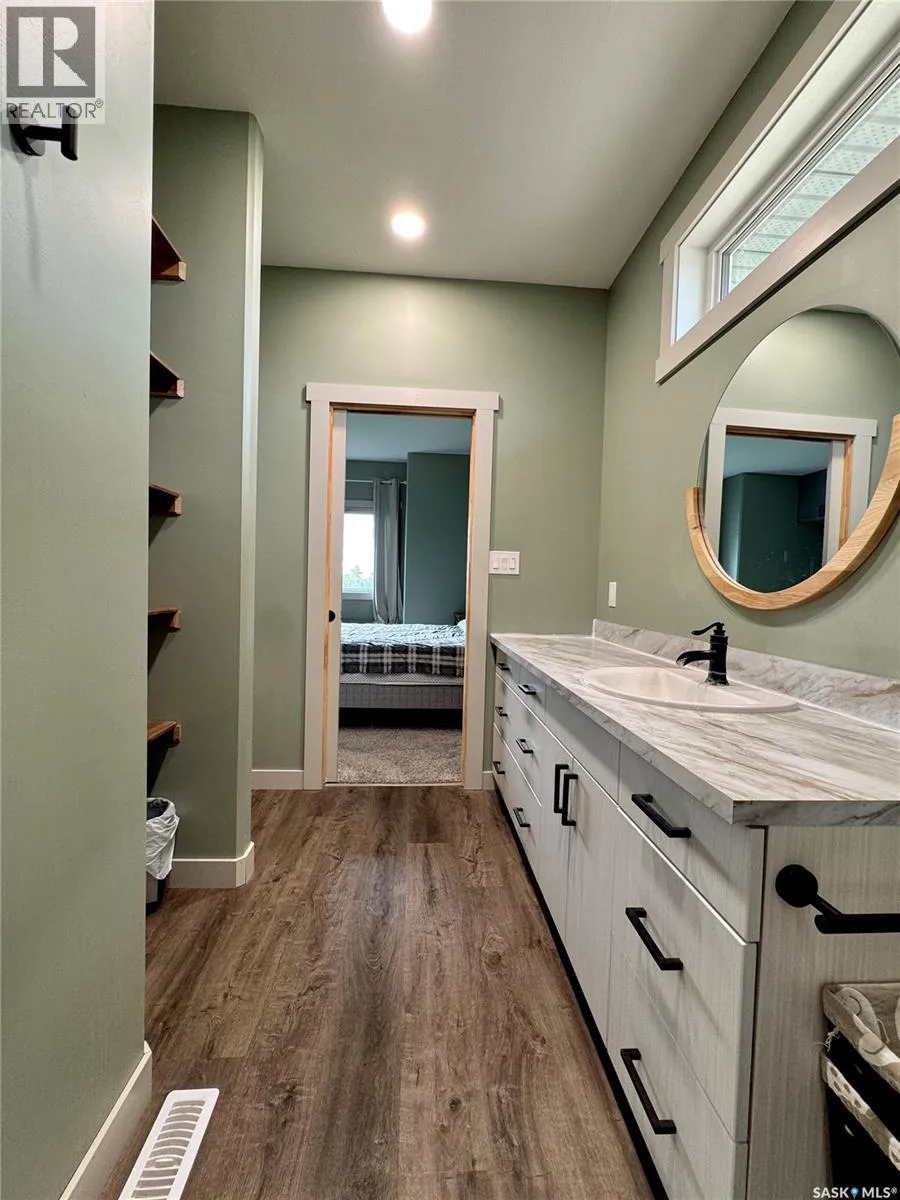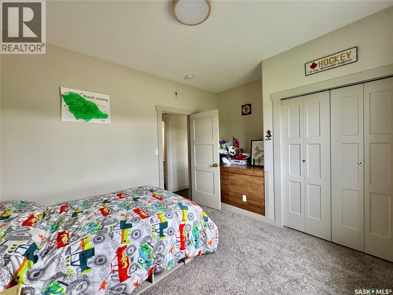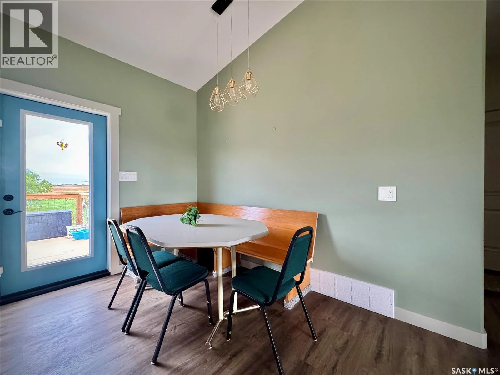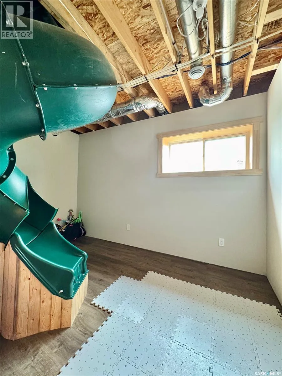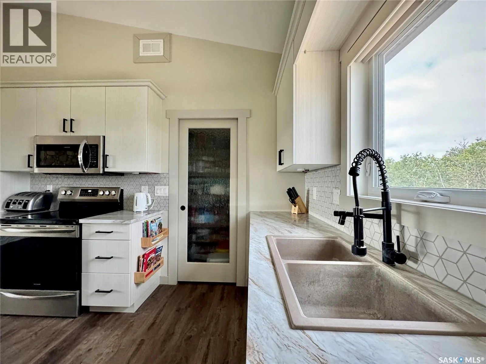 West of Stockholm down Excel Road North - look for signs - text agent for pin drop At Natures Edge Acres, nature and new construction come together in a way rarely seen in SE Saskatchewan. Tucked behind a mature shelterbelt where deer and songbirds wander, this 2022 custom build delivers more than 3,000 sqft. of exceptional living spaceâa chance to own a true countryside original without the wait of building. Designed from the ground up with family and entertaining in mind, the home offers 5 bedrooms and 4 bathrooms, plus a surprise youâll be talking about long after the showing: a 6th bedroom with a built-in slide right at the heart of the house. Whether itâs kids at play or simply hauling heavy bags downstairs, the slide turns everyday tasks into something fun. The main living area wows from the moment you walk in. Vaulted ceilings and wall-to-wall windows capture prairie light from sunrise to those legendary Saskatchewan sunsets. A dramatic floor-to-vault river rock fireplace anchors the spaceâbeautiful to look at and practical too, with settings that keep the home warm even if the power goes out. The chefâs kitchen is ready for gatherings big or small, complete with a generous prep island, deep dovetailed pot drawers, and soft-close cabinetry. The sink frames tranquil eastern views while the west-facing picture window serves up nightly sunset shows. Built with modern efficiency in mind, the home features geothermal heating and cooling, weeping tile, excellent insulation, and spa-style ensuite showers. The electrical wiring has been thoughtfully plannedââoverbuilt,â as the owners like to sayâso youâre ready for anything from a future basement bar with toe-kick lighting to advanced tech upgrades. Outside, the unfinished shop is already set up for big projects with a welder plug, 30-amp camper hookup, and doors tall enough for a lifted truck. Whether youâre after a family retreat, a place to host unforgettable gatherings, or simply room to breathe, this acreage offers a rare combination of new-home comfort and Saskatchewanâs natural beauty. (id:27476)