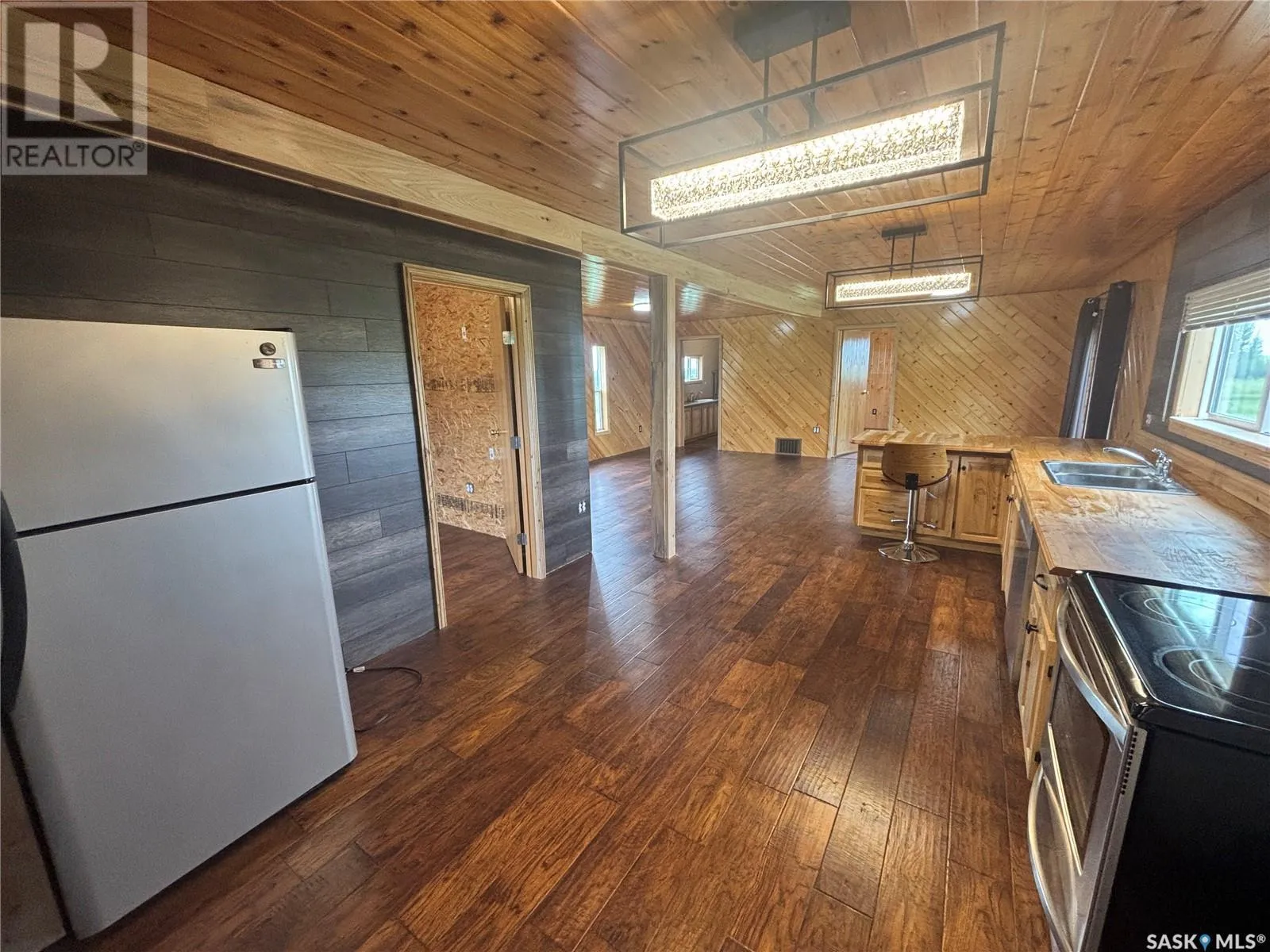 Welcome to Ardath! Escape to the peace and quiet, just 1 hour from Saskatoon and 30 minutes to Outlook with pavement almost all the way there! This 1.25-acre property offers the perfect blend of country living, rural charm and modern upgrades. Sitting on dead end corner lot, originally built in 1970, was moved onto property and fully renovated in 2020 with beautiful pine and cedar finishes, featuring 1192 sq ft, 2 bedrooms, and a full bath with natural gas heat with central air for year-round comfort. Includes all appliances, sitting on a 4 ft crawl space for extra storage. 30Ã40 heated "dream" shop, heated via natural gas forced air, 12.5 ft ceilings, separate 200 amp service, ideal for projects or storage, plumbed for in-floor heating with full bath inside the shop. 100 ft deep well (1 gallon/min recovery, non-potable) Enjoy quiet living on the edge of town with plenty of space for hobbies, vehicles, or a home-based business. (id:27476)