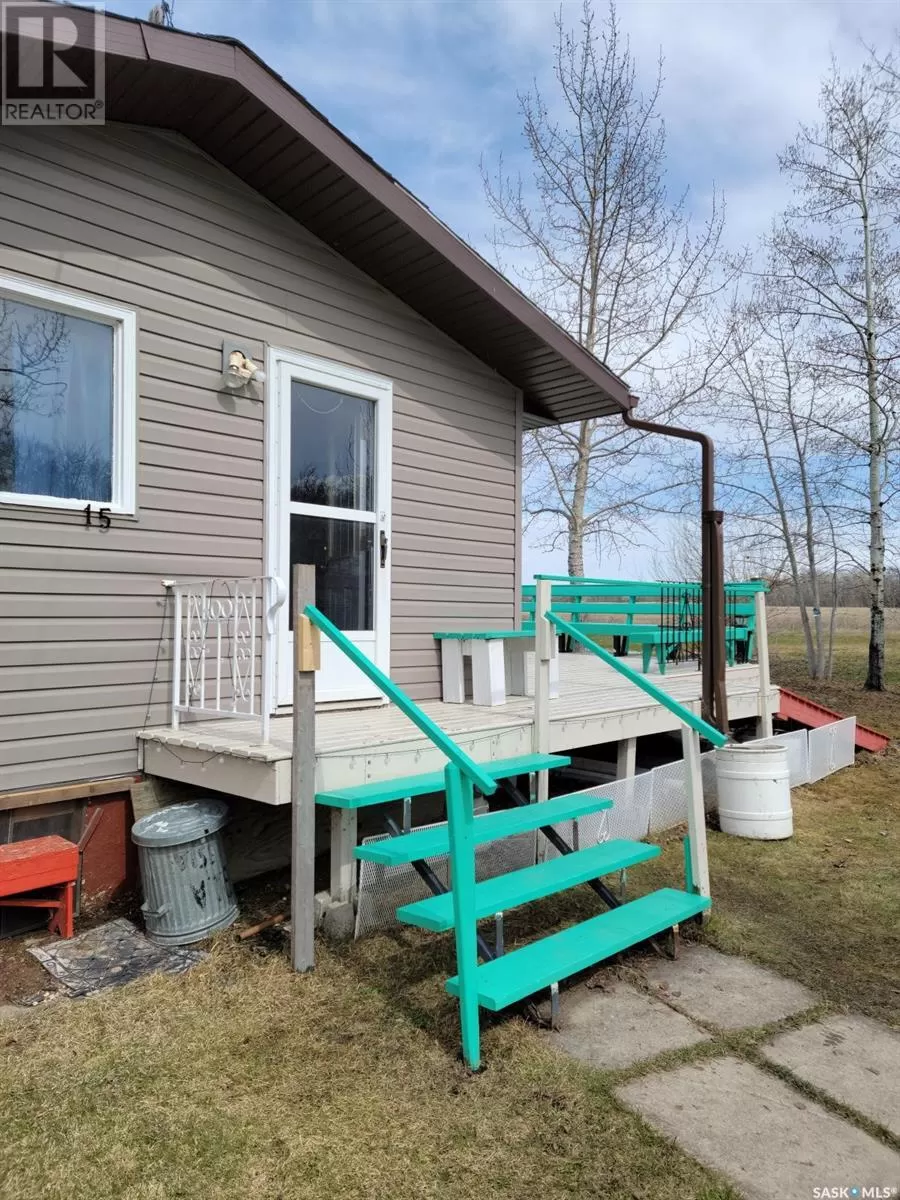 15 Kim Dawn Cr Fishing Lake is a nice cabin on the popular North Shore Fishing Lake. The nice pie shaped lot offers plenty of space and privacy in the larger back lot which backs a field. The cabin has vinyl siding, a nice deck, shed, and a covered BBQ are in the back. The cabin has a nice large porch when you walk in, with laundry in it, leading to a kitchen with utility and 3-piece bathroom off it. thru the kitchen it leads to a large great room area with room for dining and living room areas or two living rooms. Off of that room is two bedrooms. The smaller bedroom on the listing measurements does have a larger entrance area to it that is not included in the measurements table. North Shore Fishing Lake offers excellent fishing, water sports, hunting, snowmobiling, etc.. The community also features a newly renovated recreation area with new beach volleyball, softball diamond, picnic area and pickle ball court. Fishing Lake is only a couple hours from Regina and Saskatoon near Wadena, Wynyard, and Foam Lake with North shore only 15 minutes from all the services Wadena has to offer. (id:27476)