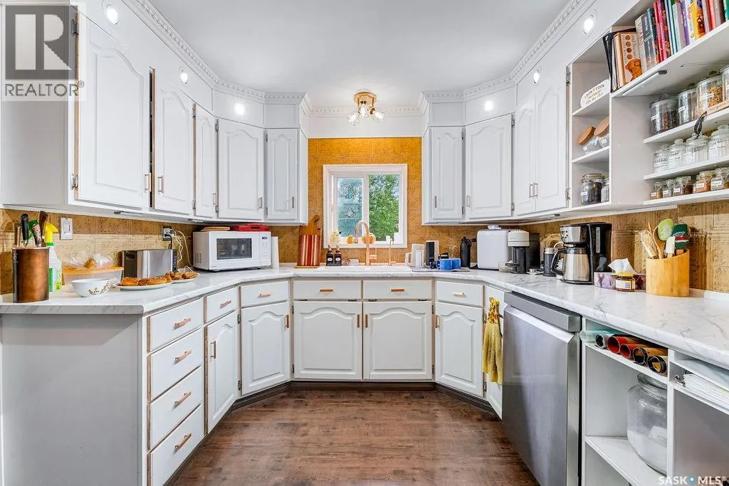 Take highway 41 from Melfort towards Saskatoon and turn left into the hamlet of Ethelton; take your second right on the gravel and you will arrive at the property. Welcome to paradise! This property combines the spaciousness & privacy of acreage life with the comfort of community living- no need to chauffeur your kids to school, as the bus will pick them up at the door & take them to Melfort or Kinistino. Your errands are also minimized as you can get your mail & drop off your garbage right in town! This property has 18 years of upgrades & renovations, but the character of the original home has been preserved. A grand entryway addition completed in 2018 welcomes you into this home where you will find a cozy fireplace nook, tons of storage, & a bright open laundry space. Just past the main floor bedroom you will see the sparkling bathroom completed in 2020 with a clawfoot tub & crown molding. The kitchen is packed with updated appliances, storage & counterspace, plus the best lighting! The dining room opens onto a covered patio/deck area for in/out entertaining; or enjoy the natural light year-round with updated windows throughout the home. Upstairs are three spacious bedrooms with lots of storage space & nooks to explore. If thatâs not enough, the backyard & adjoining lots are jaw-dropping. You have to see it to understand the scope of the time, money, & care that has been invested in this property: both covered/uncovered deck areas, a cement-pad firepit, water features, mulch & juniper landscaping, perennials & fruit trees, a giant swing, hand-chipped limestone details, plenty of green space, raised garden beds, equipment storage/sheds, two greenhouses past the fully fenced yard, water linesâ¦what else?! The house itself has tin roofing & brand new siding. Cedar-shake details complete the home, & there are lots of other upgrades; a new septic mound, a cement pad ready for a hot tub, a carport , a new tree line; even a grow room in the basement. And don't worry about pesky snow removal; the RM clears & maintains the roads. This turn-key property is just -20 minutes of highway driving from Melfort, St Brieux, or Kinistino! (id:27476)