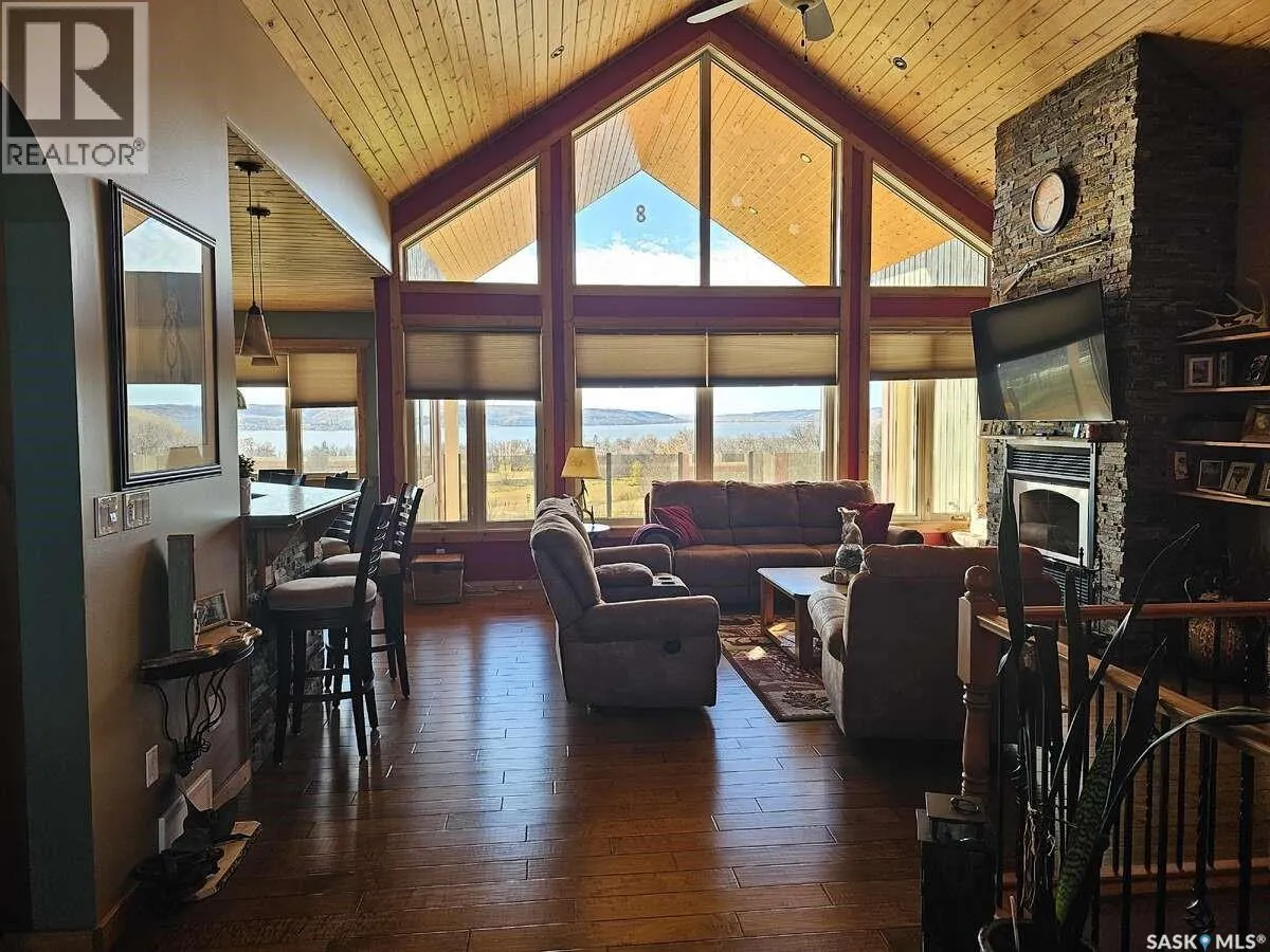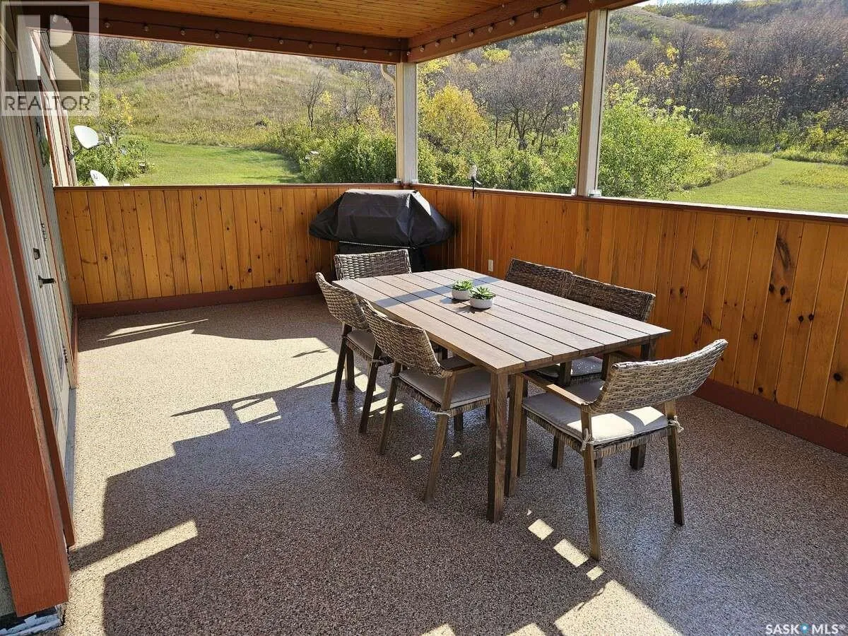 For more information, please click the "More Information" button. Stunning Acreage with Spectacular Views in the Qu'Appelle Valley! Incredible opportunity to own a beautiful acreage nestled in the Qu'Appelle Valley, just 3 minutes from Fort Qu'Appelle on the north hillside of Echo Lake. This spacious home sits on 1.69 acres with breathtaking panoramic views and sunsets. Offering over 1900 sq. ft. upstairs, this property features 5 bedrooms and 3 bathrooms, including a 4-piece ensuite. The layout includes 2 bedrooms upstairs, 3 large bedrooms downstairs, an upstairs laundry, and a bright office space. Enjoy a huge kitchen with eating bar for 6, a large dining area, and engineered hardwood floors. Cozy up to the wood-burning fireplace upstairs or the natural gas fireplace downstairs. Relax outdoors on the completely covered deck that wraps around the entire front of the house, perfect for enjoying the stunning views in any weather. The lower level features a large mechanical room with storage shelves, a boiler system for in-floor heat in both the downstairs and garage, a water softener, and a central vacuum system. Additional highlights include a 2,600 gallon septic tank, a private well with excellent water quality and quantity, solid pine doors and trim throughout, an attached 2-car garage, ample parking, beautifully landscaped yard, and an outbuilding for extra storage. This exceptional property offers space, comfort, and stunning scenery - all minutes from town amenities and 45 minutes from Regina. Don't miss your chance to call this incredible acreage home! (id:27476)