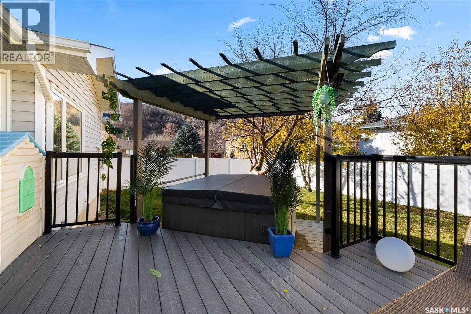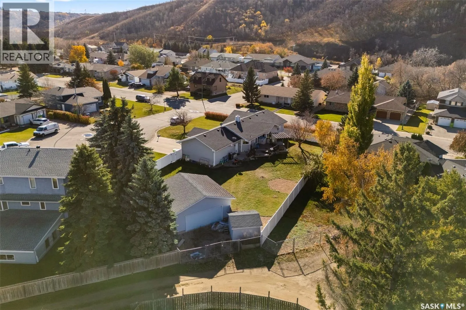 Rare quiet bay location with beautiful valley hill views! Nestled on a huge fully fenced lot, this extensively updated bungalow offers over 1,700 sq. ft. on the main level plus a fully developed basement, delivering exceptional space, comfort, and modern style in one of the valleyâs most desirable settings. The bright open-concept main floor features a stunning renovated kitchen with custom white cabinetry, dark quartz countertops, a large island, and new stainless-steel appliances. The inviting living room is centered around a cozy gas fireplace and flows seamlessly to a large composite deck with hot tub, the perfect place to relax or entertain while taking in the peaceful valley surroundings. A spacious family room provides even more room to gather and unwind. The main floor offers a large primary bedroom with walk-in closet, two additional bedrooms, and both a four-piece and three-piece bathroom. Downstairs, the fully finished basement expands your living space with two more bedrooms, a large family room, office area, bathroom, laundry, and abundant storage, making it ideal for families, guests, or work-from-home flexibility. A roomy mudroom connects to the heated double attached garage with oversized bays (13x28 and 13x24), while an additional double detached garage provides exceptional space for vehicles, toys, a workshop, or extra storage. Outside, enjoy the beautifully landscaped yard featuring PVC fencing, underground sprinklers, and plenty of room to play or entertain. Recent updates include windows, doors, quartz countertops, flooring, paint, lighting, appliances, water heater, water softener, fencing, and composite decking, making this home truly move-in ready. Homes with this much space, parking, and a premium quiet bay location with valley views rarely come available. Book your private showing today! (id:27476)