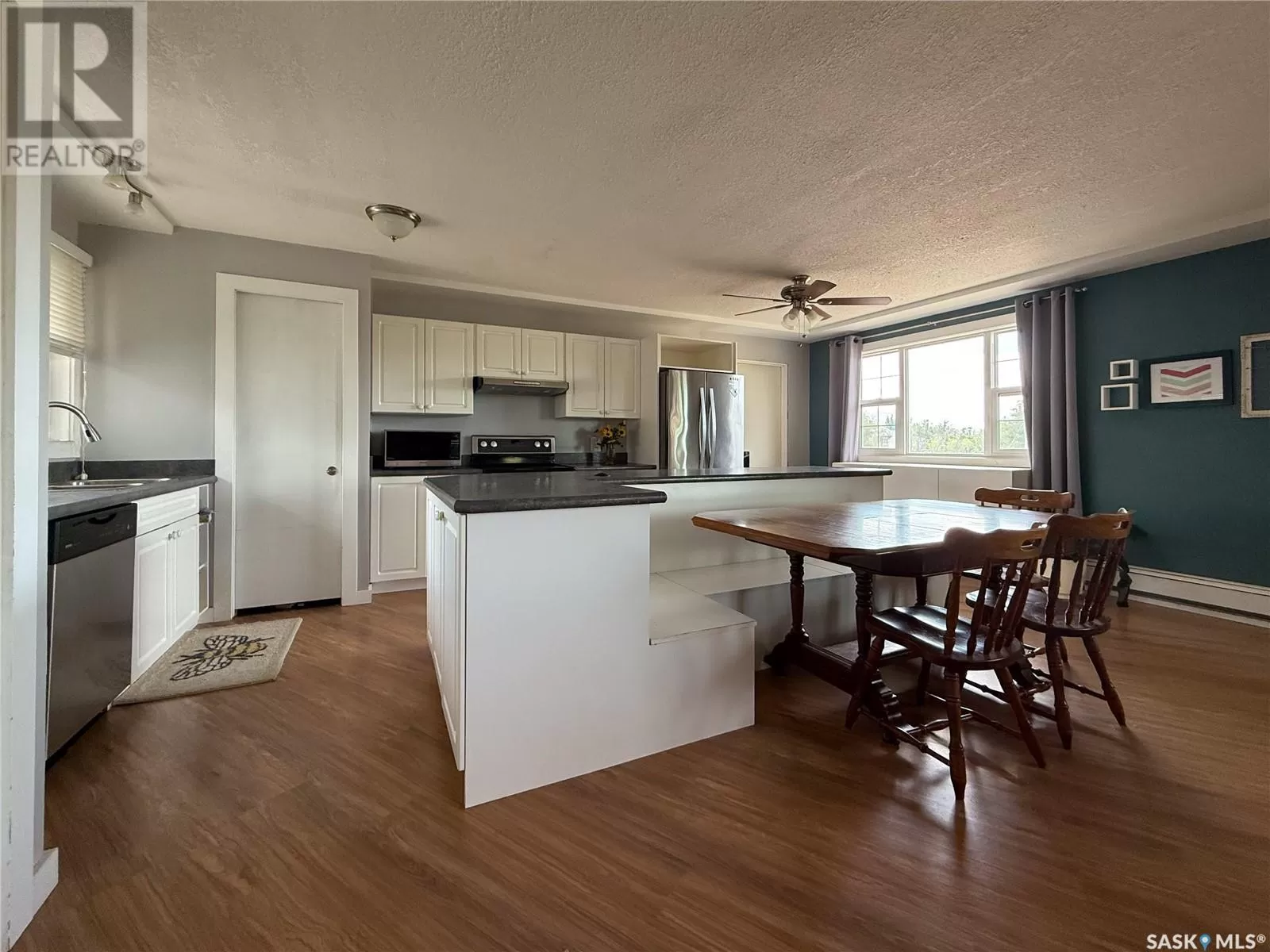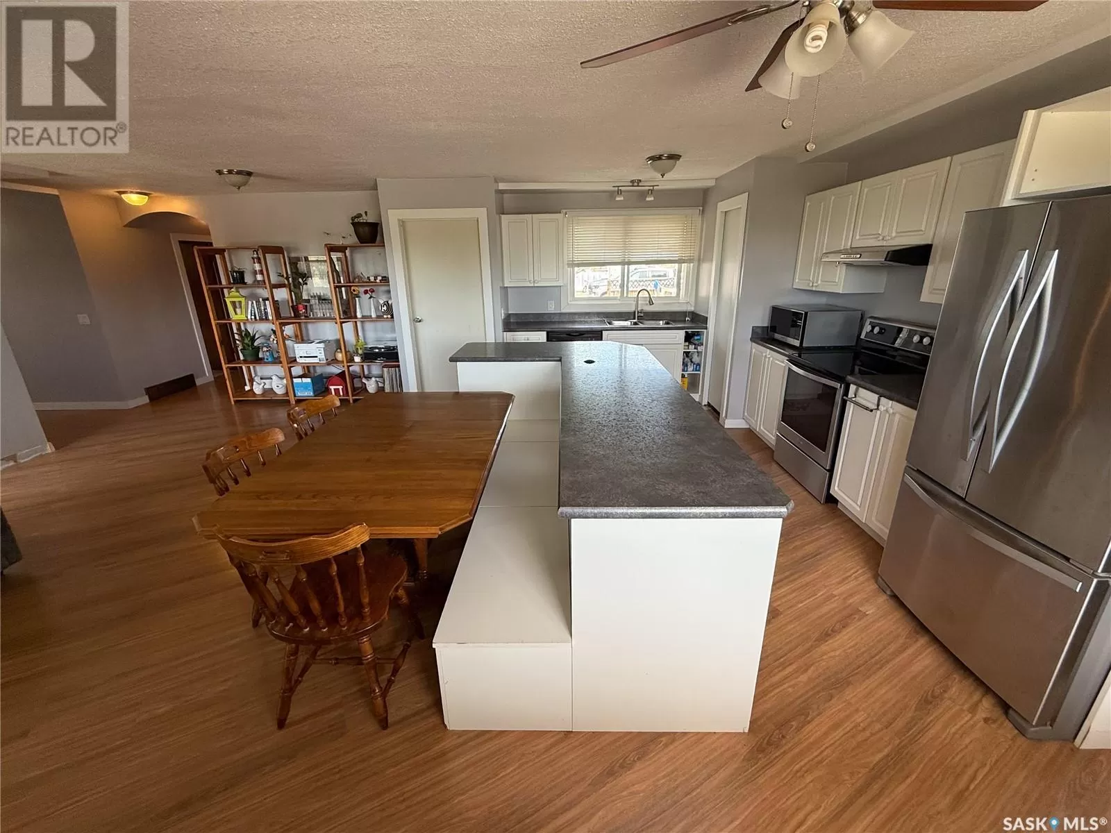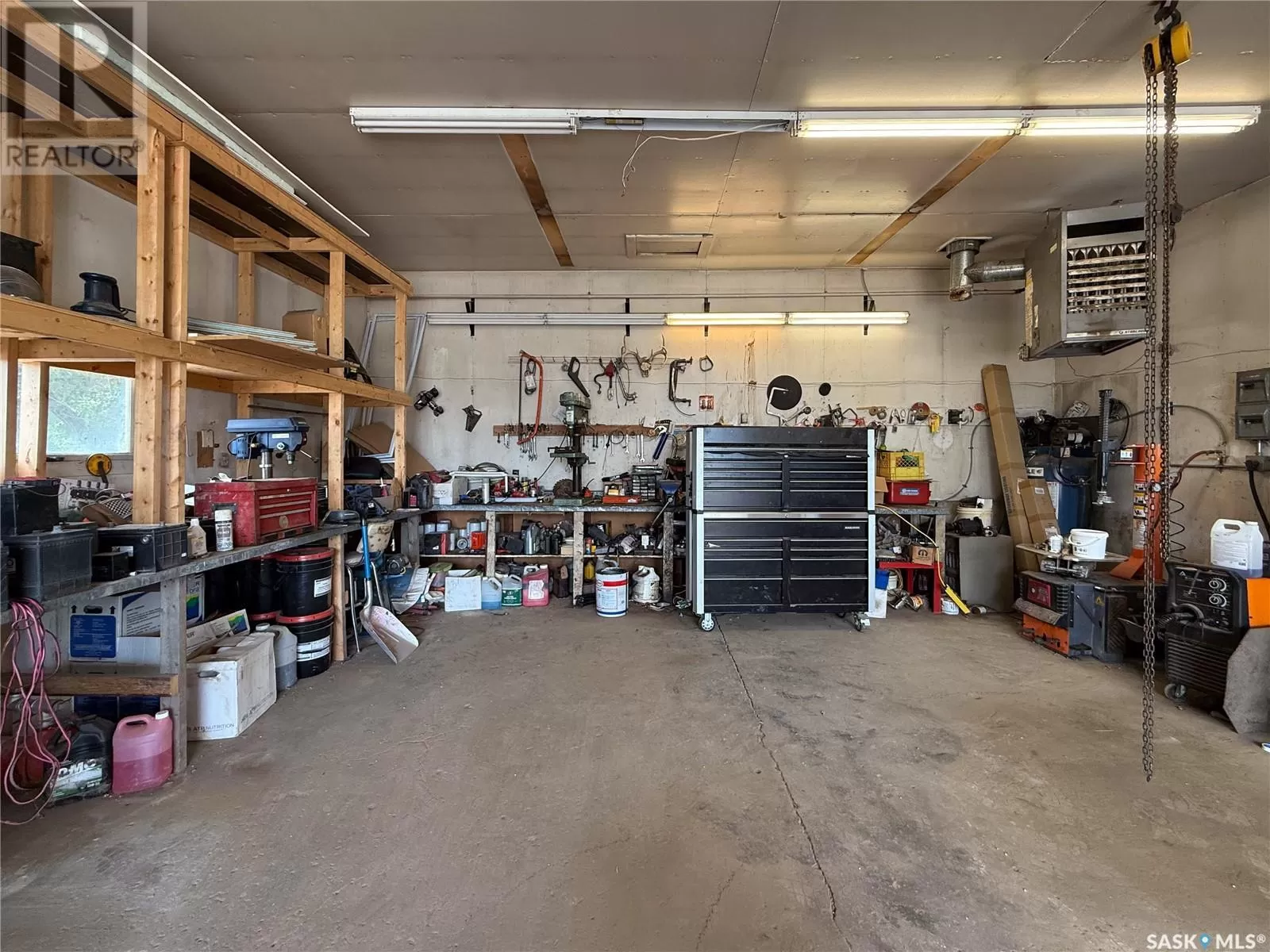 Welcome to 223 2nd Avenue E in Frontier, SK â a spacious 1,671 sq. ft. bungalow packed with updates, space, and versatility, all sitting on a 10,812 sq. ft. lot with a fenced yard and a dream garage setup. With no current mechanic business in town, this might be the perfect spot to open up shop!! Step inside through the large mudroom entry, a space that once served as an attached garage but was thoughtfully converted in 2016 â offering tons of room for storage, boots, and busy family life. The heart of the home is the stunning open-concept kitchen, dining, and living area, beautifully renovated in 2014 with modern finishes, loads of natural light, and a smart layout. The kitchen features a large island with a built-in dining nook, perfect for family meals and gatherings. Off the main living space, youâll find the front entry and a hallway leading to four generously sized main floor bedrooms, including a spacious primary bedroom. The main floor is complete with a 5-piece bathroom, giving plenty of space for a growing family or guests. The basement is partially developed, offering a laundry area, a 3-piece bathroom, and flexible space for a den, office/craft room, workout area, and storage â ready for you to finish to suit your needs. Outside, enjoy the fenced backyard with a patio area â great for relaxing or entertaining â and handy garden boxes tucked between the home and the shop. The 24x36 heated and insulated detached garage is a standout feature, once used as a mechanicâs shop, making it perfect for hobbyists, projects, or extra storage. Located directly across from Frontier School, this home offers both space and convenience in a friendly small-town community. Whether you're looking for a family home with room to grow or a property with shop space for your projects, 223 2nd Avenue E has the versatility and charm you're after. (id:27476)