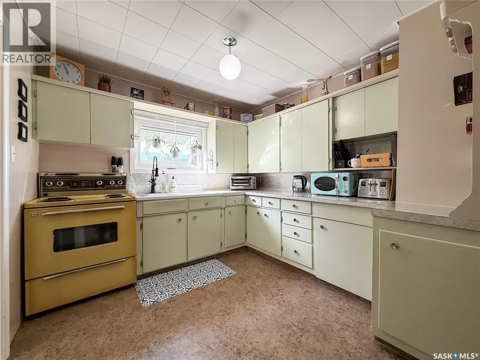 Welcome to 114 1st Street W in Frontier â a cozy, well-maintained 2-bedroom bungalow thatâs brimming with charm and practicality. Set on a 50âx140â lot, this 785 sq. ft. home has seen thoughtful updates in recent years and is the perfect fit for a first-time buyer, someone looking to downsize, or anyone seeking small-town living with great outdoor space. Step onto the lovely covered front patio â a perfect place to enjoy your morning coffee or unwind with a glass of wine in the evening. From here, youâre welcomed into a bright and inviting living room with easy flow to the rest of the main floor. To the left, youâll find two comfortable bedrooms with good natural light and closet space, and just past the living room is the dining area that leads seamlessly into the kitchen. The layout is functional, cozy, and well-suited to everyday living. Off the kitchen is a modern rear mudroom â stylishly renovated and housing the main floor laundry, access to the backyard, and a beautifully updated 4-piece bathroom. The mudroom also leads to the basement cellar where youâll find the energy-efficient furnace and water heater, both upgraded in 2019. Outside, the spacious backyard offers plenty of room to enjoy with lane access, a handy clothesline, and a 24'x18' single detached garage for parking or additional storage. Whether you're looking to garden, build, or simply relax outdoors, this yard offers the space and flexibility to do it all. Frontier is a welcoming prairie community with a Kâ12 school, a hockey rink, grocery store, and other essential amenities that support a relaxed and connected rural lifestyle. Located along the historic Red Coat Trail and surrounded by stunning southwest Saskatchewan landscapes, itâs a place where you can slow down, stretch out, and feel at home. (id:27476)