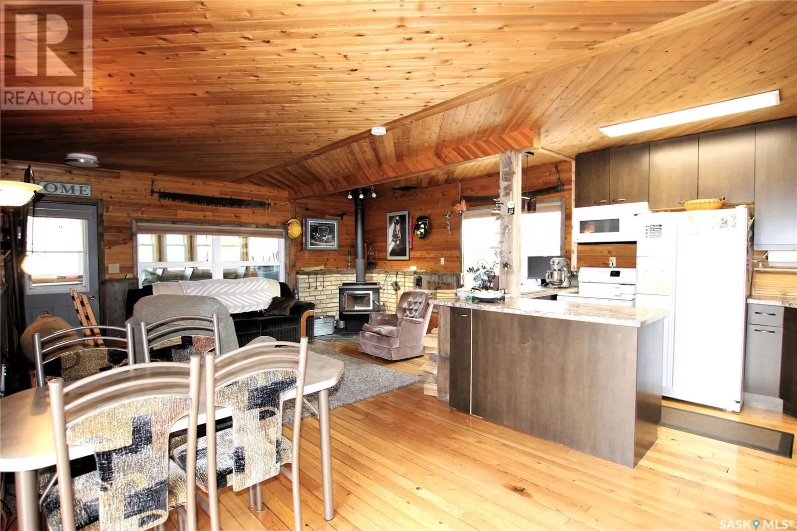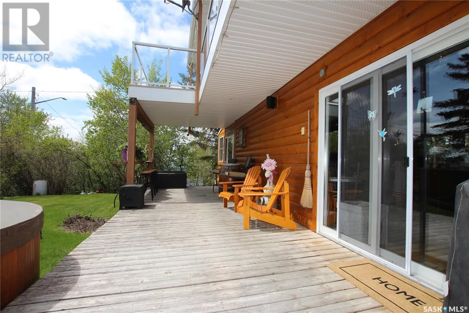 Lot 10 and 11 Life's a BEACH and then you move to the lake! Well, why not Burgis Beach at 910 Sunset Cres. located on two lots that have been conjoined as one. This four season home is waiting for you! The home is ideally located just a few steps away from the beach. It has an amazing lake view from the upper deck where you can enjoy your morning coffee. The home has 3 bedrooms on the 2nd floor. The primary bedroom has a large walk thru closet and another walk in closet. There are large windows and deck doors leading out to a wrap-a-round deck with south and west facing stunning views of the lake and the sunsets. There are 2 other well sized bedrooms with great natural light and built in window treatments. The upper bathroom is a two piece with a toilet and sink. On the main floor you will find an open concept kitchen, dining and living room as well as an enclosed three season room with brand new windows in 2024. You can enjoy your company while you entertain and prepare dinner!. There is a full bathroom on the main floor. There are hardwood floors through the main area, heated tile in the bathroom, back door entrance and mud room area. The laundry room is large and includes a murphy bed for extra guests. The home has CANORA water, wood burning stove for those cozy winter nights and electric heat. With this being a 4 season home there are many things to do such as the large area with firepit, summer boating, swimming, and hiking, winter cross country skiing, snowmobiling and ice fishing. Wondering how the kids get to school, not to worry, the school bus stops in the hamlet! A few other things is there is central vac, hot tub, plenty of parking, local community hall and summer store, a park for the kids, disc golf and two golf courses nearby at Good Spirit Acres and Canora (both 15 min), shopping and grocery in Canora and Yorkton (30 min). This home also includes a boat slip and access to one side of the dock. CLICK ON MOVIE REEL FOR YOU TUBE VIDEO (id:27476)