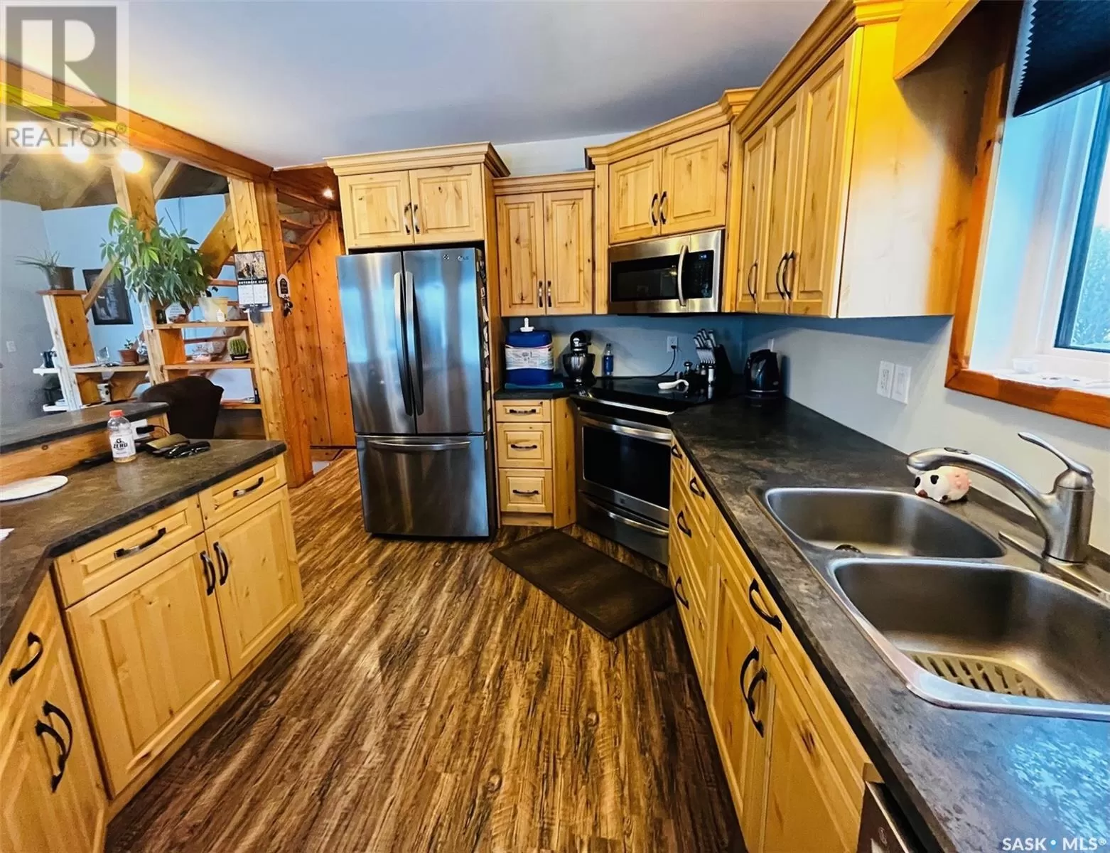 SW-05-30-06 W2 (Parcel #142587872) Experience peaceful country living at its finest on this stunning 160-acre property located just minutes west of Good Spirit Provincial Park and approx. 60km NW of Yorkton SK. This acreage has a good mix of cultivated lands for production, fenced land for livestock, and is a perfect haven to enjoy nature and wildlife. The 1623/SF home fits nicely into its surroundings with large windows that fill the home with natural light as well as huge deck with great views of the outdoors. The home was built in 2010, creating a multi-level home with plenty of loft space and updates. The main level features a bright and open kitchen dining area with island and stainless-steel appliances, an updated 4-piece bathroom and bedroom. Added features to the home include in-floor and radiant heating, spray foam insulation, metal roof and updated 3-pane windows. The second level has a large living room area with 2 large bedrooms and bonus loft area that can be used for an additional bedroom or for other use. Basement level has a 4th bedroom, with large recreational room, 3-piece bathroom, laundry/utility and cold room area. The house also includes a 30x26 double attached garage with in-floor heating and direct entry to the home. The home has wood shop with exterior wood burning boiler system to heat through in-floor and radiant heating system. This property also boasts an additional 25x18ft detached garage and workshop area, a large 40x60ft metal pole shop to store all your toys and machinery, as well as a 26x40ft barn with overhead door access as well as an overhead door leading into the livestock holding area. These buildings are ideal to house cattle, horses, or hobby farm activities. Owner also indicated the area has had good aggregate content, but not all areas of this property have been mined. Contact list agent for more details and to book your private viewing. (id:27476)