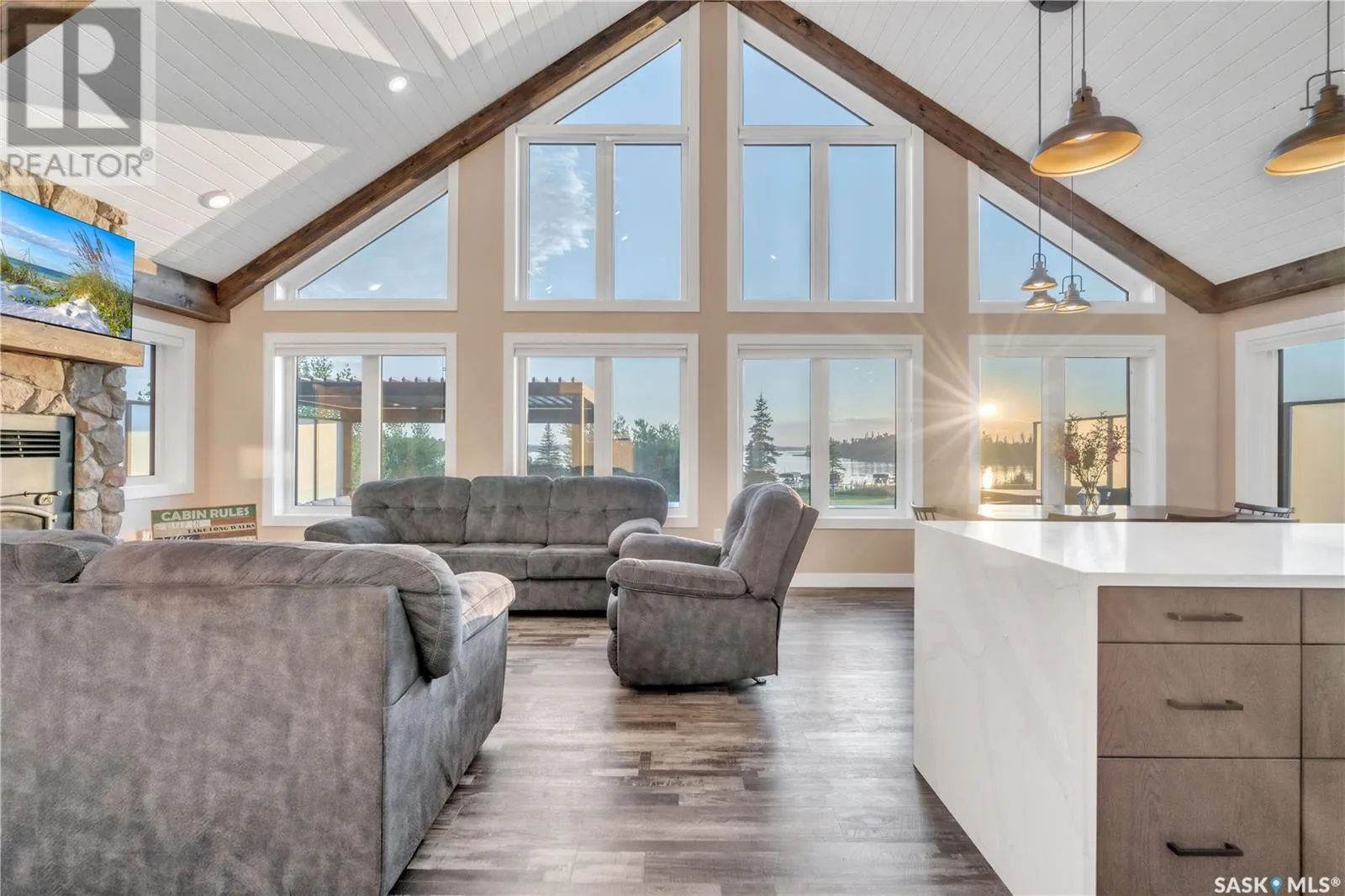 Turn key, fully furnished and immediate possession available. You could be living the lake this month! This stunning 2022-built home offers three bedrooms and two bathrooms, all conveniently located on one level. Inside, you'll find a modern, inviting space featuring a quartz waterfall island, butcher block countertops, and seamless white cabinetry. Modern vinyl plank flooring extends throughout the home, creating a cohesive and welcoming feel. For added comfort and protection, the windows are tinted with 100% UV protection and fitted with Hunter Douglas blinds. Air conditioning is also a welcome bonus. The exterior of this home is truly designed for entertaining or simply enjoying the ultimate lake life. Over 1,250 sq. ft. of composite decking with elegant glass and privacy walls provides ample space to relax. Enjoy evenings around the natural gas fire table or host barbecues with the convenient natural gas BBQ hookup. Unwind in the Arctic Spa Hot Tub, or enhance your outdoor experience with the Suncoast Enclosures pergola, complete with a remote retractable screen, remote louvered roof, and LED lighting. The home is strategically built on pilings, offering tons of convenient storage space underneath. Water is supplied by the subdivision's reverse osmosis treatment facility, ensuring pure and clean water. Enjoy easy access to the boat launch and community playground and you're just a 5-minute drive from Northern Meadows 18-hole Golf Course. The nearby town of Goodsoil (10 minutes) provides a grocery store, hardware store, and restaurant. Located within Meadow Lake Provincial Park, Lac Des Iles Lake is perfect for fishing Northern Pike, Walleye, Yellow Perch, and Whitefish in its 30-40 foot average depths. Conveniently situated, this property is 2 hours north of Lloydminster, 45 minutes east of Cold Lake, or 3 hours and 45 minutes north east of Edmonton. (id:27476)