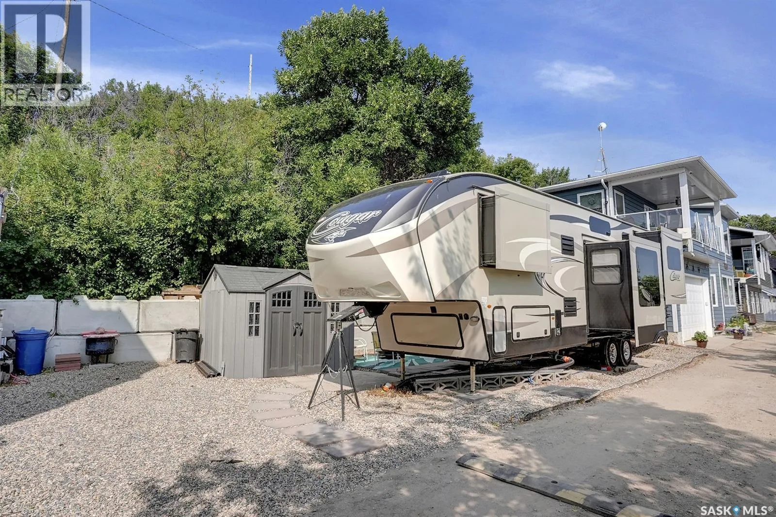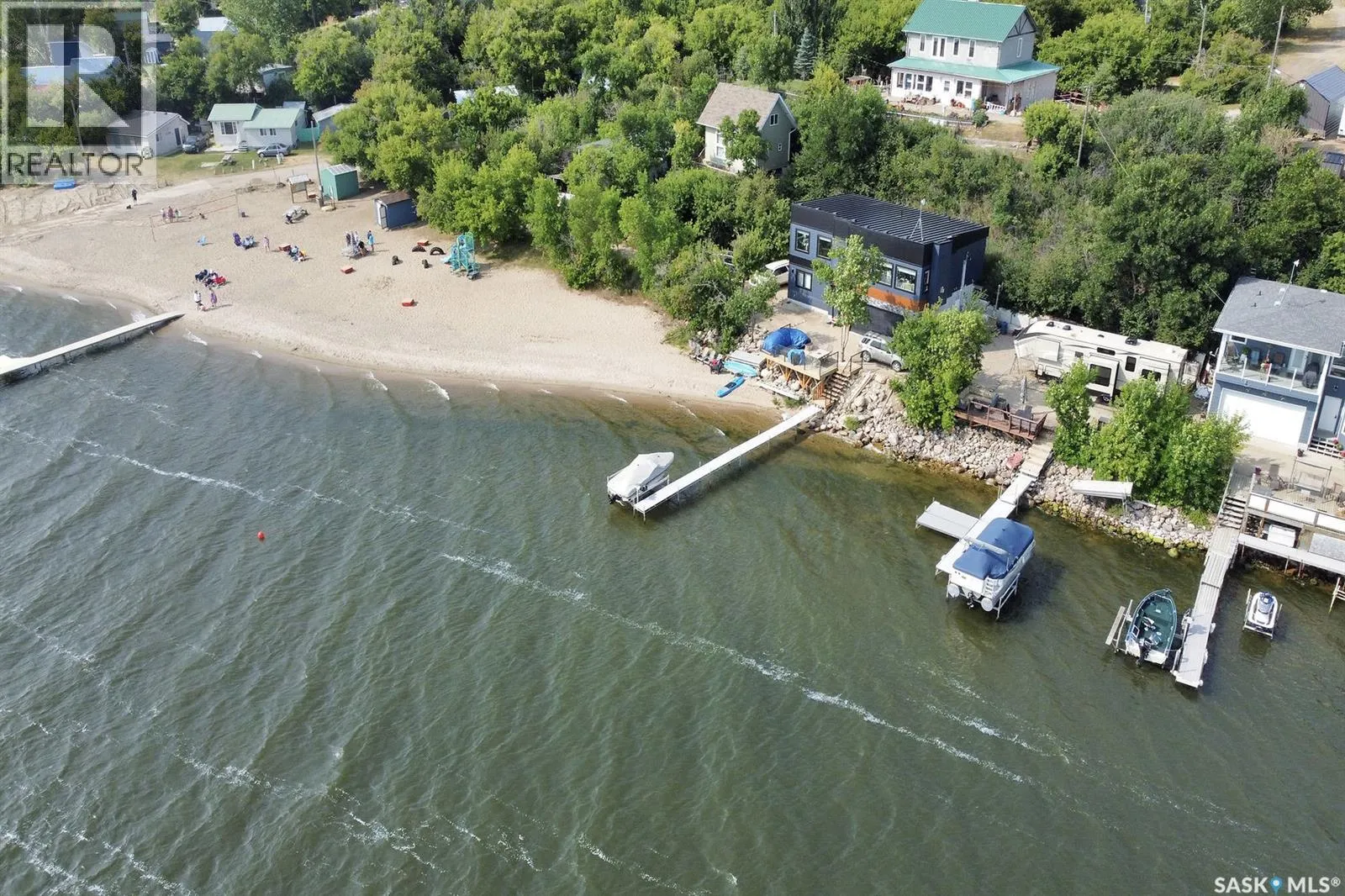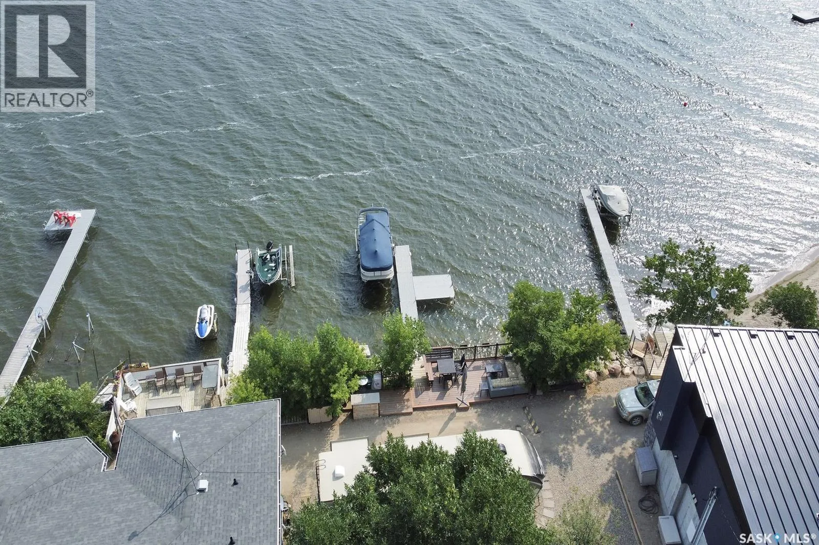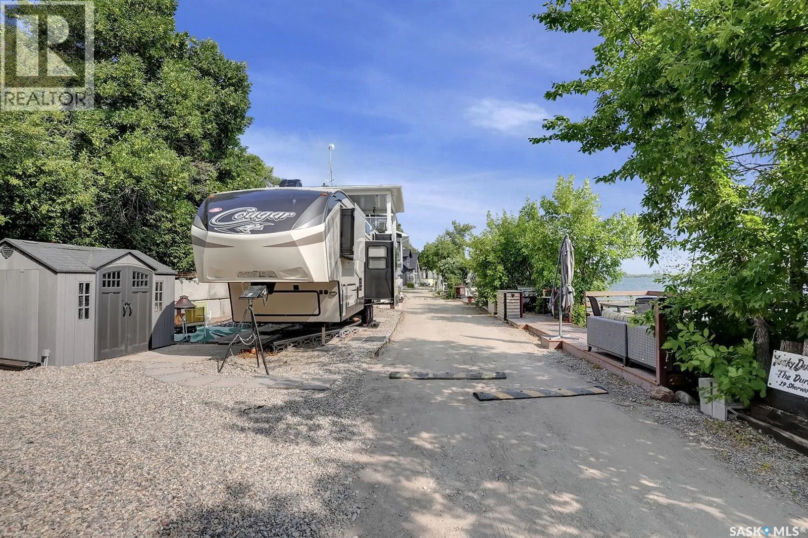 LOCATION! LOCATION! LOCATION! This Lakefront lot in Grandview Beach is only 2 lots from the main beach! Build your dream getaway only 50 minutes from Regina and 12 minutes away from the village of Dilke for the closest grocery and services. The lot is landscaped with rock and a seating area and a large lake front composite deck measuring 24x10 with a cooking bar and outside fridge. There are two 35 amp plugs and power to the shed. There is septic (1500 gallon 2017) and town water hookup (not drinkable). A gas line runs in the middle of the road and there is the ability to run a line to the property. Concrete Retaining wall was installed in 2022, each block weighs approx. 4500 lbs. The retaining wall was not required; it was installed for a clean and secure future cabin build. Neighbours live there full time. Land is on leased Crown land and the lease expires May 15, 2062. Dock is included. Trailer, boat and lift negotiable with the seller. (id:27476)