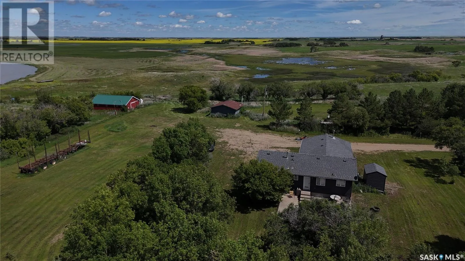 West of Unity, SK 12.9km (8 miles) south on grid 675, 9.66km (6 miles) and east 2.4m (1.5 miles) Ranch in the RM of Grass Lake #381 with three quarter sections all with high tensile game fencing, small lake and other water holes, corrals with closed in panels that handled Buffalo in the past, 5 steel box stalls, large animal squeeze, 1560 sq ft bungalow that was built in 1994 with an addition in 2015 and a total renovation that same year on the original build, out building include a small barn, two car garage and a storage shed. This land has a gravel pit and sells pit run. Excellent opportunity to own a small Ranch operation. These are rare to find. Easy to show, schedule a viewing. (id:27476)