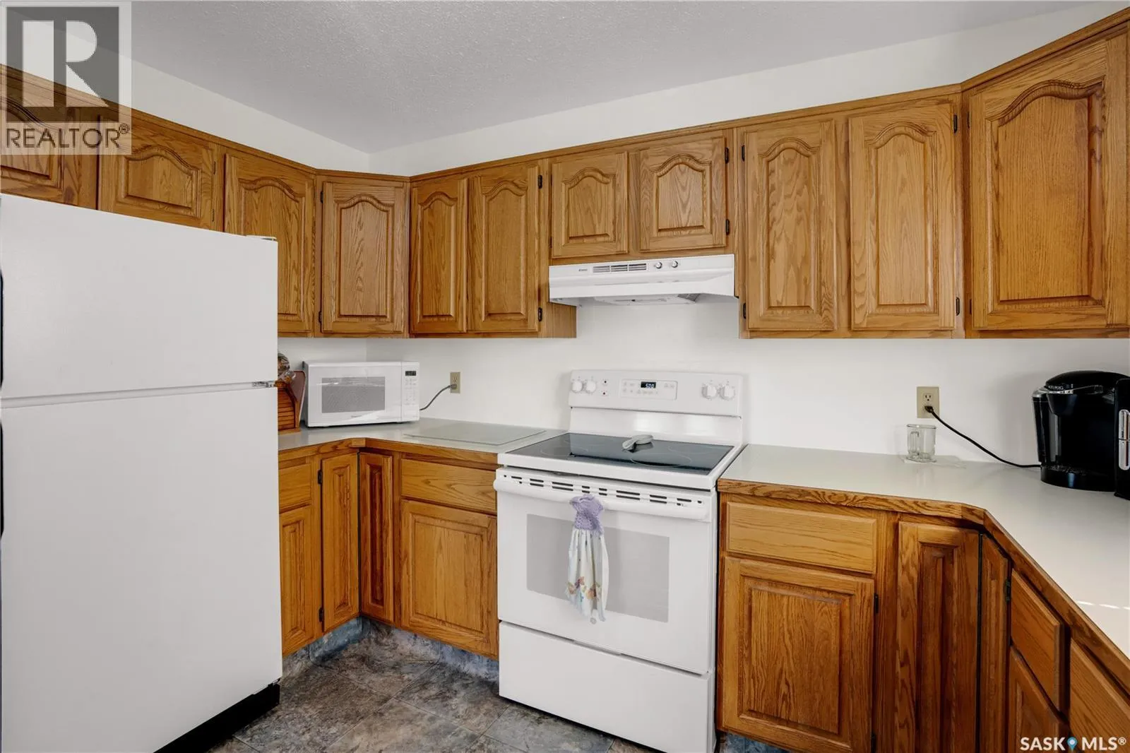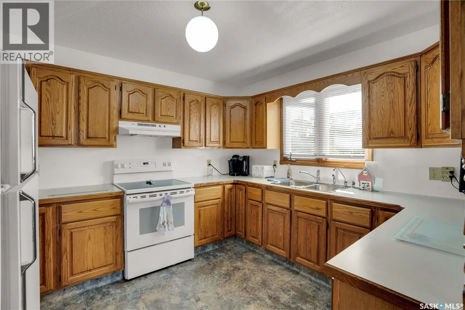 Are you looking for your next home? You won't want to miss this one - pride of ownership shines here! This immaculately maintained bi-level home was built in 1991 and boasts over 1,100 sq.ft. with a double attached garage. This 4 bed / 2 bath home provides excellent space for a family. Excellent curb appeal as you pull up. Heading inside you are greeted by a spacious foyer with access to your attached garage. Heading upstairs we are greeted by a good sized living room. Heading back we find a spacious formal dining room with access to your huge tiered deck - perfect for entertaining or your morning coffee. Off the dining room we find a large U-shaped kitchen boasting lots of cabinets and counter space - with an eat-up bar. This is sure to be the heart of this home. Down the hall we find 2 large bedrooms! Finishing off the main floor we find main floor laundry and a 4 piece bathroom. Heading downstairs we have a large family room - the perfect place for the kids to play. There is a second 4 piece bath, 2 more large bedrooms, a den/office and storage spaces! Outside we find a large 50' x 150' lot with lots of privacy from the hedges. Lots of grass and a large garden area as well. This home provides great value for any buyer - excellent family home! Located in the bustling town of Gravelbourg - just minutes from Thomson Lake! Reach out today to book your showing! (id:27476)