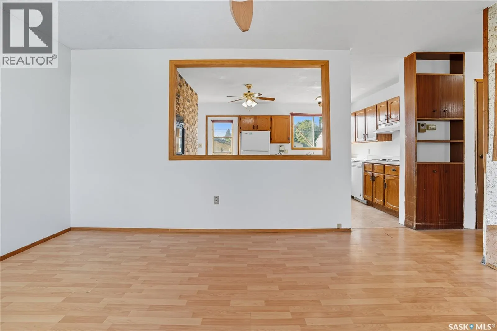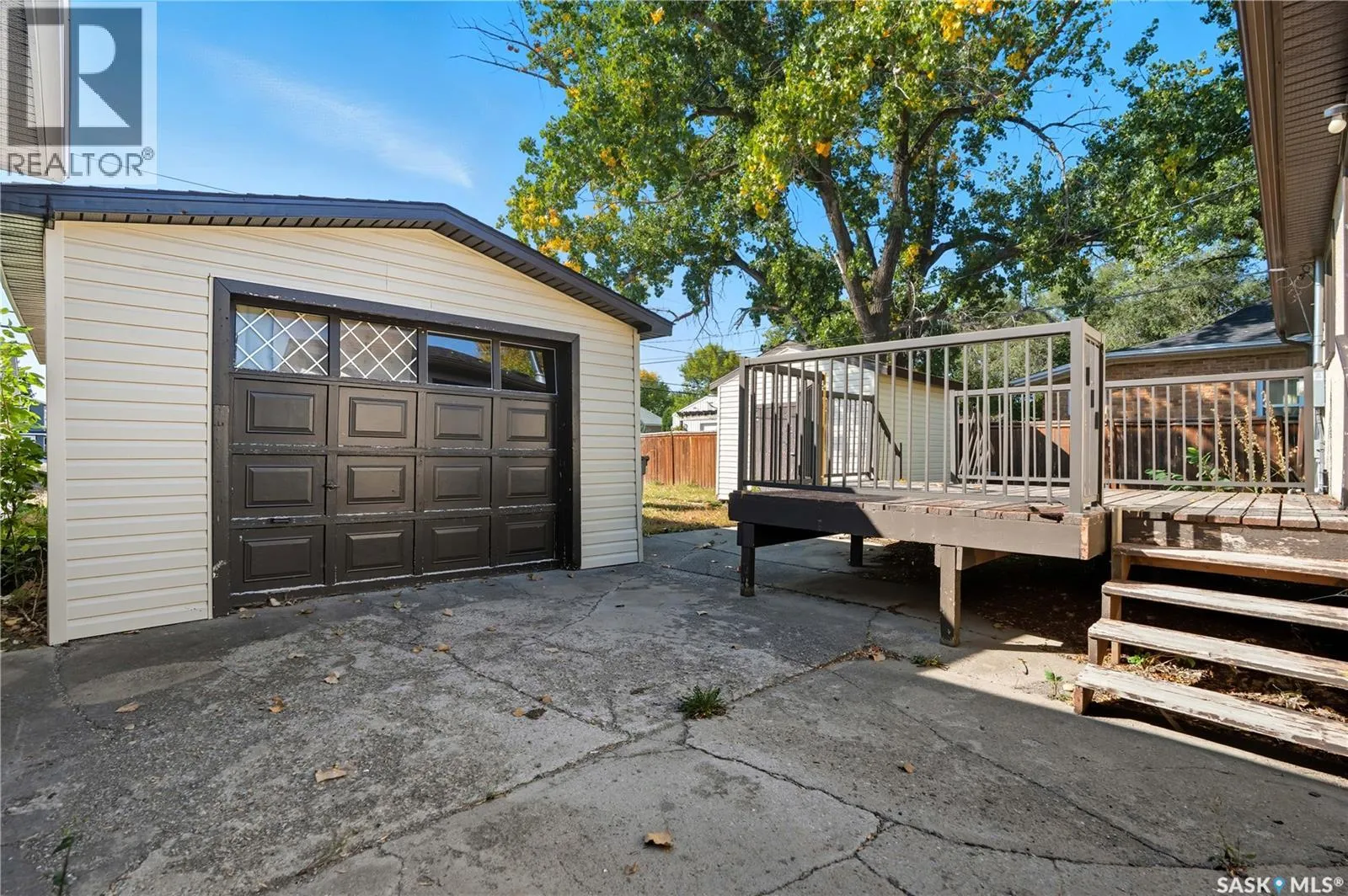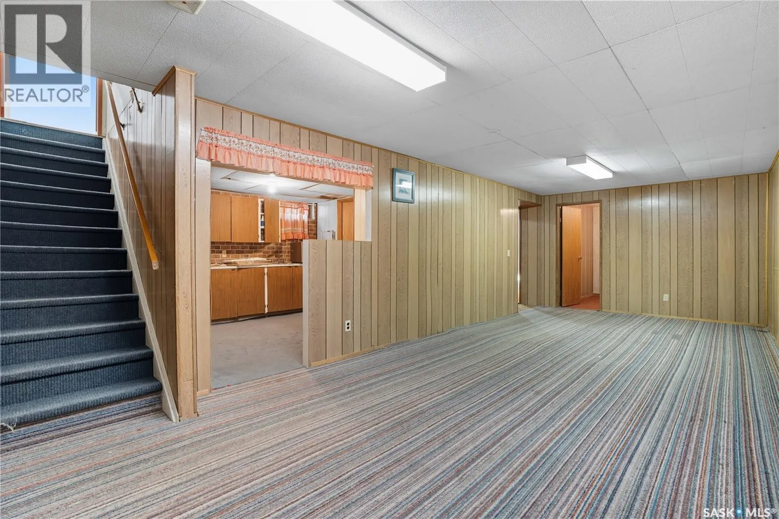 Looking for an excellent starter home or family home? This 4 bed / 2 bath bungalow boasts 864 sq.ft and a garage! Good looking home as you arrive! Heading inside you are greeted by a large living room with an open living concept with the kitchen. The spacious kitchen has lots of space for a dining table and lots of cupboard space. The kitchen has access to your large deck - perfect for a relaxing evening. Down the hall we find 3 bedrooms and a 4 piece bathroom. Heading downstairs we are greeted by a huge family room with a kitchenette. There is a 4th bedroom, a den/office and a 3 piece bathroom with laundry. Heading outside you find a large yard with a huge shed and a 14' x 24' detached garage with power and a concrete floor. Quick possession is available! Located in the bustling town of Gravelbourg - just 10 minutes from Thomson Lake. Reach out today to book your showing! (id:27476)