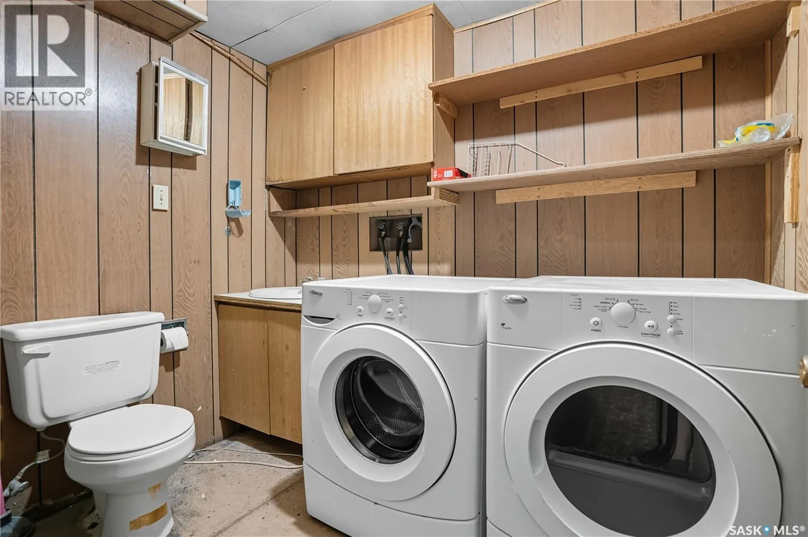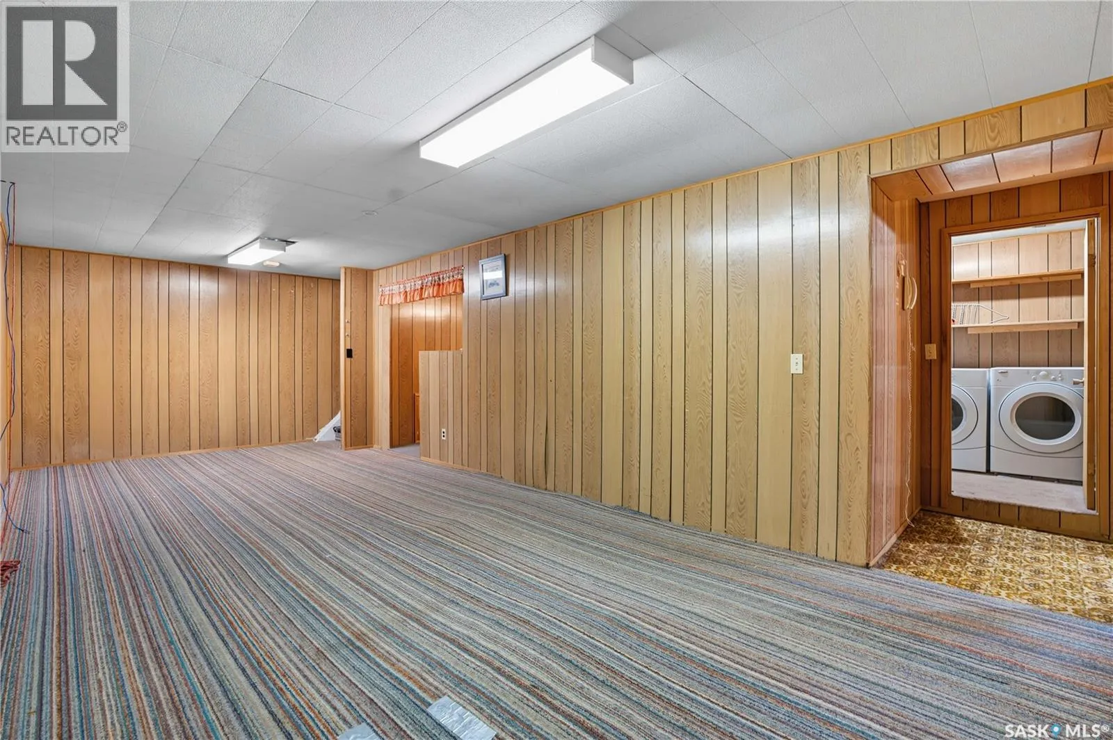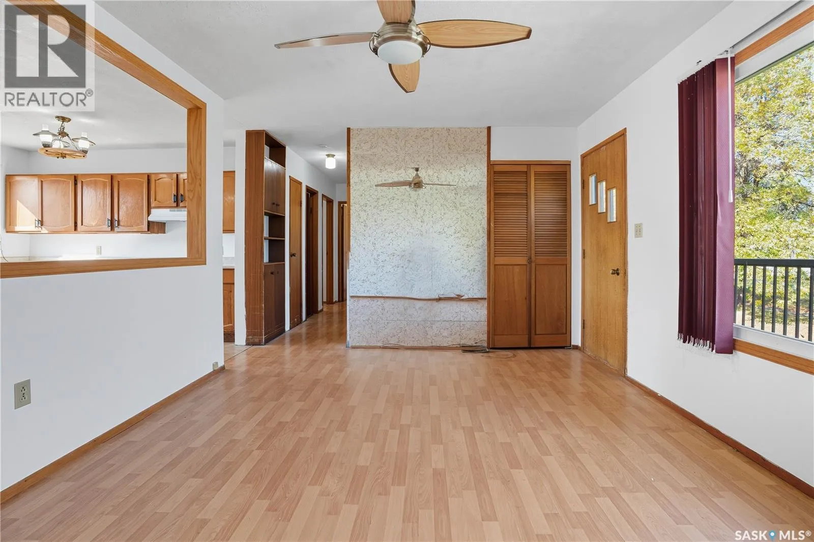 Looking for an excellent starter home or family home? This 4 bed / 2 bath bungalow boasts 864 sq.ft and a garage! Good looking home as you arrive! Heading inside you are greeted by a large living room with an open living concept with the kitchen. The spacious kitchen has lots of space for a dining table and lots of cupboard space. The kitchen has access to your large deck - perfect for a relaxing evening. Down the hall we find 3 bedrooms and a 4 piece bathroom. Heading downstairs we are greeted by a huge family room with a kitchenette. There is a 4th bedroom, a den/office and a 3 piece bathroom with laundry. Heading outside you find a large yard with a huge shed and a 14' x 24' detached garage with power and a concrete floor. Quick possession is available! Located in the bustling town of Gravelbourg - just 10 minutes from Thomson Lake. Reach out today to book your showing! (id:27476)