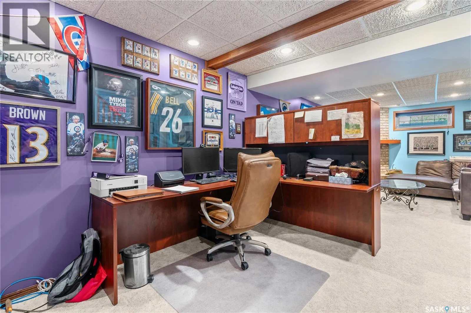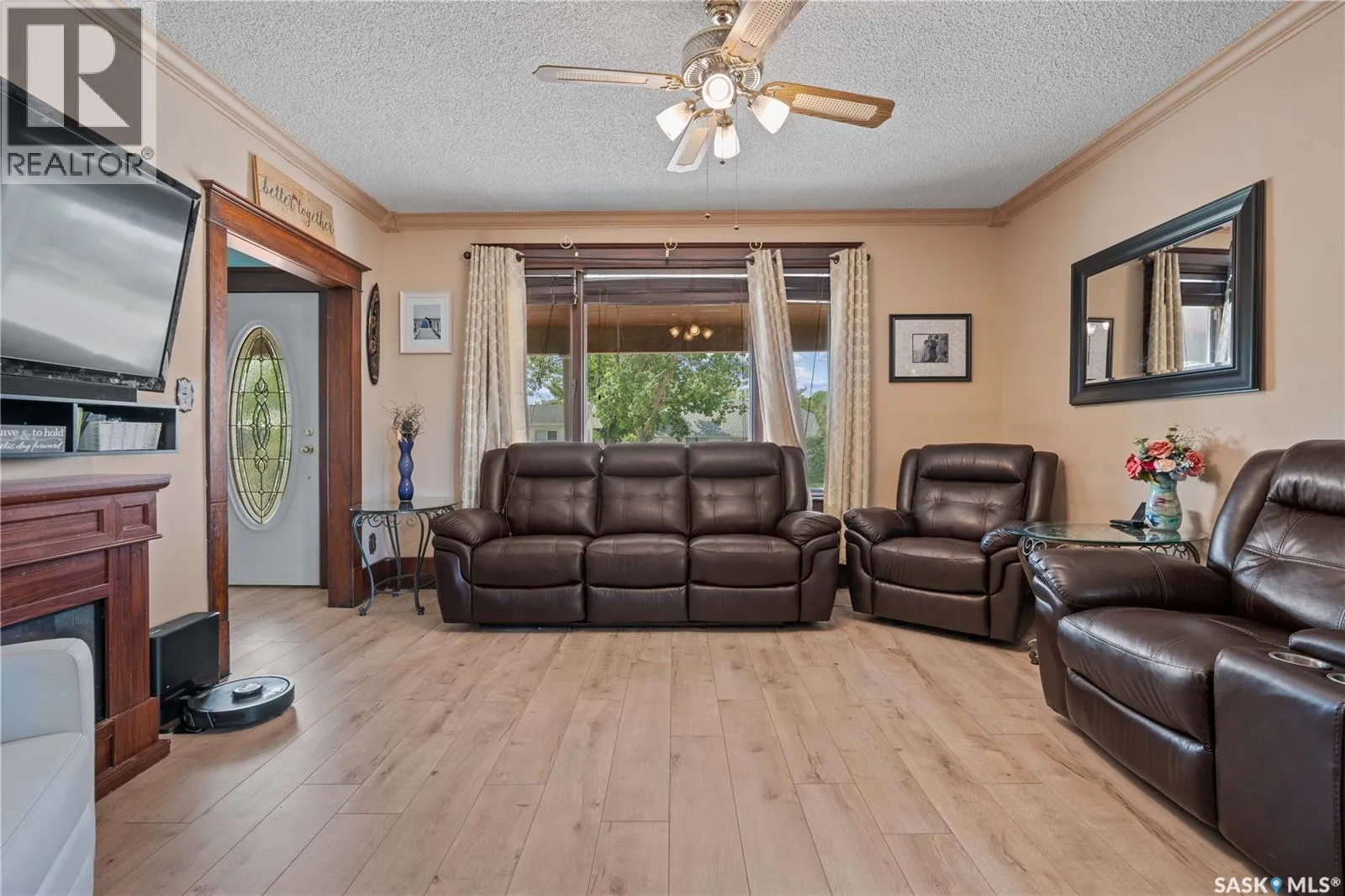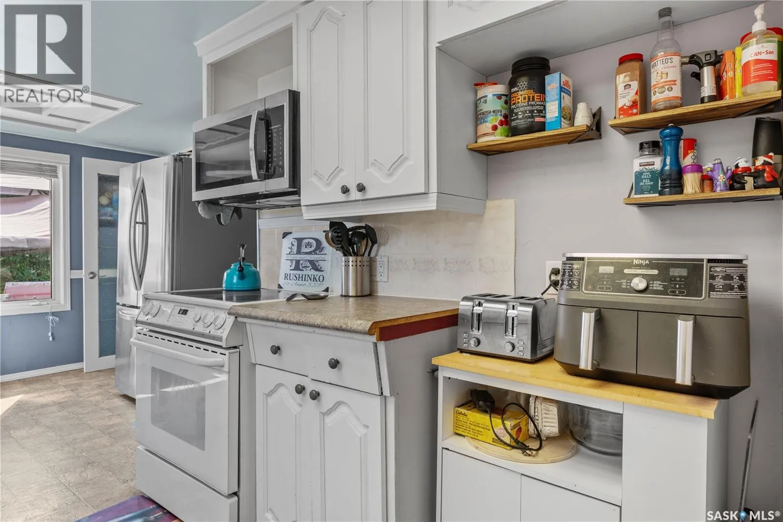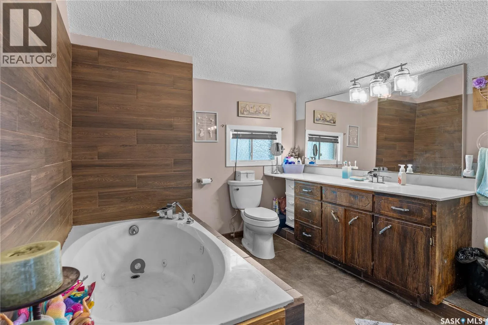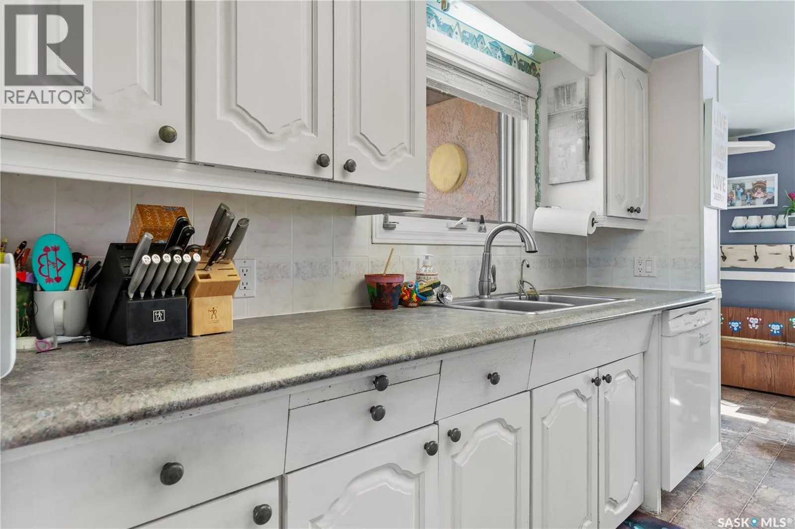 Gravelbourg offers small-town historic charm in a family-friendly, safe communityâideal for home buyers seeking affordable real estate in a welcoming rural Saskatchewan setting with all the amenities found in larger centres. These include a hospital, doctors, Collège Mathieu, Kâ12 schools, shopping, groceries, restaurants, local businesses, RCMP services, a cultural centre, and family activities including swim club, all within ten minutes of Thompson Lake Regional Park and golf course. This solid, character-filled historic Eaton home for sale in Gravelbourg, Saskatchewan offers five bedrooms, three bathrooms, and an oversized (24' x 32') heated attached garage with direct entry, parking for eight vehicles plus RV parking. The home blends timeless charm with major updates, including being professionally moved onto a solid, energy-efficient ICF (Insulated Concrete Form) foundation with in-floor heat in the basement in 2001âan incredibly valuable upgrade for long-term durability and peace of mind. Step onto the inviting covered front porch and into the main floor featuring tall ceilings, a spacious living room, dining room, kitchen, front office/den, and a 2pc bath. Upstairs offers four bedrooms and a luxurious bathroom with a jacuzzi soaker tub and separate shower. The basement adds more living space with in-floor heat, a cozy gas fireplace in the family room, an additional bedroom (*window may not meet current legal egress), and a 3pc bathroom. Recent updates include a brand new metal roof, PVC fencing, new flooring in the dining and living rooms, new grass in the backyard, and a xeriscaped front yardâgreat for cutting down those watering bills. Ready for a lifestyle change and considering small-town Saskatchewan living? Donât forget to click the multimedia link to VIEW THE VIRTUAL TOUR. Contact your REALTOR® today to book a viewing. (id:27476)