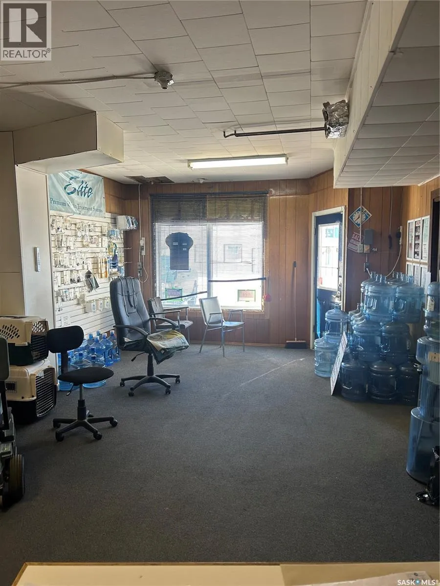 Welcome to the terrific opportunity that is R&M Watershop located in downtown Grenfell. This locally owned RO Water shop features RO bottled water with ozination. All the equipment for the filteration process is included.( RO system, Ozinator, bottling system, bottle cleaning system and coin operated dispensing unit that is open to the public for however long the owner sets up the automatic locking door for. The building features a store front for walk-in sales, an office space, rear workshop and warehouse with overhead heating unit, and access to the upstairs living quarters. Upstairs 1 bedroom living quarters is ideal for owner to live or rent it out as another source of income. Ideally located in downtown Grenfell, this could be your opportunity to own your own business. Check it out today. (id:27476)