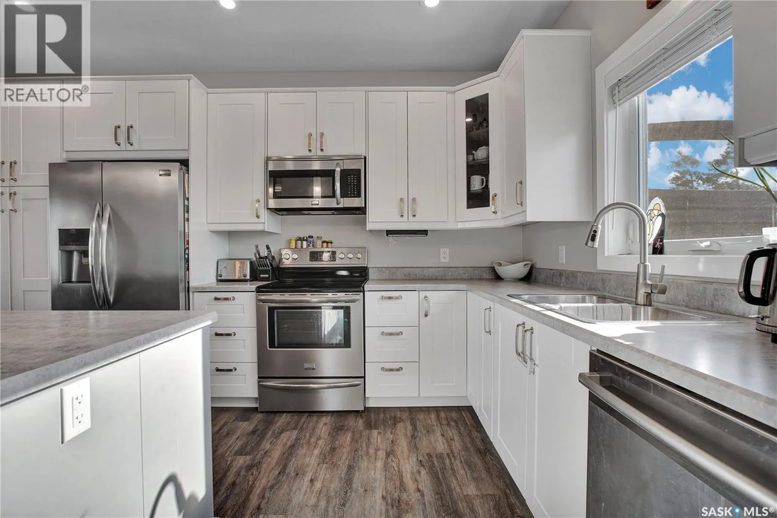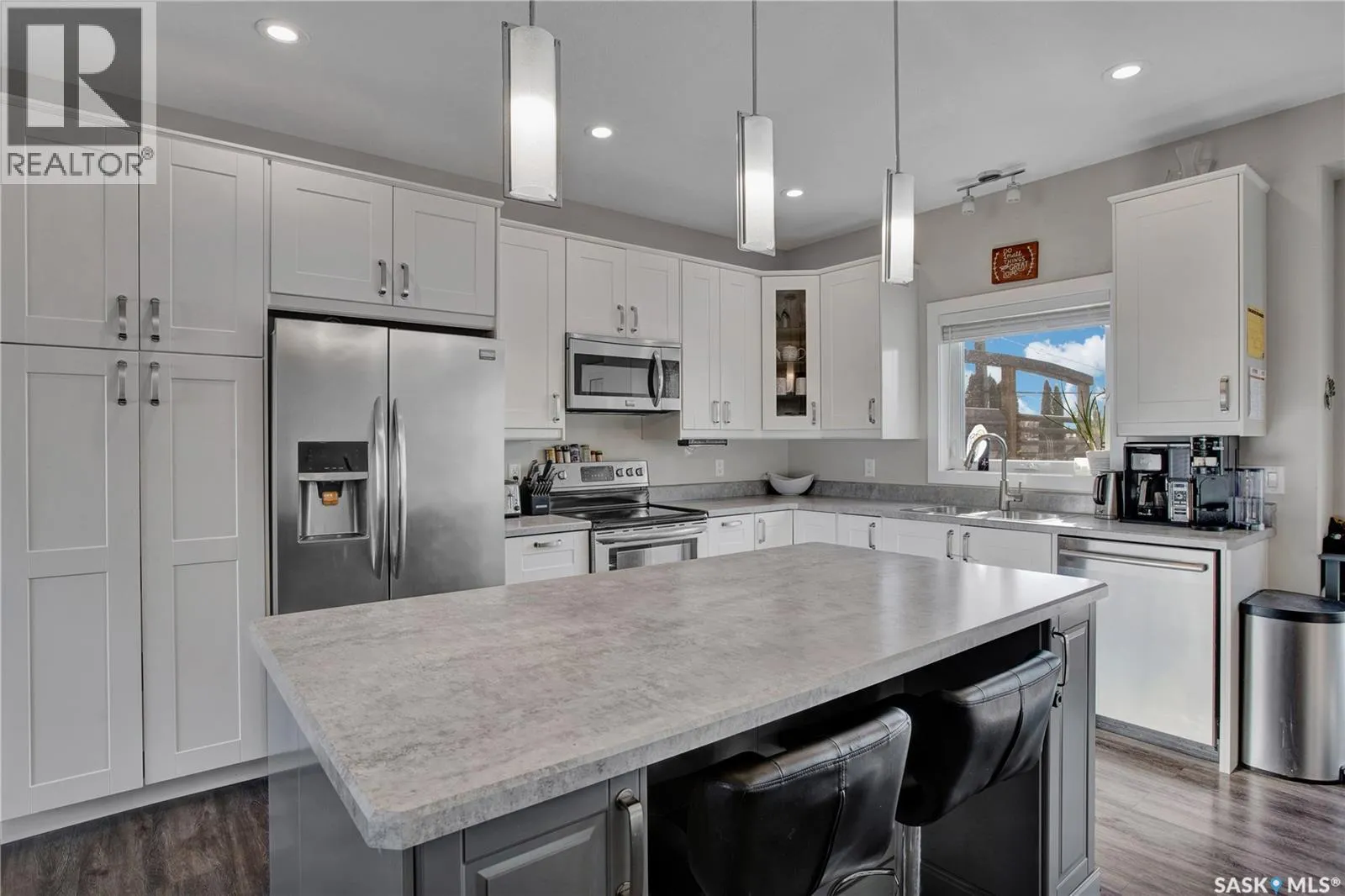 A very unique home, an infill only 3 doors down from the K-12 school, this is your opportunity to enjoy a contemporary home with a modern 5 bed/3 bath bilevel! Built in 2015 the yard and basement have since been fully developed. The main floor holds 3 bedrooms and 2 bathrooms, a romantic fireplace is featured not just in the front room but also in the primary bedroom. The large kitchen is great for families with young children or for entertaining. The basement has been developed with 2 additional bedrooms, a laundry room and 4 piece bath. Water and electrical have been roughed in for a future wet-bar/kitchen. The backyard features a large deck, u/g sprinklers and is fully fenced. Call now for your chance to view this home before it's gone (id:27476)