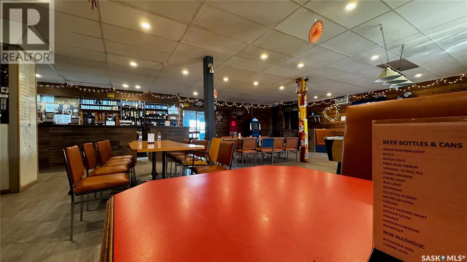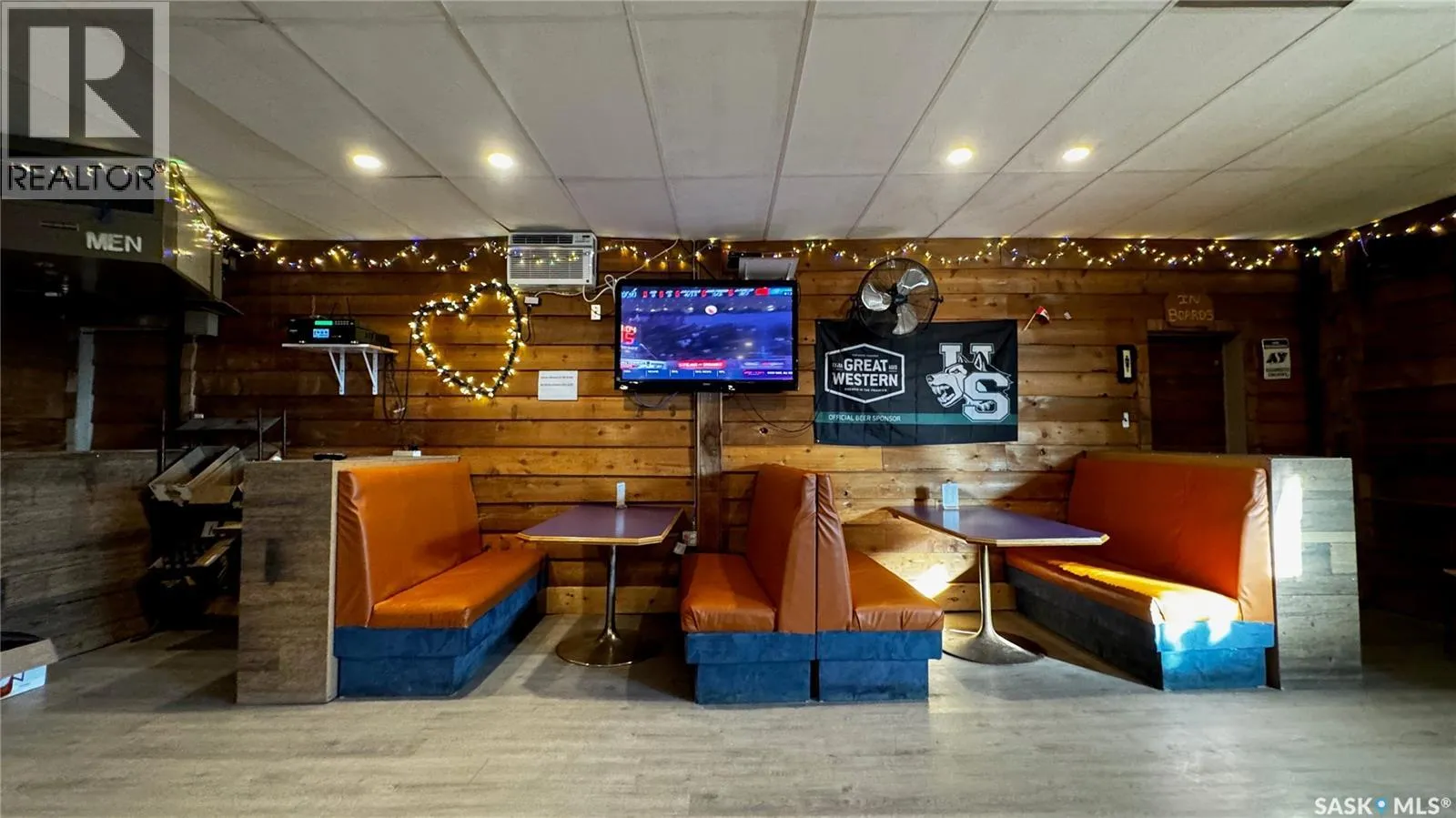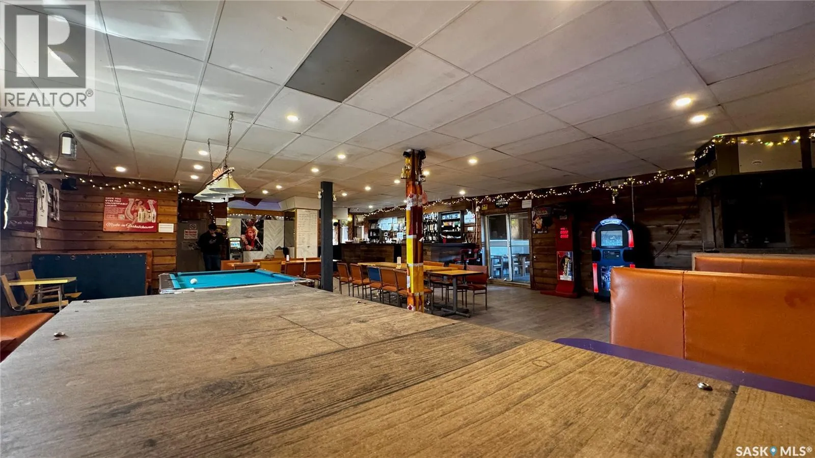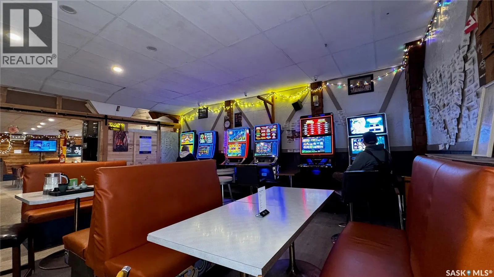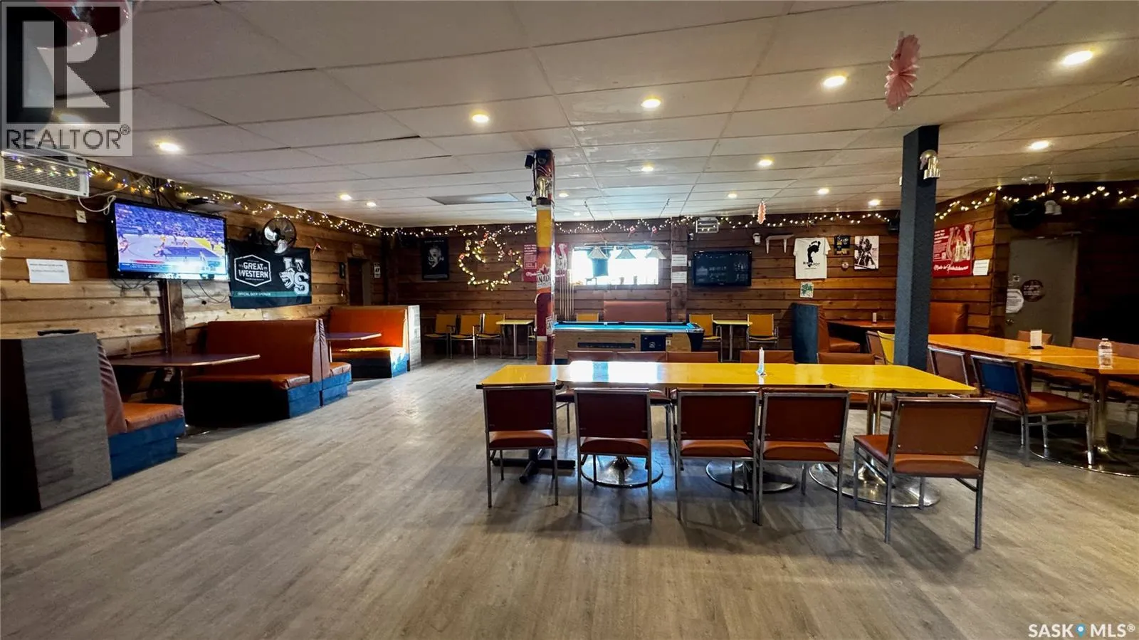 Just 45 minutes from Saskatoon, this exceptional 6000 sq ft, two-storey commercial property in the Town of Hanley offers a rare opportunity to acquire the building, land and a fully operational restaurant-bar business with diverse revenue streams and strong community roots. The main floor features the only Canadian-style restaurant bar in Hanley, equipped with a restaurant liquor permit (minors allowed 11 a.m.â10 p.m.), off-sale liquor permit, tobacco permit, 6 VLTs, 1 ATM, pool table, kickboxing machine, and jukebox, with seating capacity for 100 guests plus an inviting covered outdoor patio. A spacious 18' Ã 12' walk-in cooler, fully outfitted commercial kitchen, and a 20' Ã 24' single attached rear garage add to operational efficiency for the owner or manager. The second floor provides extensive accommodation, including one guest suite with kitchen and private bath, five guest rooms with individual sinks, two shared bathrooms with shower stalls, and a storage room. The opposite side of the upper level features an ownerâs suite, an office, and a versatile flex room suitable as an additional office, guest room, or managerâs room. The building is heated by a natural-gas floor-model furnace with forced air and cooled by wall A/C units in select areas. Hanley draws steady traffic with amenities such as a hockey rink, golf course, nearby horse racing, and a regional high school, while the business benefits from loyal patrons, including local residents, sports fans, and families from provincial football and youth hockey leagues. The current owner actively supports local sports and is willing to stay for training, making this a smooth transition for the next operator of this thriving multifaceted establishment. (id:27476)