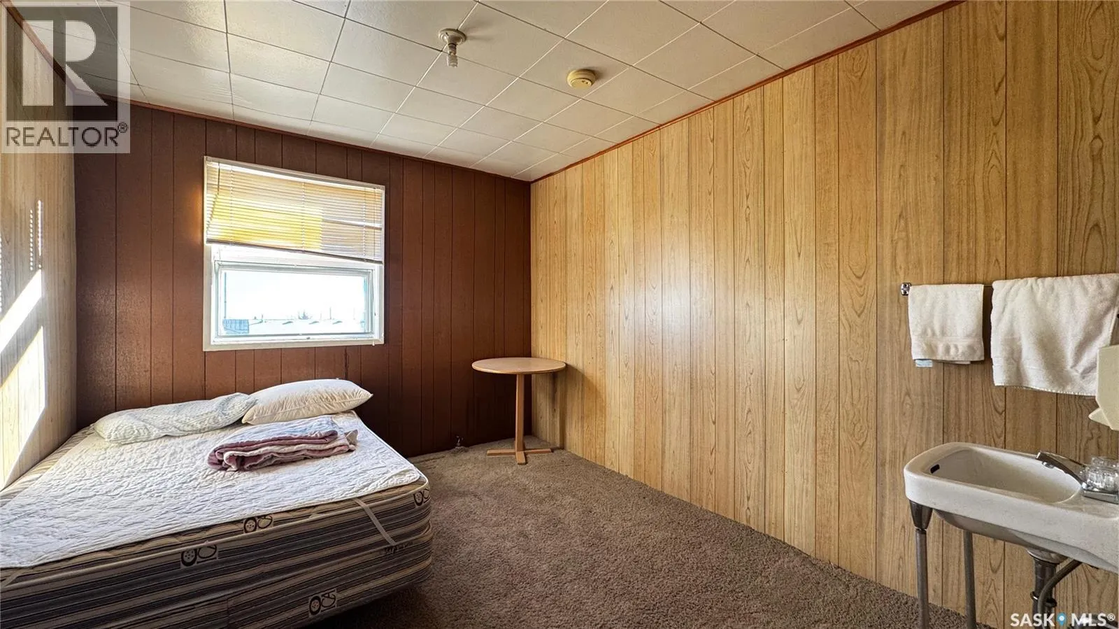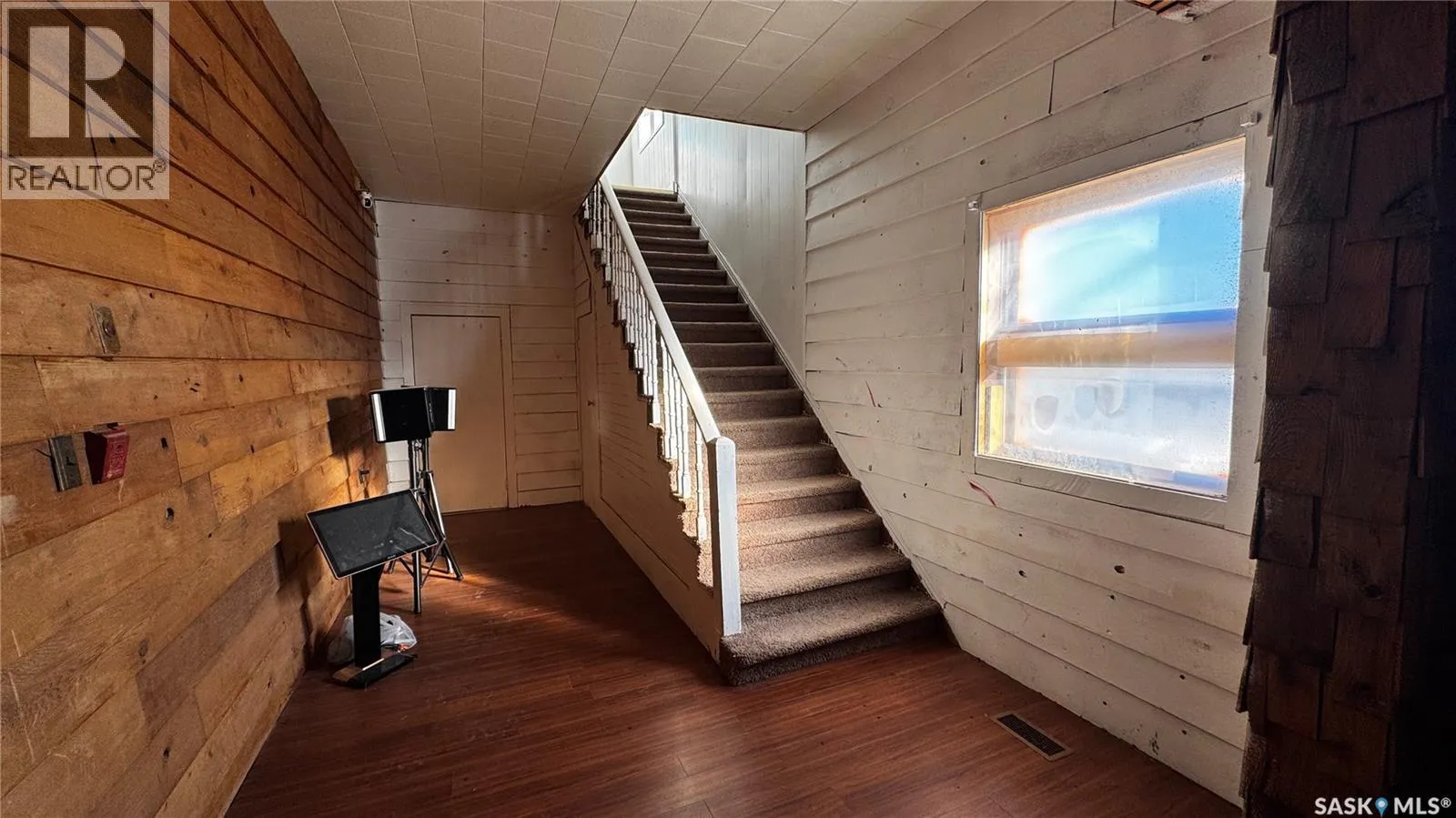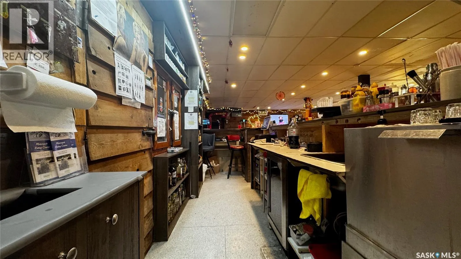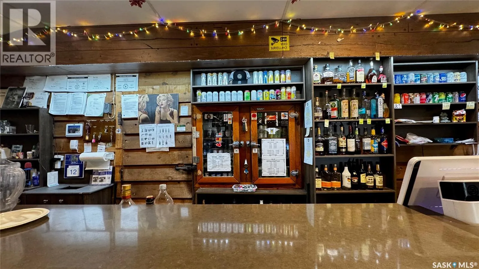Just 45 minutes from Saskatoon, this exceptional 6000 sq ft, two-storey commercial property in the Town of Hanley offers a rare opportunity to acquire the building, land and a fully operational restaurant-bar business with diverse revenue streams and strong community roots. The main floor features the only Canadian-style restaurant bar in Hanley, equipped with a restaurant liquor permit (minors allowed 11 a.m.â10 p.m.), off-sale liquor permit, tobacco permit, 6 VLTs, 1 ATM, pool table, kickboxing machine, and jukebox, with seating capacity for 100 guests plus an inviting covered outdoor patio. A spacious 18' Ã 12' walk-in cooler, fully outfitted commercial kitchen, and a 20' Ã 24' single attached rear garage add to operational efficiency for the owner or manager. The second floor provides extensive accommodation, including one guest suite with kitchen and private bath, five guest rooms with individual sinks, two shared bathrooms with shower stalls, and a storage room. The opposite side of the upper level features an ownerâs suite, an office, and a versatile flex room suitable as an additional office, guest room, or managerâs room. The building is heated by a natural-gas floor-model furnace with forced air and cooled by wall A/C units in select areas. Hanley draws steady traffic with amenities such as a hockey rink, golf course, nearby horse racing, and a regional high school, while the business benefits from loyal patrons, including local residents, sports fans, and families from provincial football and youth hockey leagues. The current owner actively supports local sports and is willing to stay for training, making this a smooth transition for the next operator of this thriving multifaceted establishment. (id:27476)