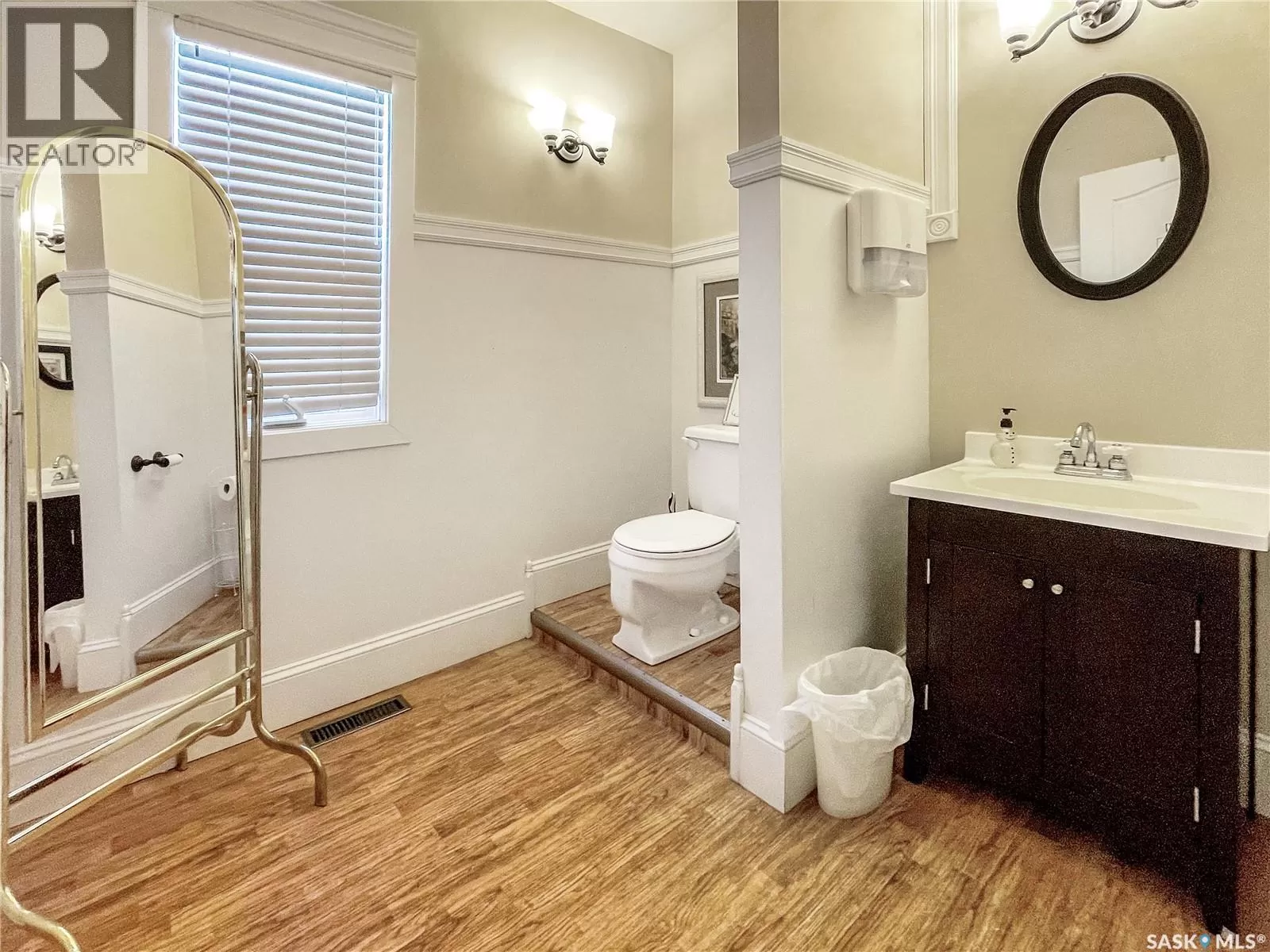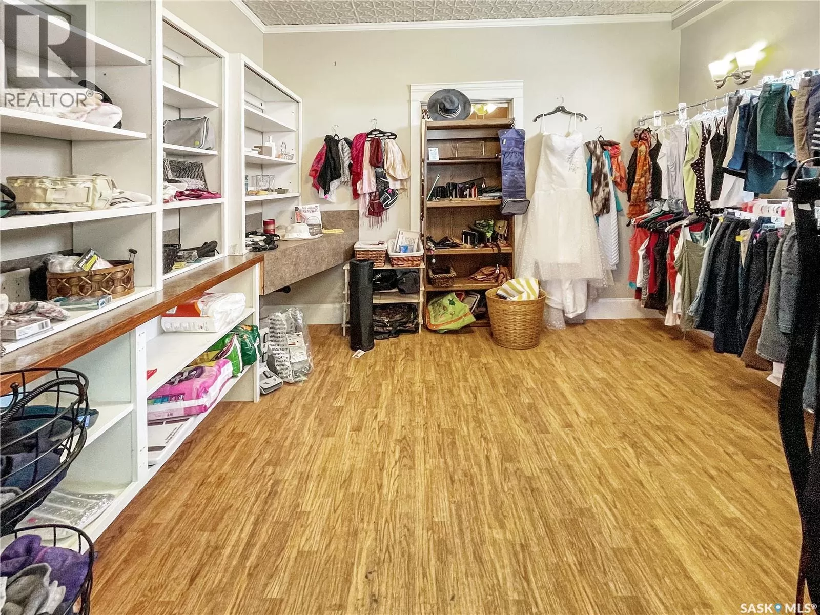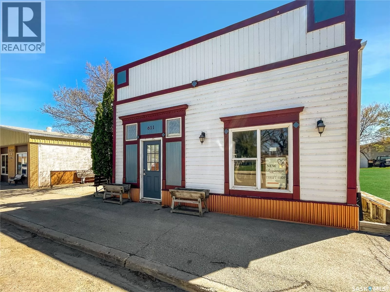 Discover the perfect opportunity to combine your aspirations of homeownership with entrepreneurship in this beautifully renovated property, ideally situated on Main Street in Herbert. This versatile building, previously a barber shop and more recently a retail store, has undergone extensive renovations since 2008, led by a renowned decorator who reimagined the space while preserving its charming original metal ceiling. The thoughtful design offers a showcase room at the front boasting 9-foot ceilings adorned with statement lighting, creating an inviting atmosphere for clients and guests alike. Patio doors open to a serene outdoor area featuring trees and benches, perfect for relaxation. The front section also includes a convenient two-piece bathroom and a closet currently utilized for display purposes, along with an L-shaped staff room equipped with essential amenities, including a fridge, microwave, and sink. The back addition maintains an airy feel with 9-foot ceilings and carpeting. This property holds immense potential for a variety of business ventures, such as a nail salon, hair salon, reflexology center, or even a computer-based enterprise. The zoning allows for both residential and commercial use, providing flexibility to suit your needs. Consider enhancing the space for your business or converting it into live in business! Below sits a partial basement measuring 21 by 14.5 feet with a concrete floor and a ceiling height of 6â3 adding extra storage options. Don't miss this exceptional opportunityâcall today to schedule a viewing or for more information. (id:27476)