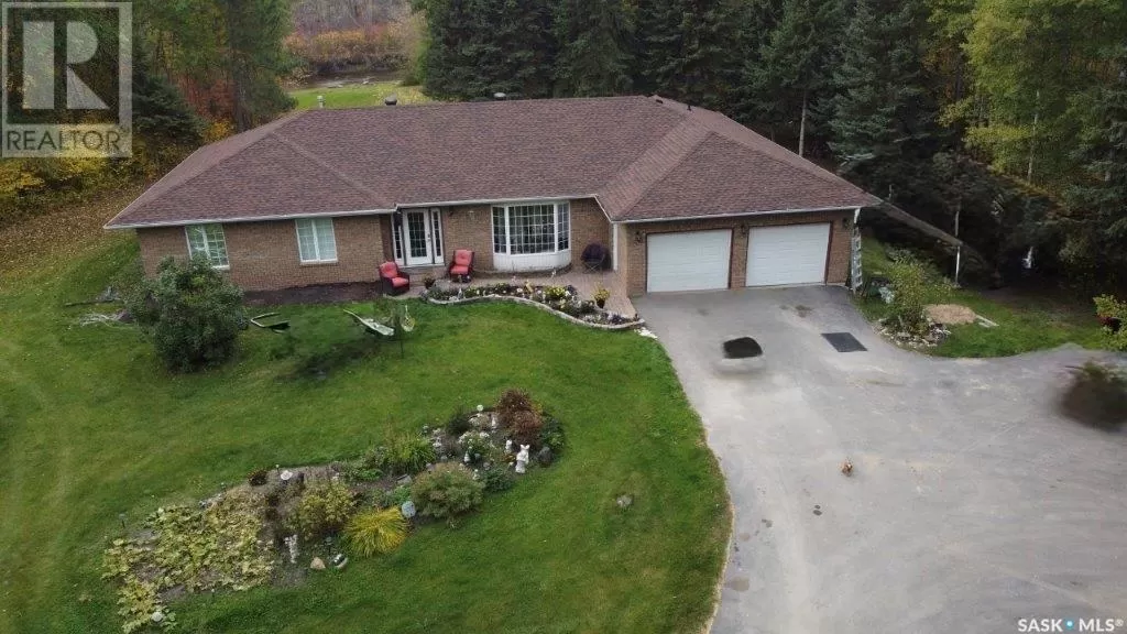 Secluded,Beautiful property offers over 2,300 sq ft on the main level with 5 Bedrooms, 3 Bathrooms, 2 Living Rooms, Kitchen & Dining Room are Large and well-equipped. The Primary Bedroom Includes a shared four-piece washroom. 2 two-car garages, one attached and one detached, with half of the detached garage converted into a heated, insulated workshop. 4.11 acres Situated along the Fir River, just 1.5 miles from Hudson Bay,Sk, has a Paved driveway, beautifully landscaped with mature trees and Garden area near the river and a gazebo for enjoying the riverside view. Call today to set up a viewing you wont be disappointed! Directions: Wizewood Rd 1.5 miles West side (id:27476)