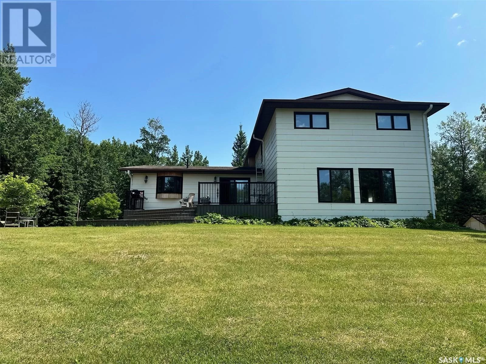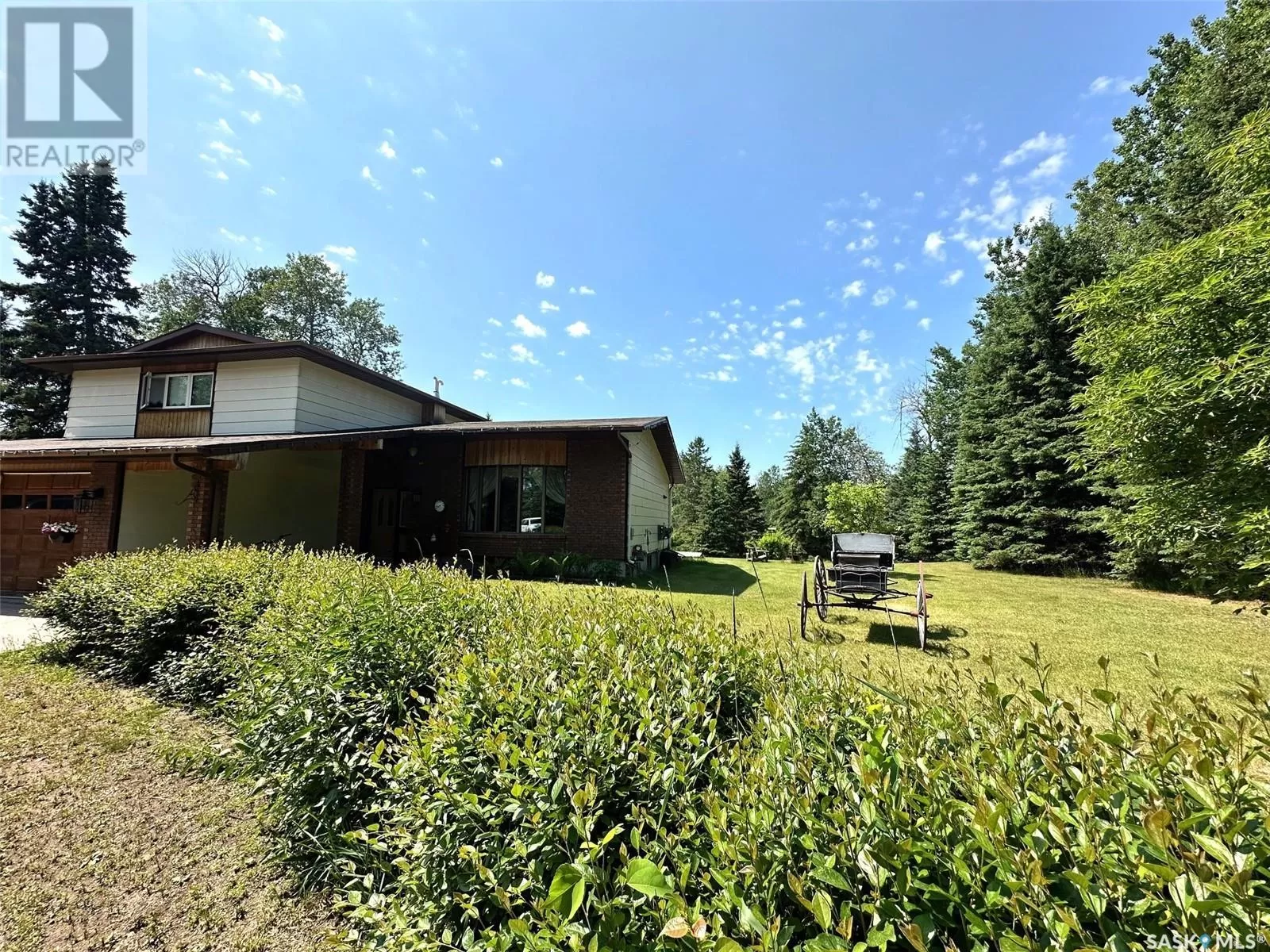 contact listing agent Nestled into the trees just south of the town of Hudson Bay the Sieben Acreage offers 3.74 acres of tranquility along the Fir River. This 2,764 sq ft home features 4 bedrooms and 3 bathrooms, including a spacious principle bedroom with a private 4-piece bath. The main bathroom boasts a relaxing corner jet tub, perfect for unwinding after a long day. A newly finished basement adds even more living space, while main floor laundry provides convenience. With a bank of windows overlooking the river, the large family room invites you to relax and take in the view. Complete with a cozy wood fireplace, itâs an ideal space for the whole family to gather and unwind or to entertain guests in comfort. Just off the dining room, a deck offers an additional outdoor retreat where you can soak in the beauty of nature. Set back just enough to maintain breathtaking river views, the property is surrounded by lush grass and mature trees, ensuring privacy and natural beauty. A thriving, well-established business is included in the sale, featuring two heated greenhouses (35x50 and 54x100) equipped with large cooling fans. Whether you're looking for a peaceful retreat or a unique investment opportunity, this acreage combines rural charm with business potential. Call today to setup your appointments (id:27476)