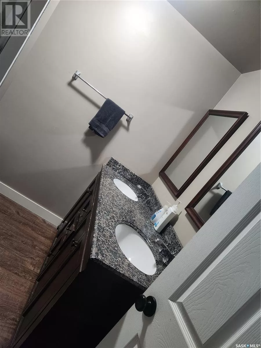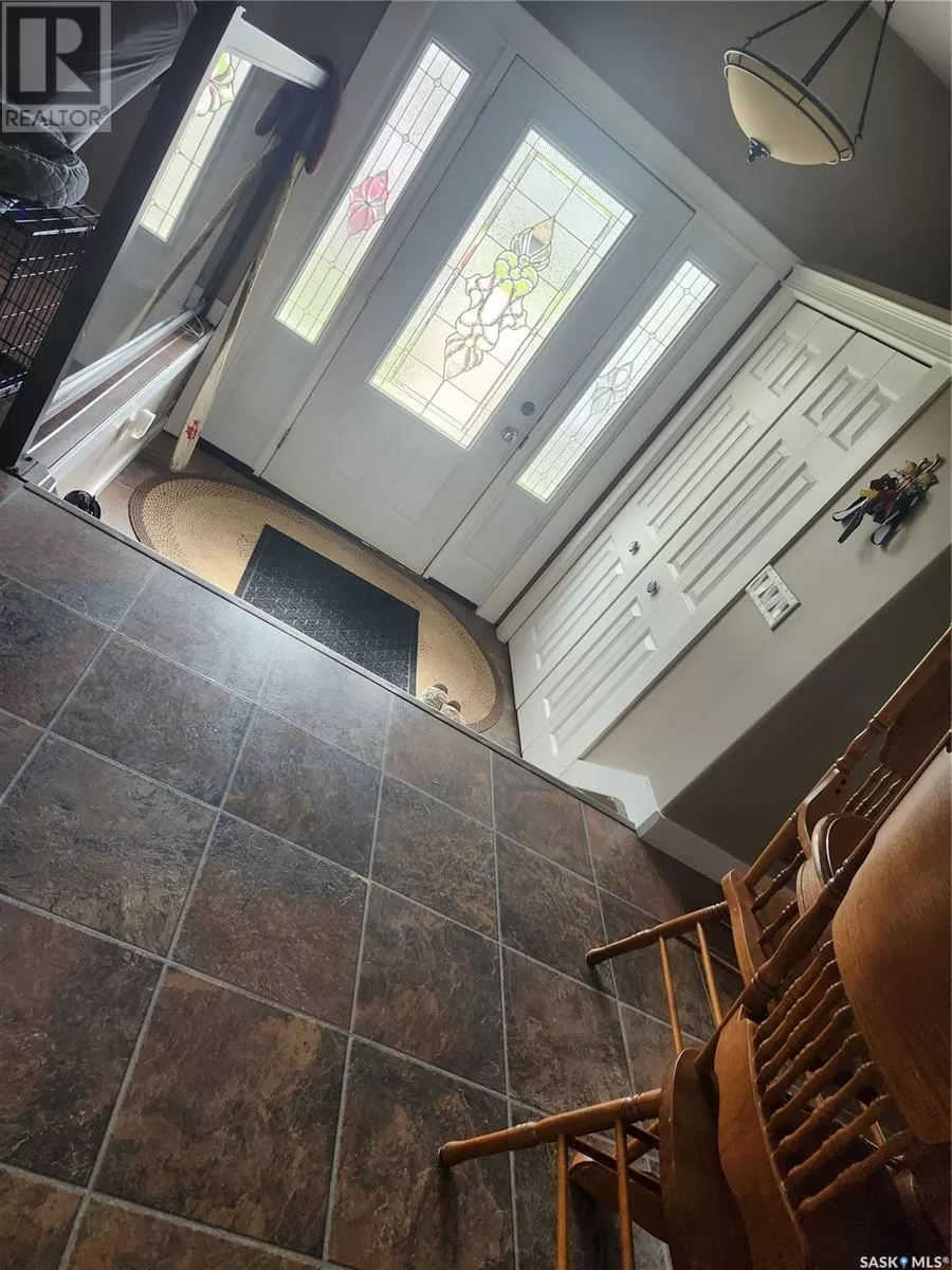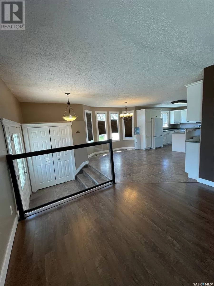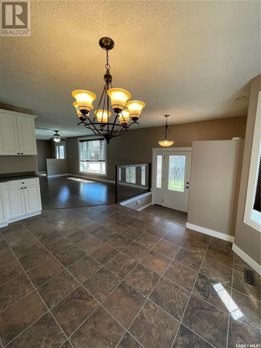 1 block South from k-12 school This beautifully updated, move-in-ready home features 4 bedrooms and 2 bathrooms, all conveniently located on one level. The laundry facilities are also on the main floor for added convenience. The primary bedroom boasts a walk-in closet and a 3-piece bathroom. Three additional large bedrooms offer plenty of space for family or guests. The open concept design enhances the living space, flowing seamlessly from the front door through to the dining area and kitchen, and then north to the living room. Every room has been thoughtfully updated with new finishes, windows, and doors. The kitchen features fresh white cabinets, ample cabinet space, and a side wine and coffee bar, along with modern appliances including a built-in dishwasher, fridge, stove, and a microwave oven over the stove. The spacious main bathroom includes his and her sinks and a tiled tub surround. Outside, the large deck faces west, perfect for enjoying morning coffee. The backyard is designed for relaxation and entertainment, with a privacy fence, fire pit area, and an insulated, electrically heated shed with a large roll access door. Additionally, the downstairs area, while primarily a service area, provides useful storage space and houses the water heater, furnace, and electrical service panels. The home is equipped with air conditioning and is ready for quick possession. Donât miss the opportunity to view this fantastic propertyâcall today to set up your private viewing! (id:27476)