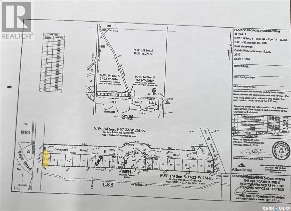 Enjoy lake living on this corner lot. The Seasonal lot is .11 acre. Culverts and driveways have been installed and trees planted. Lot has 100 amp power to property line. Buyer to sign Servicing Agreement with Pape Holdings Inc.. Buyer responsible for utility hookup costs. Buyer is responsible for septic holding tank cost and install. Buyers to consult with RM of Humboldt regarding building guidelines and approval. Minutes from the City of Humboldt and approx. 50 min from the BHP Jansen Potash Mine site. Call today for more information! (id:27476)