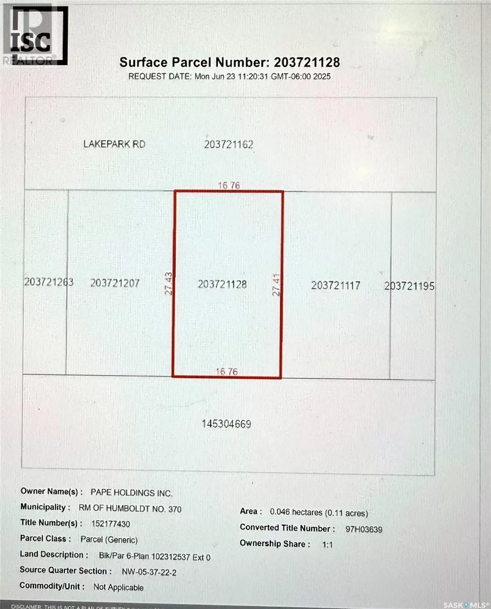 Enjoy lake living on this lot. The Seasonal lot is .11 acre. Culverts and driveways have been installed and trees planted. Lot has 100 amp power to property line. Buyer to sign Servicing Agreement with Pape Holdings Inc.. Buyer responsible for utility hookup costs. Buyer is responsible for septic holding tank cost and install. Buyers to consult with RM of Humboldt regarding building guidelines and approval. Minutes from the City of Humboldt and approx. 50 min from the BHP Jansen Potash Mine site. Call today for more information! (id:27476)