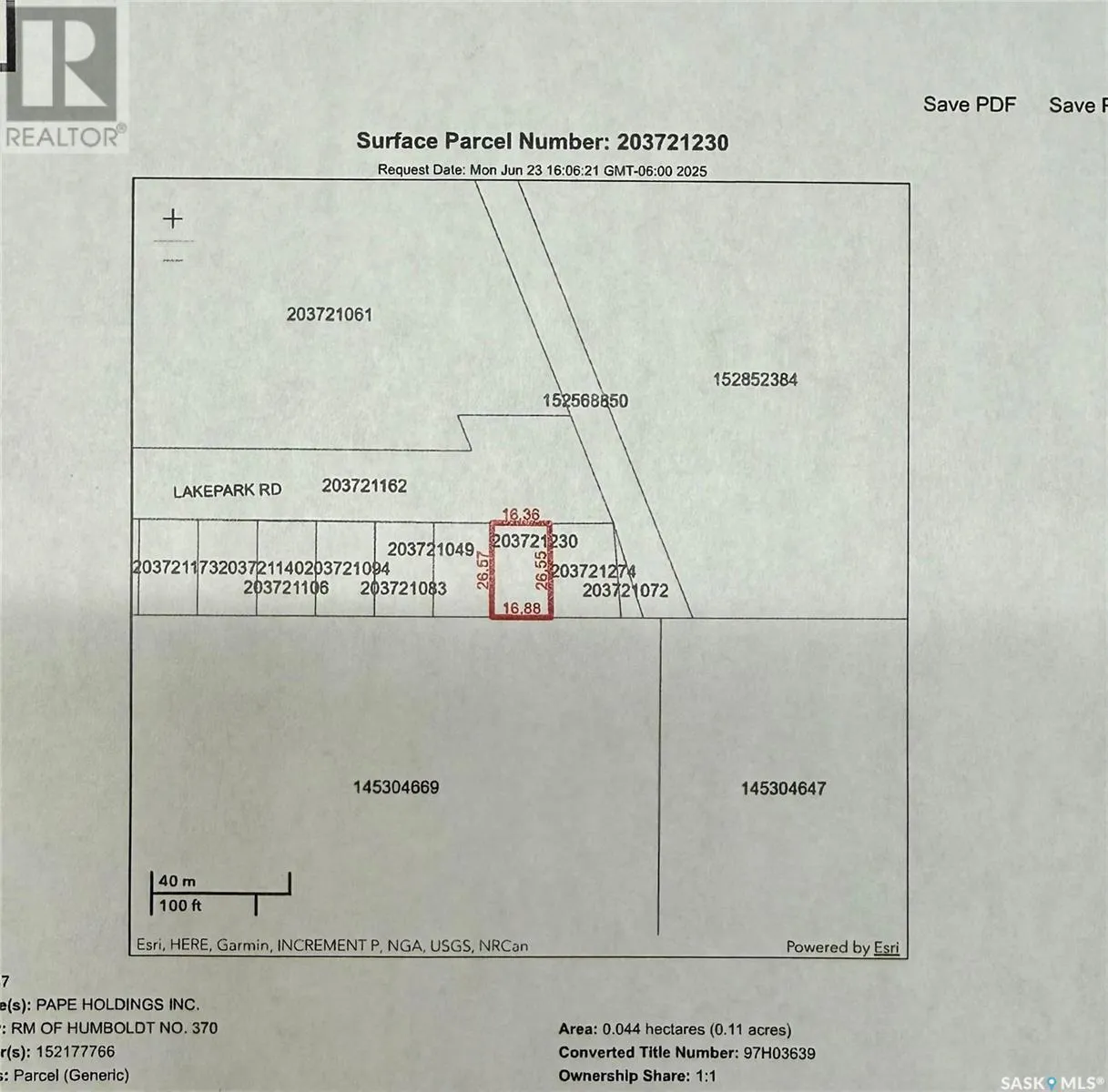 Enjoy lake living on this lot. The Seasonal lot is .11 acre. Culverts and driveways have been installed and trees planted. Lot has 100 amp power to property line. Buyer to sign Servicing Agreement with Pape Holdings Inc.. Buyer responsible for utility hookup costs. Buyer is responsible for septic holding tank cost and install. Buyers to consult with RM of Humboldt regarding building guidelines and approval. Minutes from the City of Humboldt and approx. 50 min from the BHP Jansen Potash Mine site. Call today for more information! (id:27476)
