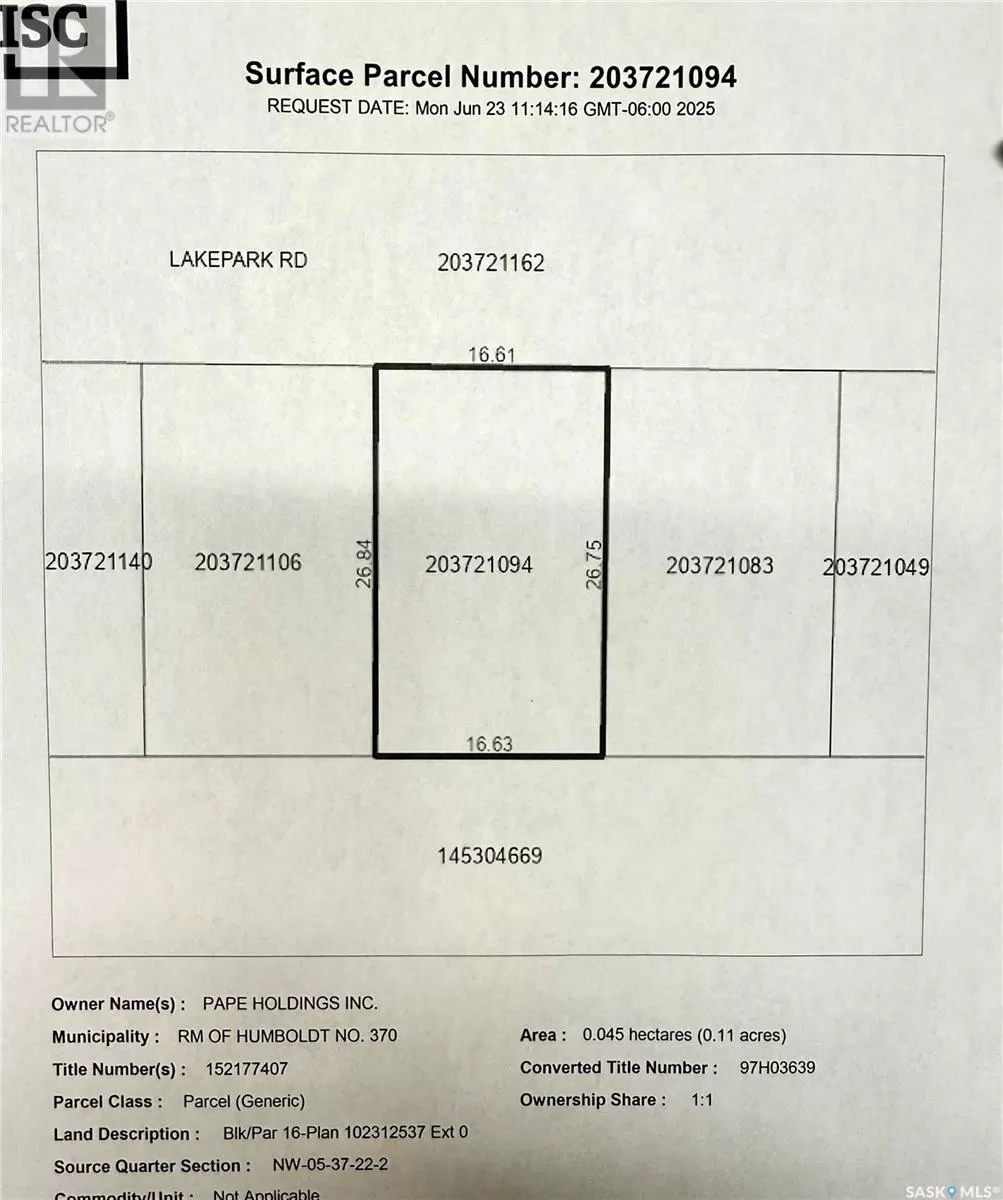 Enjoy lake living on this lot. The Seasonal lot is .11 acre. Culverts and driveways have been installed and trees planted. Lot has 100 amp power box on property. Buyer to sign Servicing Agreement with Pape Holdings Inc.. Buyer responsible for utility hookup costs. Buyer is responsible for septic holding tank cost and install. Buyers to consult with RM of Humboldt regarding building guidelines and approval. Minutes from the City of Humboldt and approx. 50 min from the BHP Jansen Potash Mine site. Call today for more information! (id:27476)