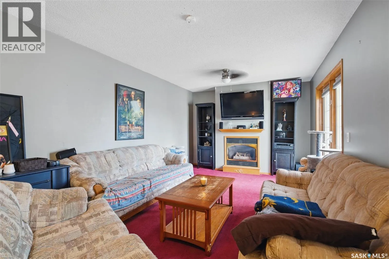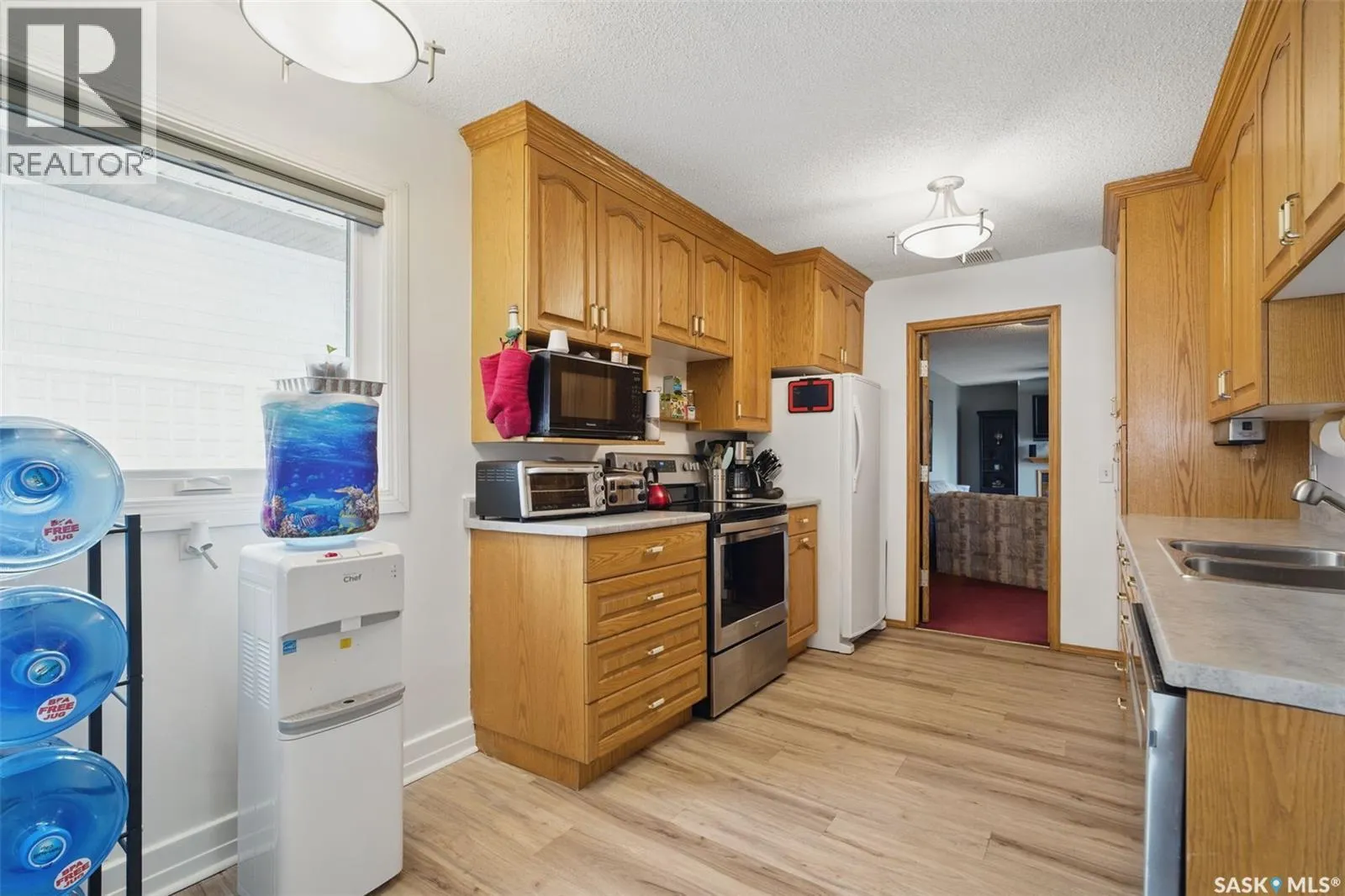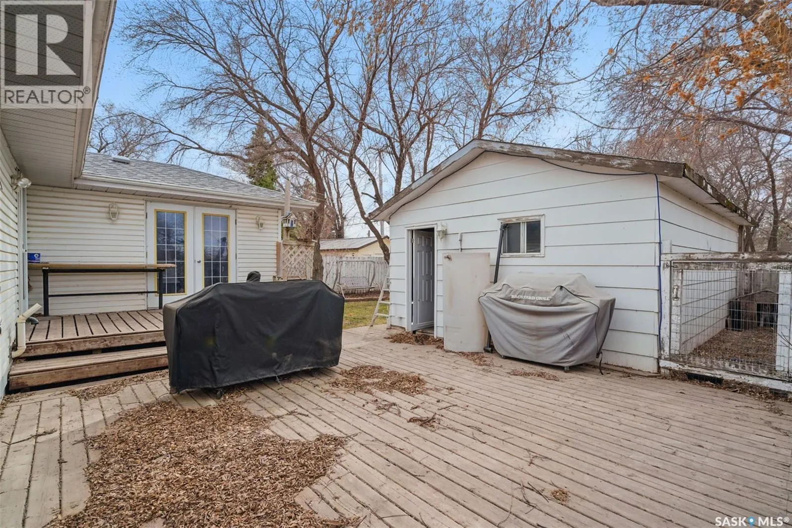 Welcome to this well-maintained 2+1 bedroom bungalow with a den, offering a spacious and thoughtfully laid-out floor plan, located within walking distance to downtown Humboldt and a nearby elementary school. The main level features a large front-facing dining area, bathed in natural light from an expansive east-facing window, creating a warm and inviting atmosphere. The oak kitchen provides ample cabinet and counter space. It seamlessly connects to the bright and comfortable living room, complete with a natural gas fireplace and patio doors leading to a two-tiered deck and fully fenced backyardâperfect for relaxing or entertaining. The main floor also includes a generous primary bedroom with a 3-piece ensuite, a second bedroom, and a versatile den. A beautifully updated 4-piece bathroom with modern finishes adds both style and functionality. The lower level is partially finished, offering a third bedroom, a large carpeted family room that provides additional living space, and a utility/storage area, with the remaining space ready for your finishing touches. A single detached garage with back alley access provides added convenience, and the yard is fully fenced with ample green space for outdoor enjoyment. This home has received several recent updates, including new shingles, some new windows, a water heater, furnace, stove, dishwasher, washer, and dryer. The main level has also seen updates, including a renovated bathroom, newer flooring, and modern light fixtures throughout. With its family-friendly layout, modern upgrades, and prime location, this move-in-ready home presents an excellent opportunity. Contact your REALTOR® today to schedule a private viewing. (id:27476)