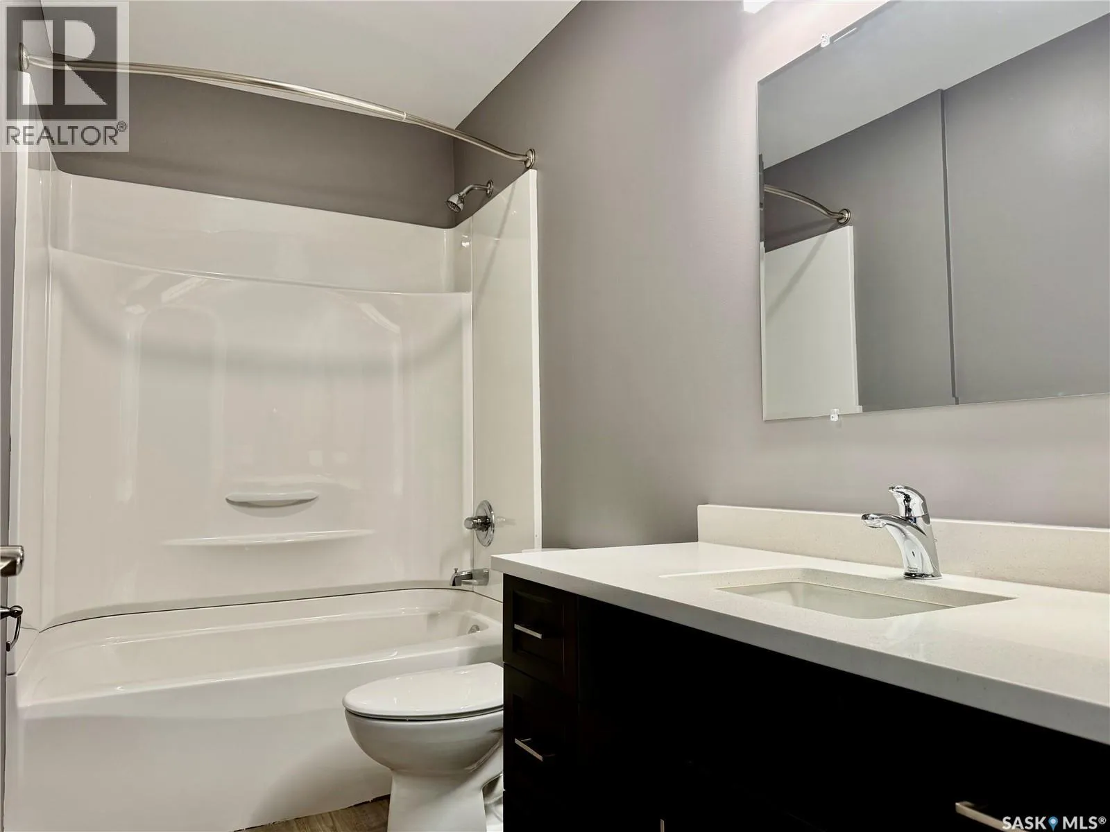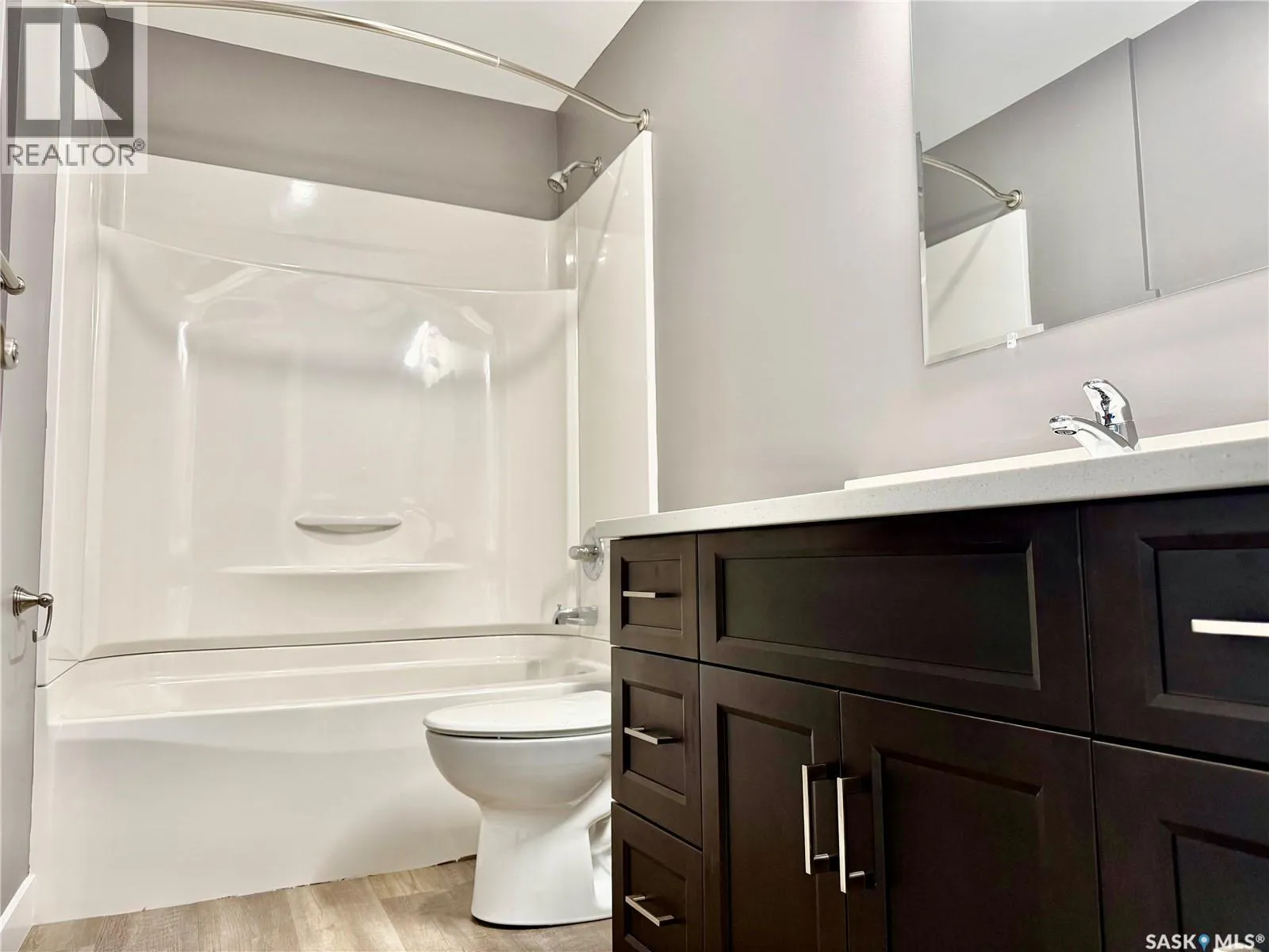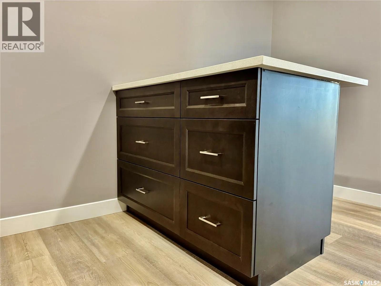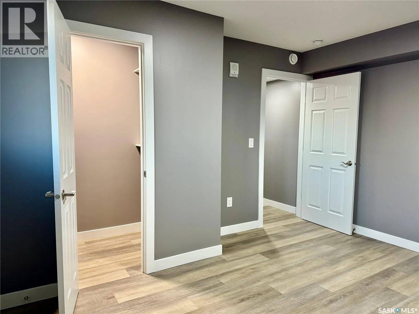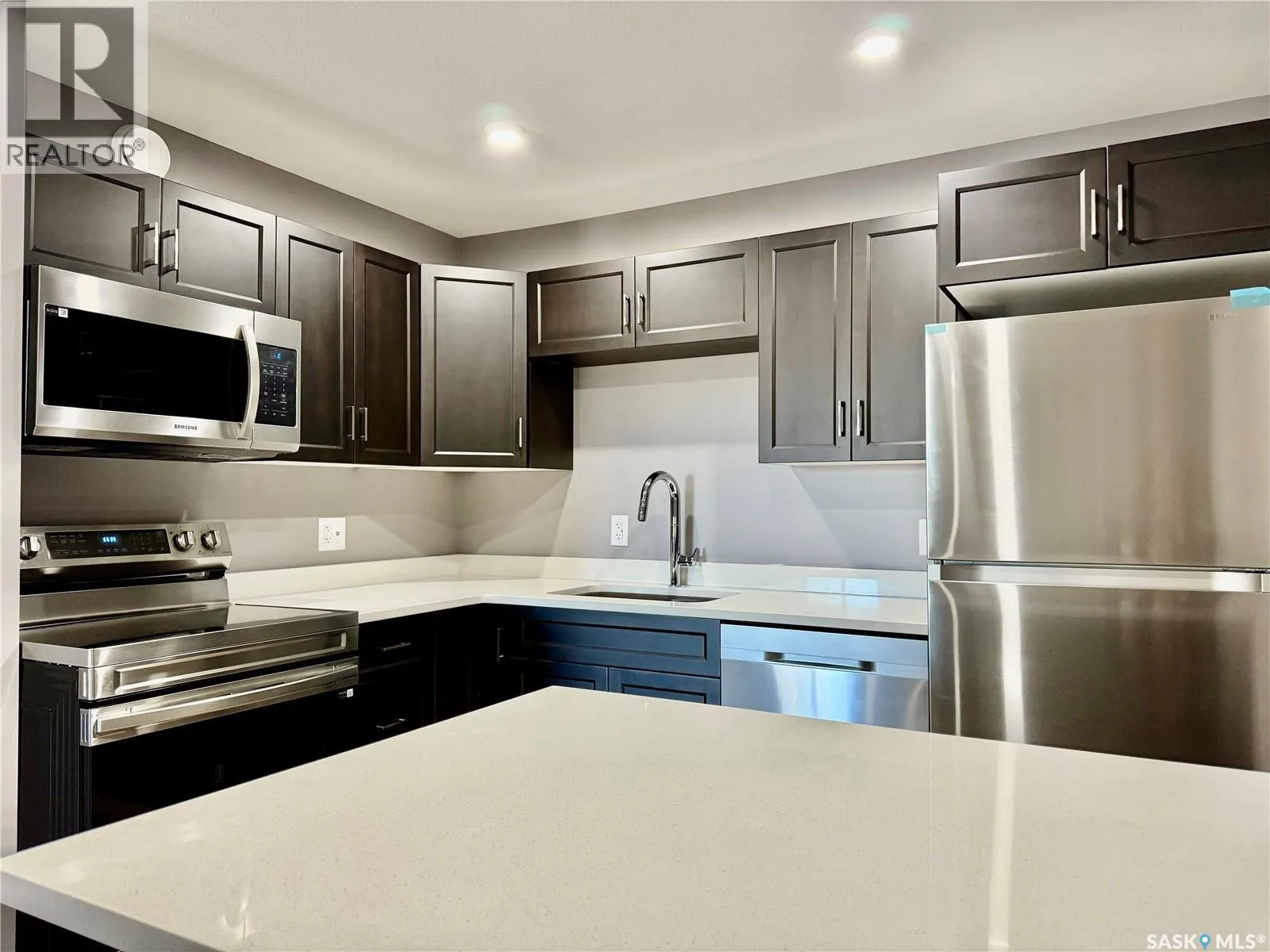 Top floor North East facing 2 bedroom condo in Parkland Condominiums with city skyline view! This suite has luxury vinyl plank floors throughout. Entry to unit has good size closet and direct access to In Suite Laundry room with new washer/dryer. Kitchen features new Pine finger joint cabinets with undermount sink & quartz counter tops, also boasting an island with quartz counter top. New fridge, stove, b/i dishwasher, and microwave/rangehood included. Livingroom has patio doors leading to North facing balcony. Down the hall are two bedrooms and a four piece bathroom. Pantry just off kitchen. The primary bedroom has walk in closet and vinyl plank floor. 2nd bedroom has closet and vinyl plank floor. 4 pc bath has new tub/shower, toilet and vanity with undermount sink and quartz counter top. Nice size storage in bathroom as well and vinyl plank floors. The condo will also have new window treatments throughout. One electrified outdoor parking stall included. Don't miss out on this modern unit with a great view of the city skyline! Buyer to contact City of Humboldt regarding taxes. Call today to view! (id:27476)