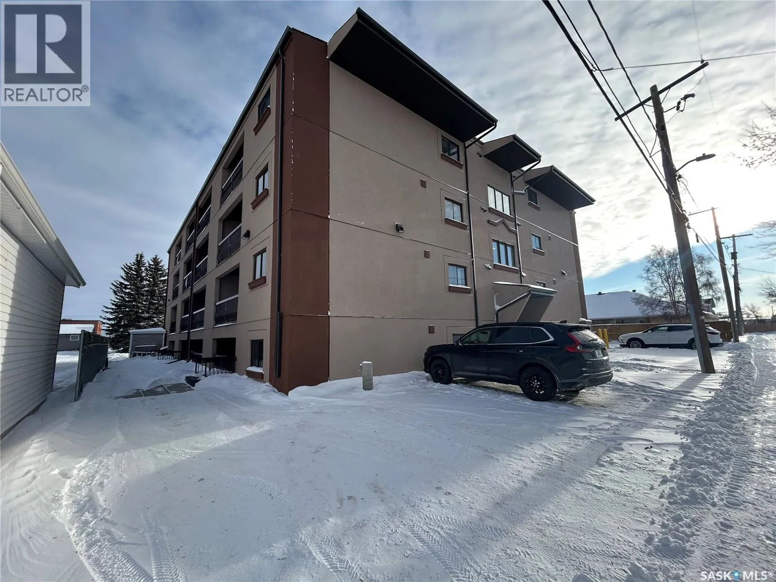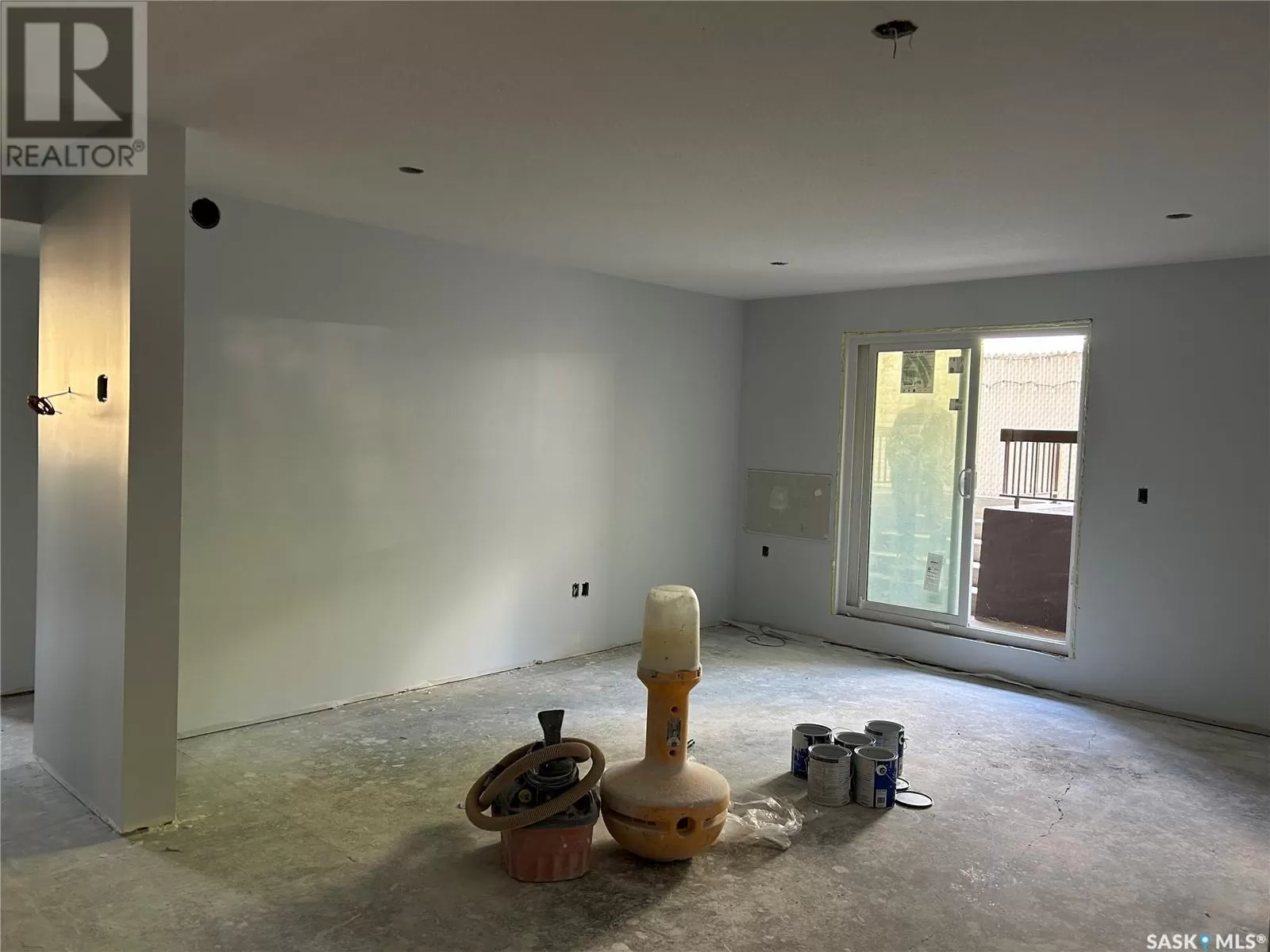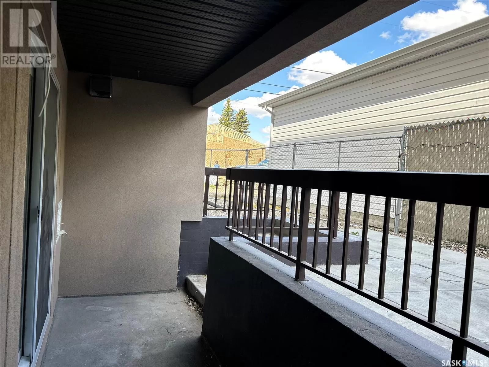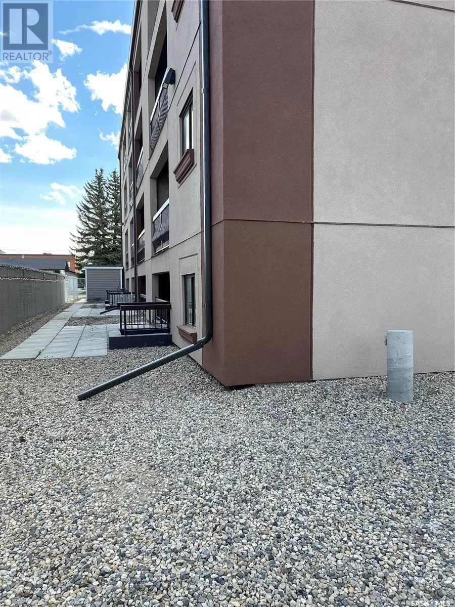 Welcome to Suite 106, located on the ground level of this condo at Parkland Condominiums. Set in the heart of downtown, this building has an estimated completion date for summer 2025 and will be new throughout! This suite offers a great lower covered patio area and just a few steps up is another outdoor area great for sitting or barbequing. The location of this unit offers year round access through the patio door to your vehicle......parking located at the back north west corner (one electrified parking stall with a little extra room). The interior of this suite will be stunning once completed! Open foyer area with separate in suite laundry, opens to the main living space, 2 bedrooms, and a full bath. Walls will be painted white, kitchen will be fitted with Custom Cabinetry from Touchwood Interiors in white with upper cabinets having glass detailing. Counters will be a mid tone grey arborite with a peninsula area. Floors will be fitted with Carrara Marble Vinyl Plank Tiles throughout keeping this unit bright and refreshing. The living room features a new sliding patio door and will be fitted with a new wall air conditioner. Two spacious bedrooms plus a full bath. The bathroom will offer matching cabinets and counters, plus the tub/shower will be accented with large grey rectangular tiles. All appliances to be included (pictures in photos of appliances and color scheme for this unit). Call to view today! (id:27476)