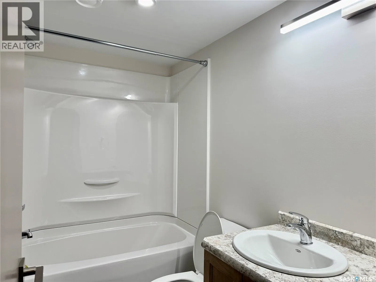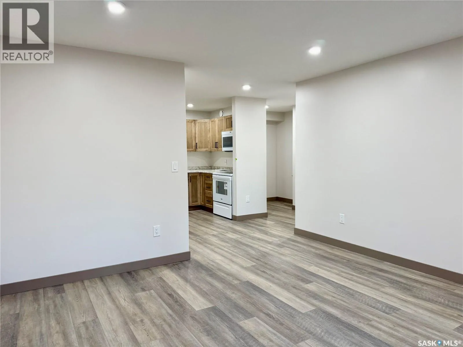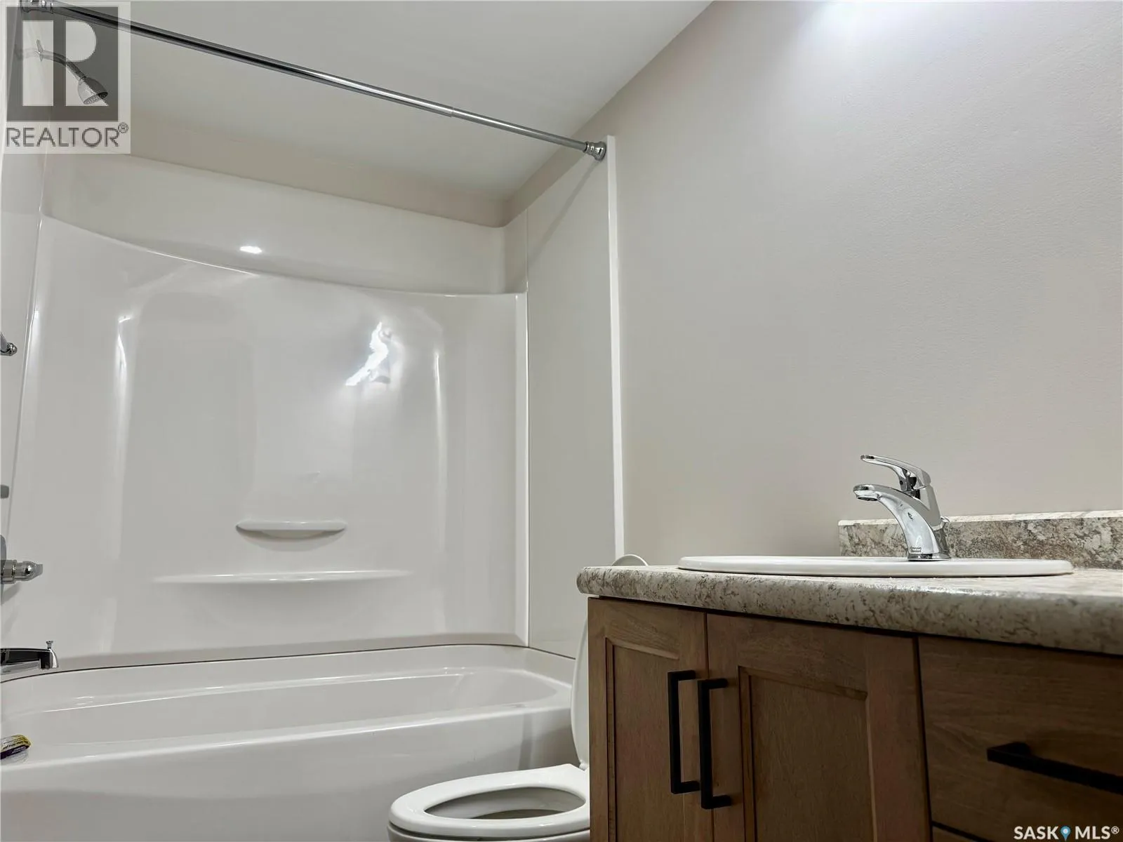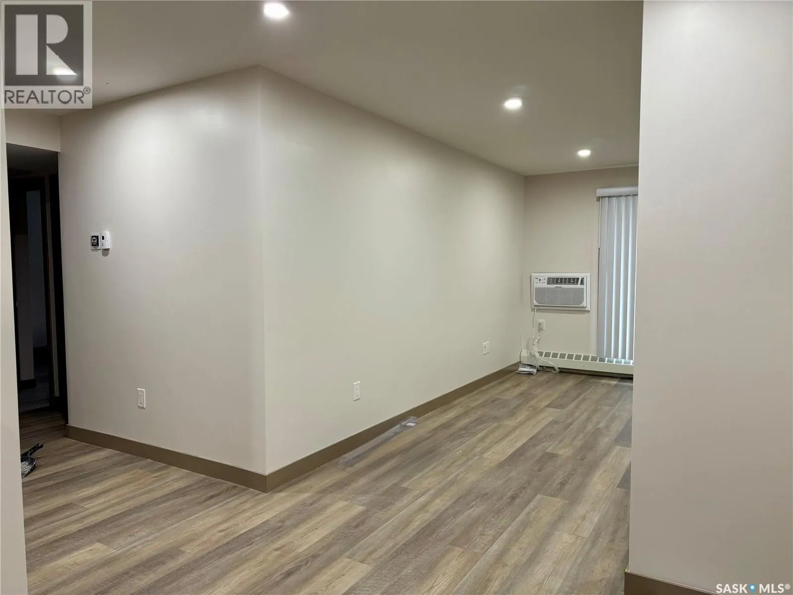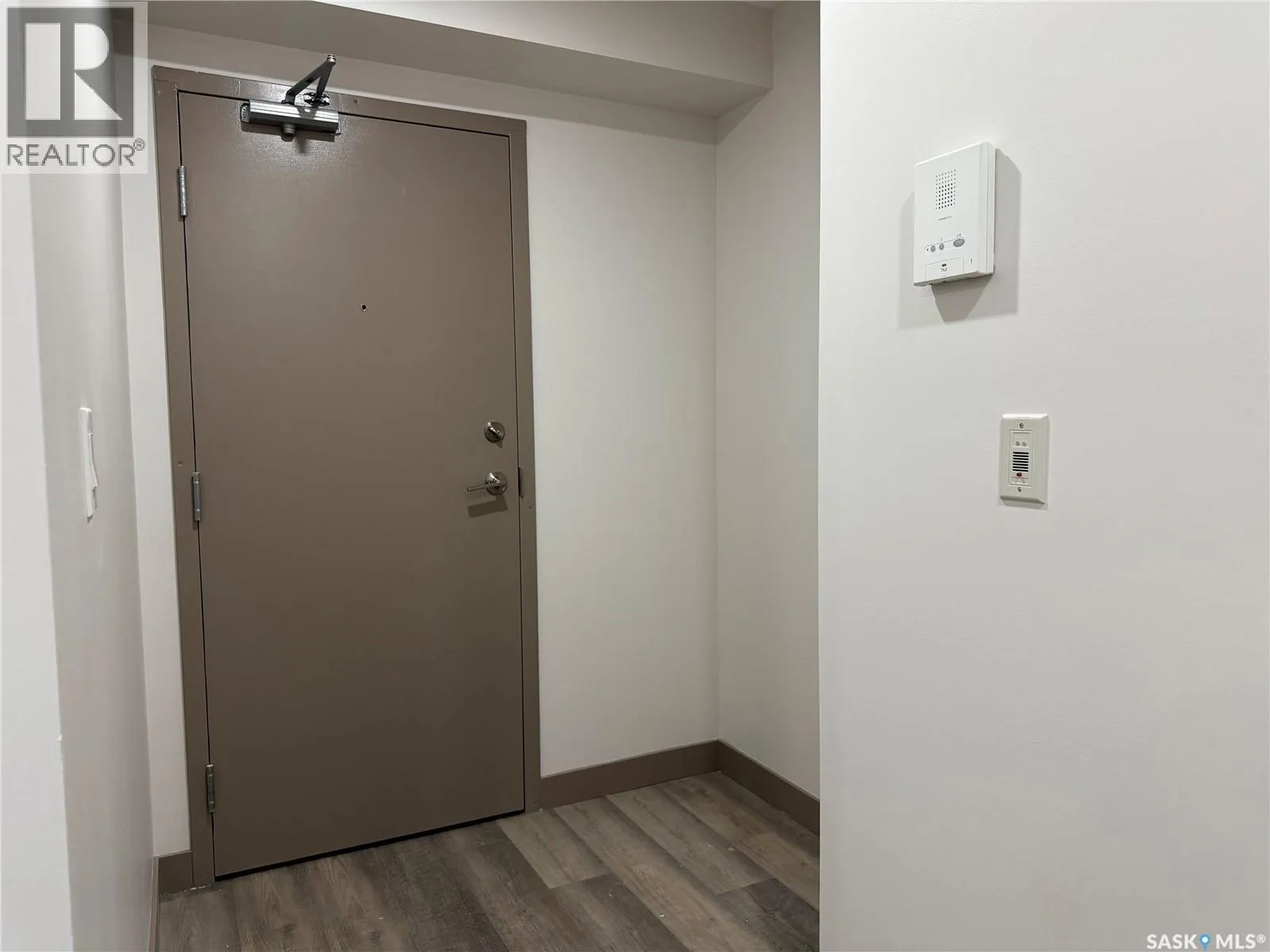 Bright open third floor Condo at Parkland Condominiums for Sale! This 2 bedroom suite has access to balcony overlooking the city skyline just off your living room. Enter this suite into a bright open foyer with Okanagen Desert Canyon vinyl plank floors throughout the unit. The kitchen will have winter maple cabinets with counter tops, fridge, glass top stove, B/I dishwasher and microwave rangehood included. The living room allows lots of natural light through the patio doors and boasts a wall air conditioner. A bright hallway leads you to the two bedrooms with closets. The laundry room is spacious and conveniently located across from bedrooms, includes washer/dryer. A 4 pc bath with winter maple cabinets. The windows and patio doors will have window treatments. One electrified exterior parking stall included. Enjoy living close to downtown, shopping, schools and services. Buyers to contact City of Humboldt for more information regarding taxes. Close to downtown Humboldt and approx 45 min from BHP Jansen Mine site. Call today to view! (id:27476)