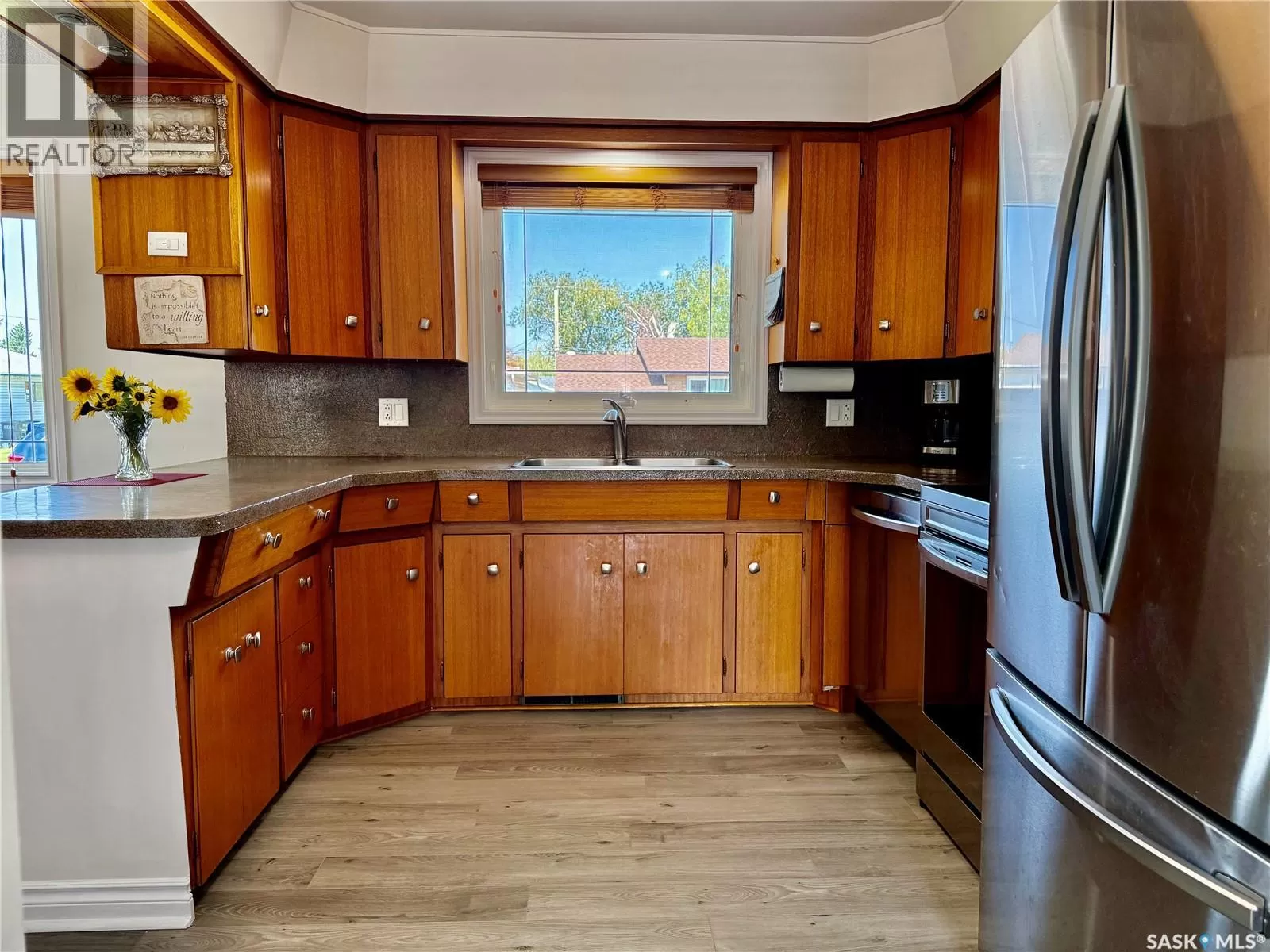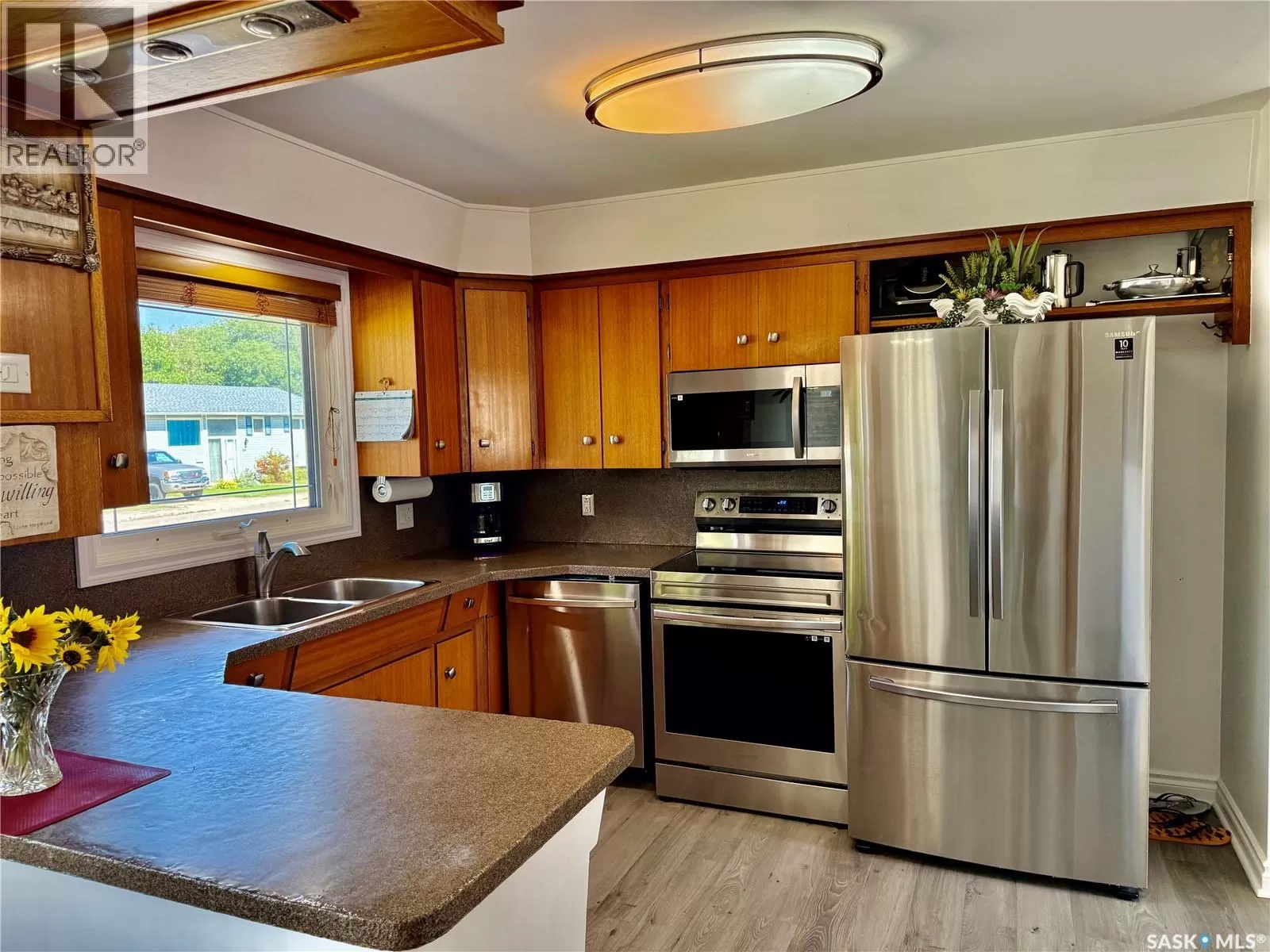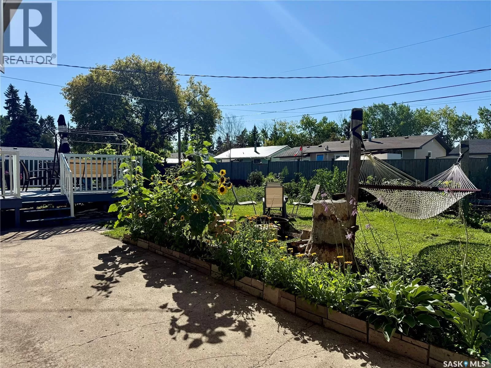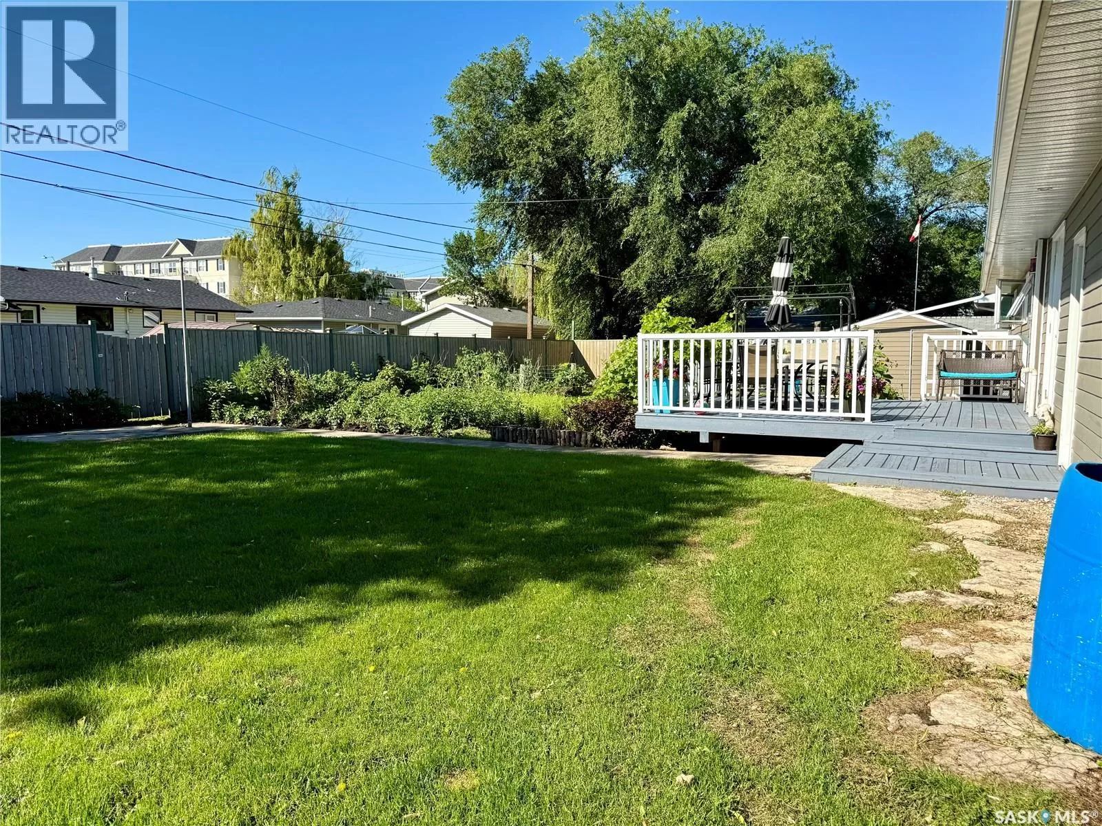 Well-Maintained Bungalow on Oversized Lot â Humboldt, SK . This updated bungalow is located on a quiet street close to a school and park, sitting on a 95â x 102â fully fenced lot with a deck, patio, garden, 2 sheds, RV parking, and front/back lawn. The main floor features direct entry from the attached insulated garage into a foyer and mudroom/laundry area with garden doors to the backyard deck with nat gas BBQ hookup. The kitchen offers abundant cabinetry and newer stainless steel appliances, adjoining a bright dining area with picture window and built-ins. The spacious living room, large primary bedroom, second bedroom, and 4-pc bath with ceramic tile complete the main level. The fully finished basement includes a large family room, 2 bedrooms (non-egress windows), and a stylish 4-pc bath with tile tub surround, rain shower, and Jacuzzi tub. Recent updates: furnace (2020), washer/dryer (2020), fridge (2023), stove basement bedroom flooring(2024), kitchen/dining/hallway main floor flooring, b/i dishwasher, microwave/rangehood (2025), shingles house and garage (July 2025), interior paint throughout house and garage(2025),Other updates over the years, windows, exterior doors, soffits, fascia, eaves, siding, most light fixtures, filter system for water throughout house. A move-in ready home with space, style, and locationâdonât miss this one! Call today to view! (id:27476)