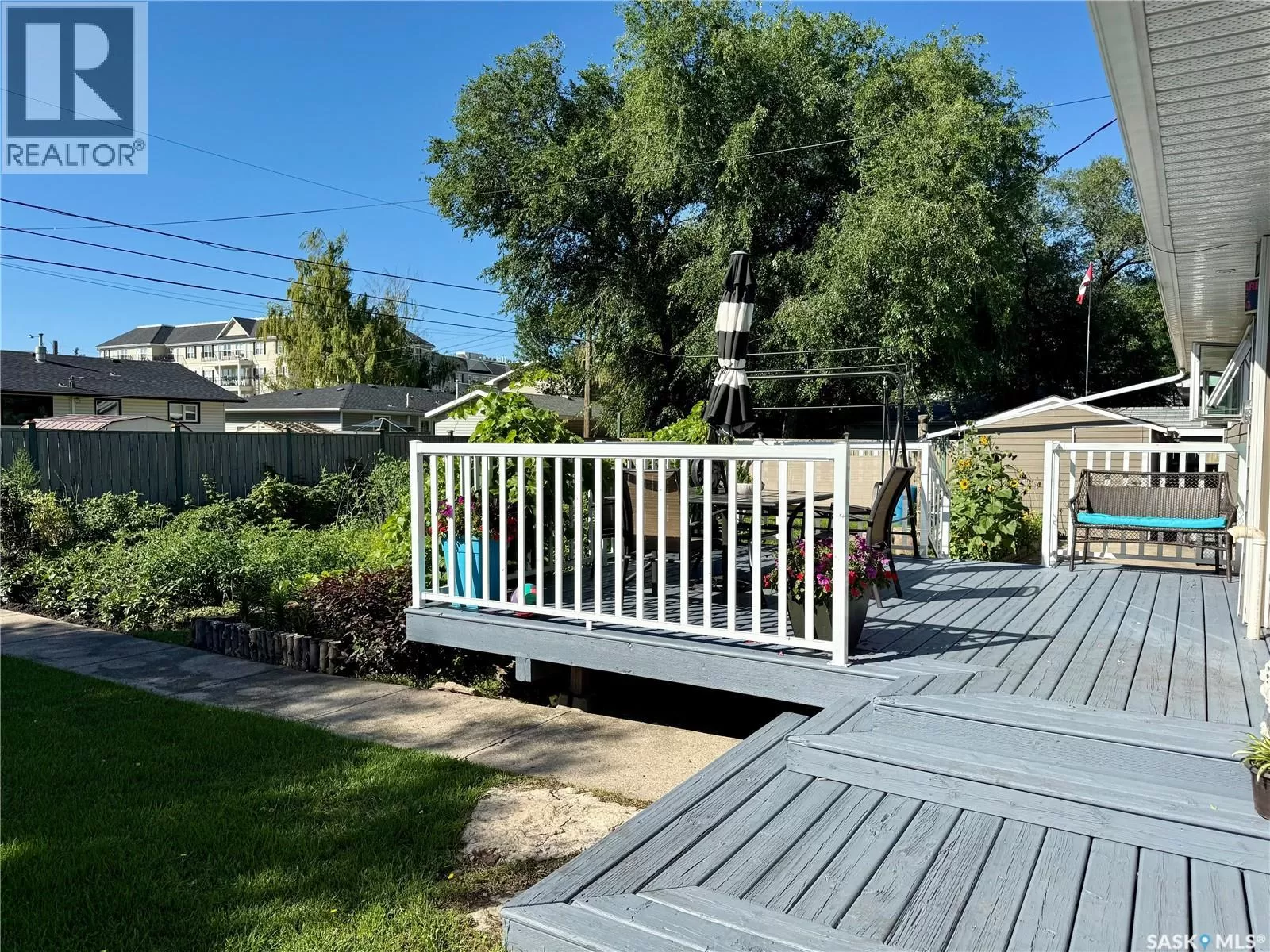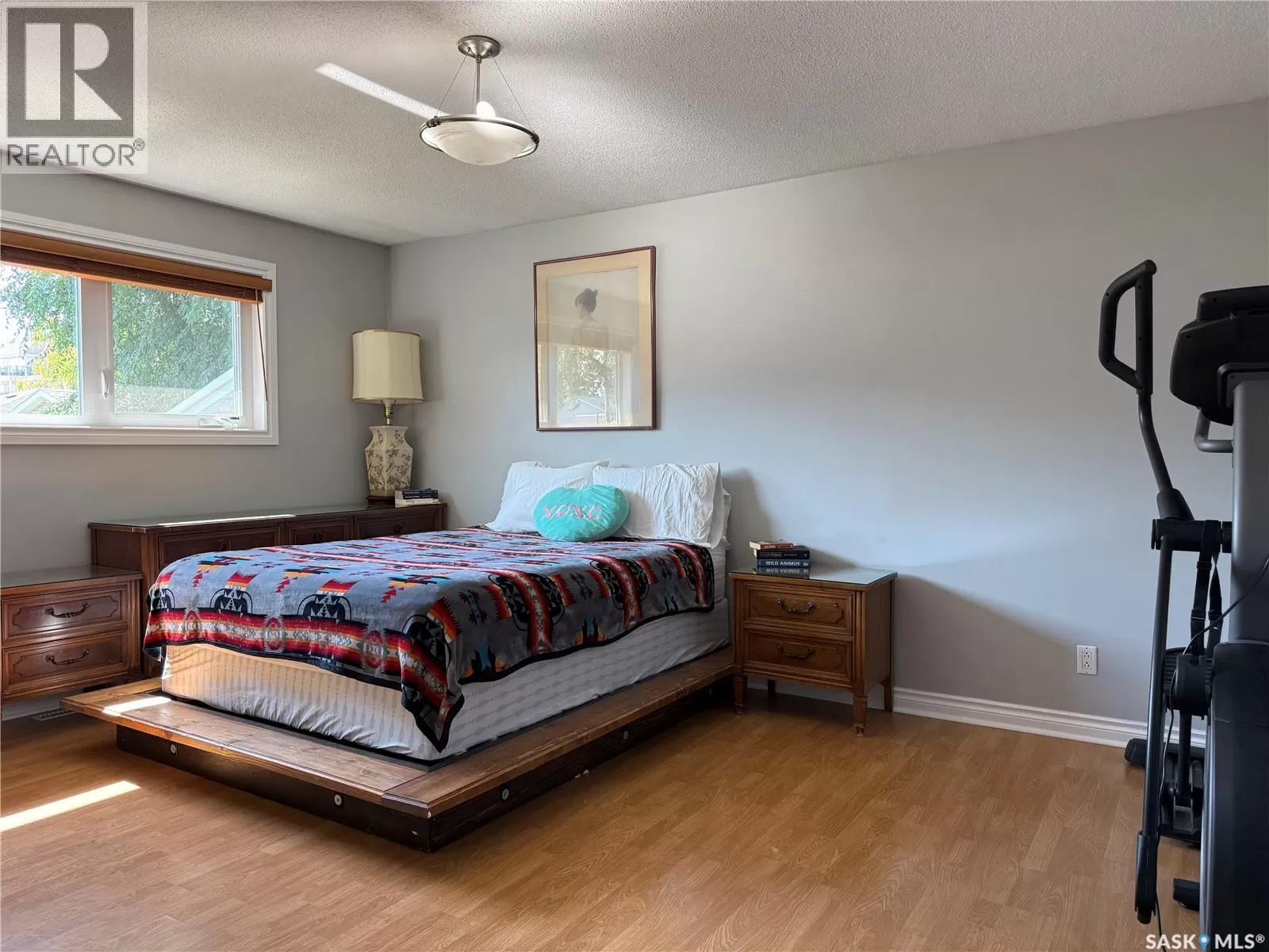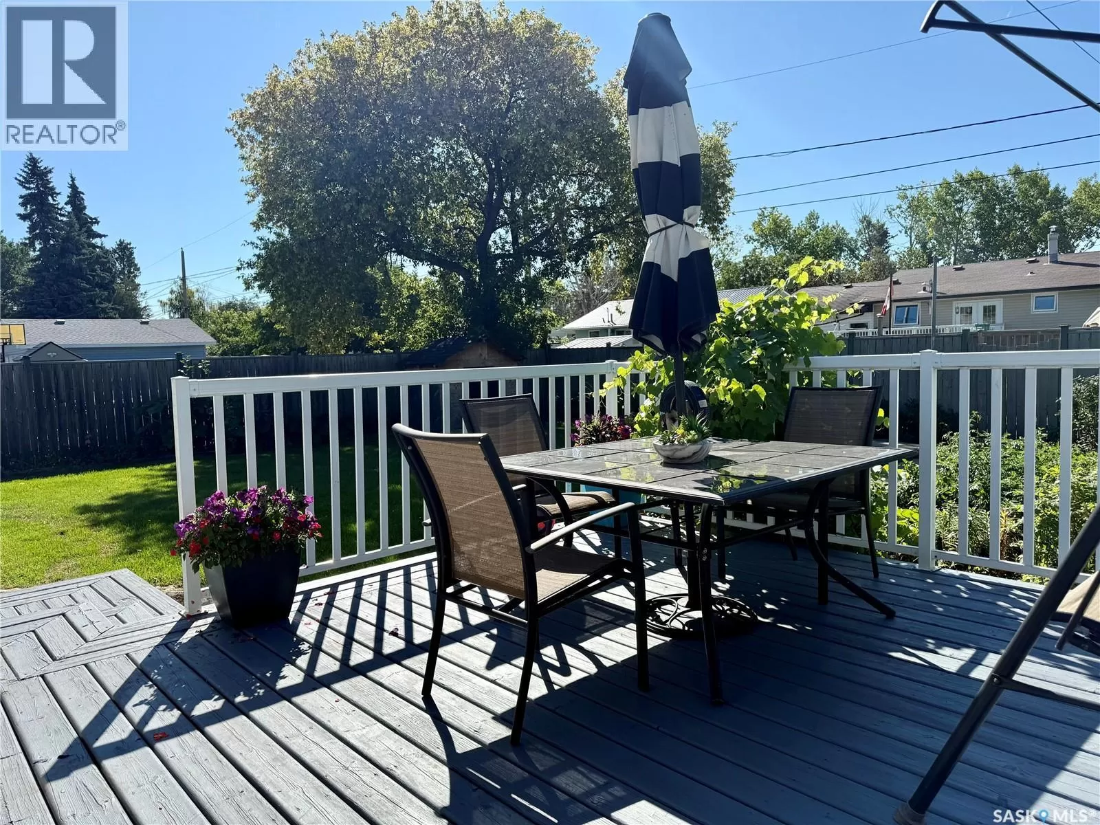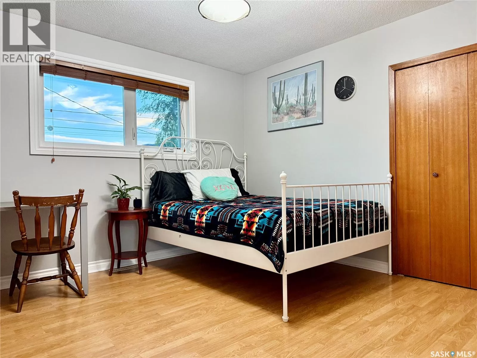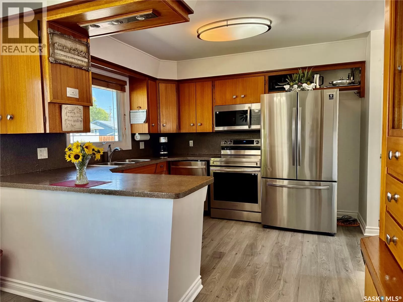 Well-Maintained Bungalow on Oversized Lot â Humboldt, SK . This updated bungalow is located on a quiet street close to a school and park, sitting on a 95â x 102â fully fenced lot with a deck, patio, garden, 2 sheds, RV parking, and front/back lawn. The main floor features direct entry from the attached insulated garage into a foyer and mudroom/laundry area with garden doors to the backyard deck with nat gas BBQ hookup. The kitchen offers abundant cabinetry and newer stainless steel appliances, adjoining a bright dining area with picture window and built-ins. The spacious living room, large primary bedroom, second bedroom, and 4-pc bath with ceramic tile complete the main level. The fully finished basement includes a large family room, 2 bedrooms (non-egress windows), and a stylish 4-pc bath with tile tub surround, rain shower, and Jacuzzi tub. Recent updates: furnace (2020), washer/dryer (2020), fridge (2023), stove basement bedroom flooring(2024), kitchen/dining/hallway main floor flooring, b/i dishwasher, microwave/rangehood (2025), shingles house and garage (July 2025), interior paint throughout house and garage(2025),Other updates over the years, windows, exterior doors, soffits, fascia, eaves, siding, most light fixtures, filter system for water throughout house. A move-in ready home with space, style, and locationâdonât miss this one! Call today to view! (id:27476)