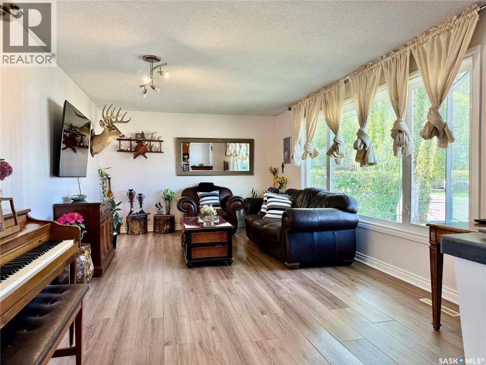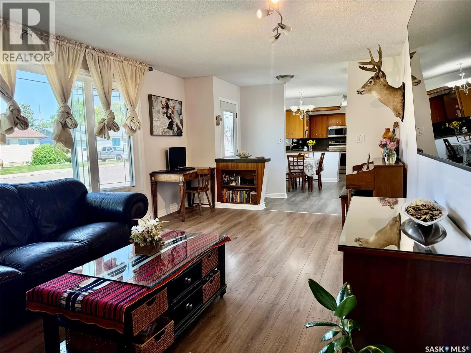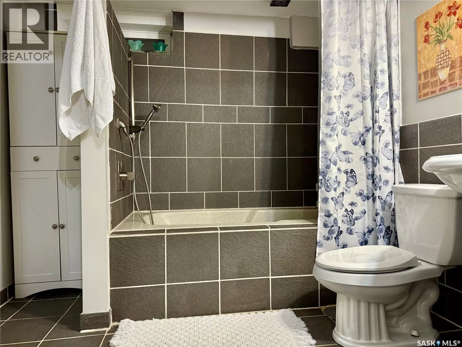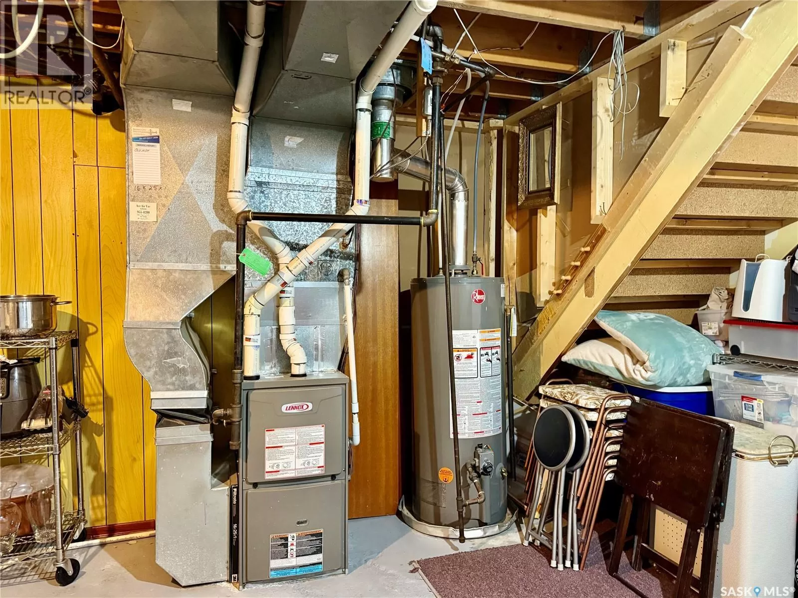 Well-Maintained Bungalow on Oversized Lot â Humboldt, SK . This updated bungalow is located on a quiet street close to a school and park, sitting on a 95â x 102â fully fenced lot with a deck, patio, garden, 2 sheds, RV parking, and front/back lawn. The main floor features direct entry from the attached insulated garage into a foyer and mudroom/laundry area with garden doors to the backyard deck with nat gas BBQ hookup. The kitchen offers abundant cabinetry and newer stainless steel appliances, adjoining a bright dining area with picture window and built-ins. The spacious living room, large primary bedroom, second bedroom, and 4-pc bath with ceramic tile complete the main level. The fully finished basement includes a large family room, 2 bedrooms (non-egress windows), and a stylish 4-pc bath with tile tub surround, rain shower, and Jacuzzi tub. Recent updates: furnace (2020), washer/dryer (2020), fridge (2023), stove basement bedroom flooring(2024), kitchen/dining/hallway main floor flooring, b/i dishwasher, microwave/rangehood (2025), shingles house and garage (July 2025), interior paint throughout house and garage(2025),Other updates over the years, windows, exterior doors, soffits, fascia, eaves, siding, most light fixtures, filter system for water throughout house. A move-in ready home with space, style, and locationâdonât miss this one! Call today to view! (id:27476)