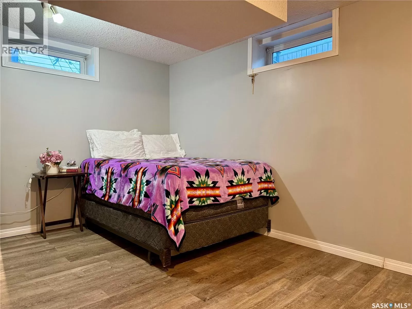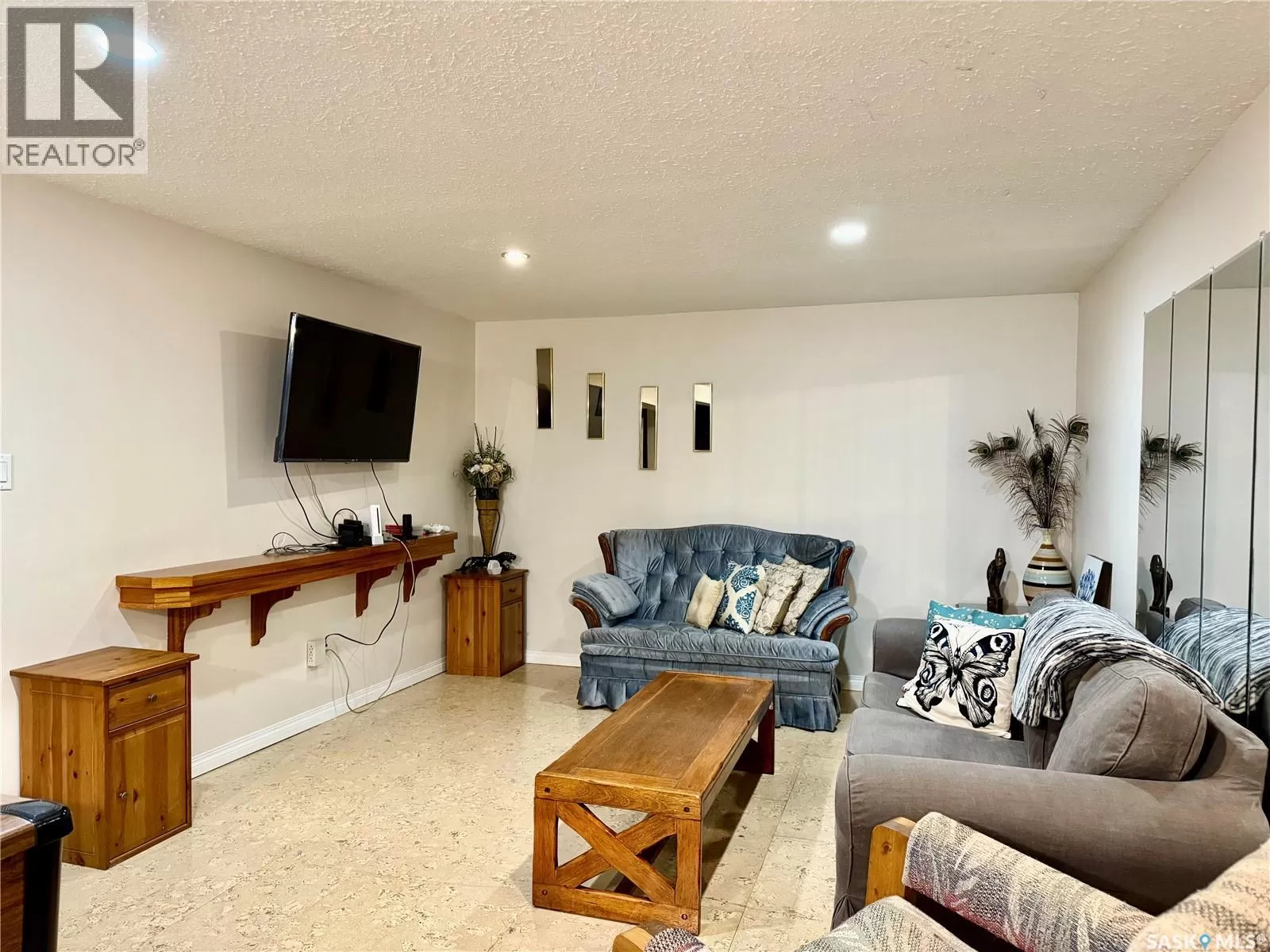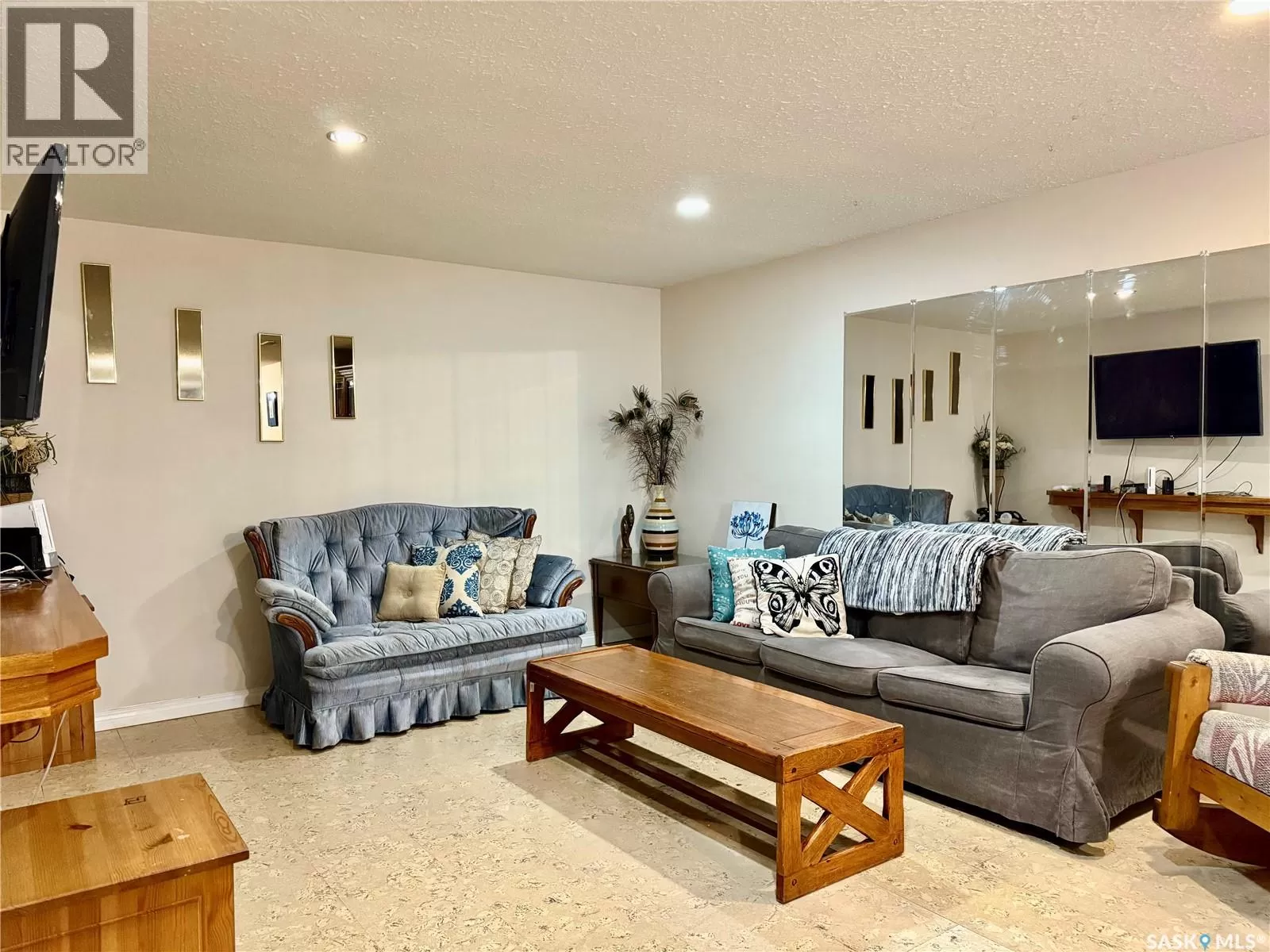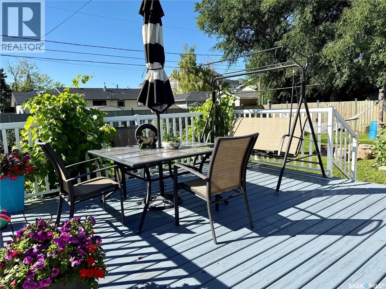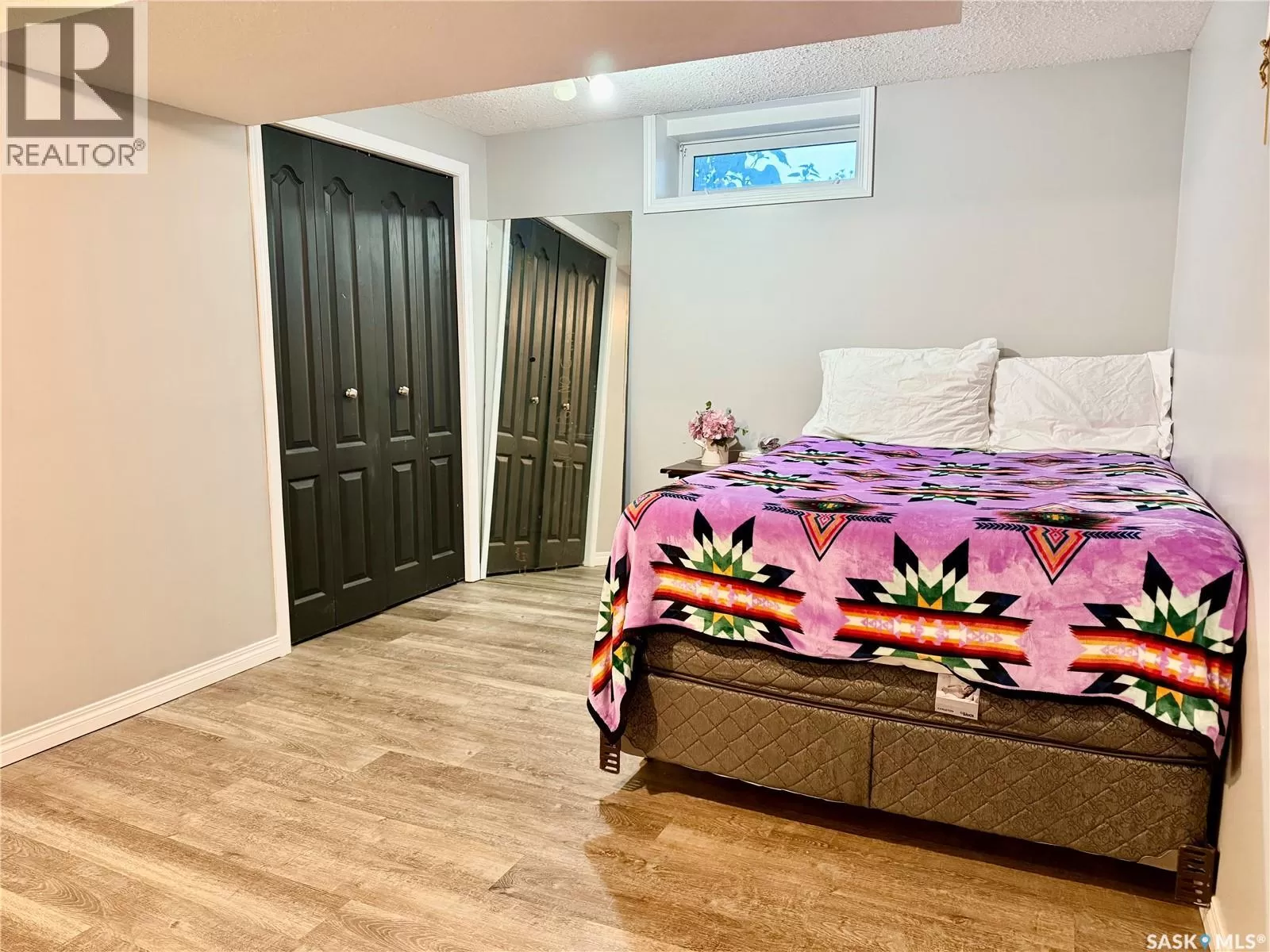 Well-Maintained Bungalow on Oversized Lot â Humboldt, SK . This updated bungalow is located on a quiet street close to a school and park, sitting on a 95â x 102â fully fenced lot with a deck, patio, garden, 2 sheds, RV parking, and front/back lawn. The main floor features direct entry from the attached insulated garage into a foyer and mudroom/laundry area with garden doors to the backyard deck with nat gas BBQ hookup. The kitchen offers abundant cabinetry and newer stainless steel appliances, adjoining a bright dining area with picture window and built-ins. The spacious living room, large primary bedroom, second bedroom, and 4-pc bath with ceramic tile complete the main level. The fully finished basement includes a large family room, 2 bedrooms (non-egress windows), and a stylish 4-pc bath with tile tub surround, rain shower, and Jacuzzi tub. Recent updates: furnace (2020), washer/dryer (2020), fridge (2023), stove basement bedroom flooring(2024), kitchen/dining/hallway main floor flooring, b/i dishwasher, microwave/rangehood (2025), shingles house and garage (July 2025), interior paint throughout house and garage(2025),Other updates over the years, windows, exterior doors, soffits, fascia, eaves, siding, most light fixtures, filter system for water throughout house. A move-in ready home with space, style, and locationâdonât miss this one! Call today to view! (id:27476)