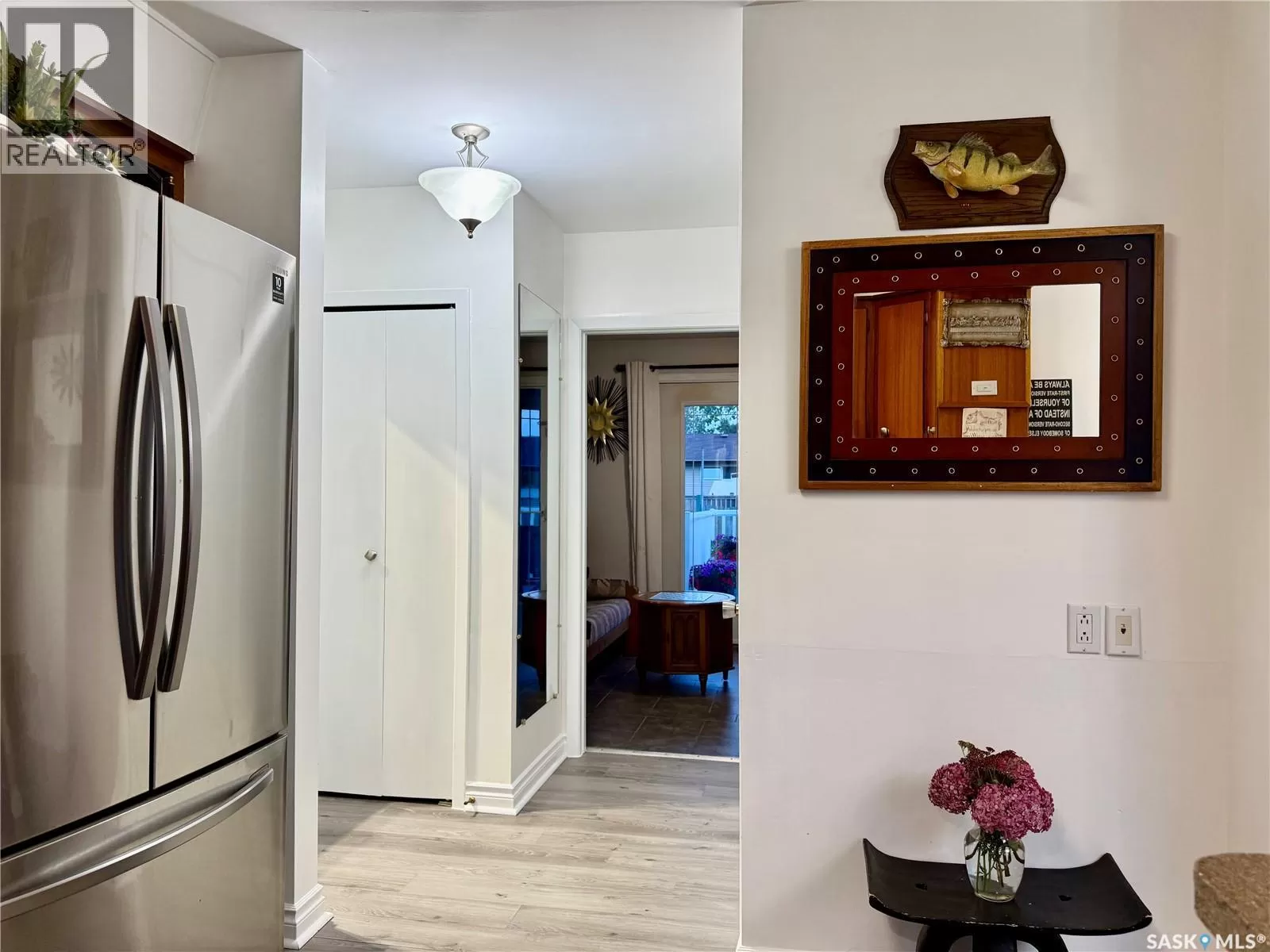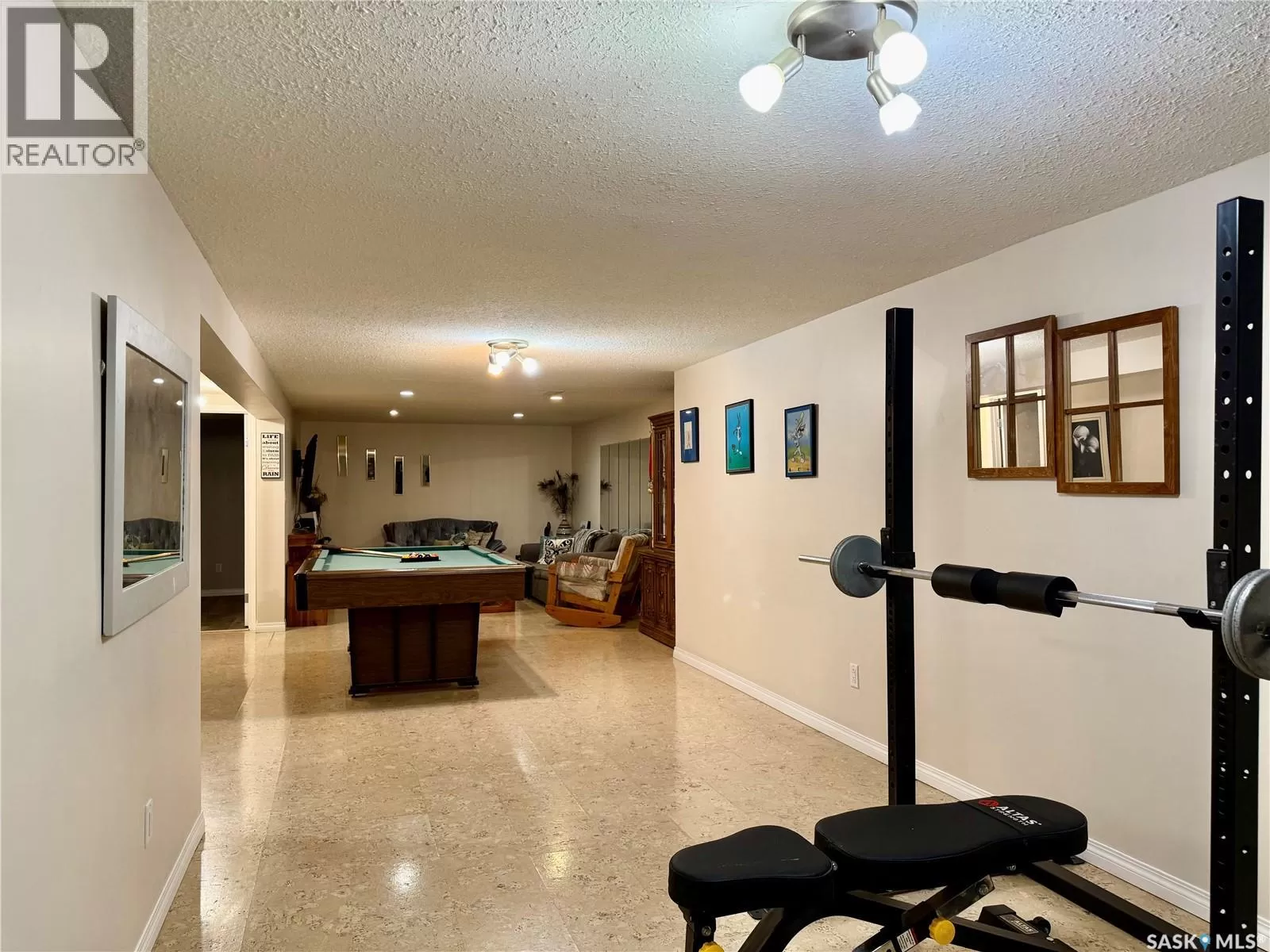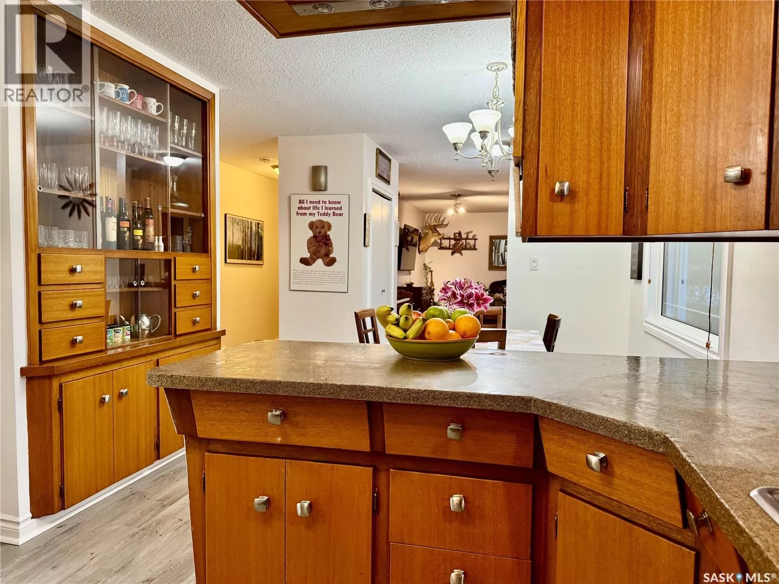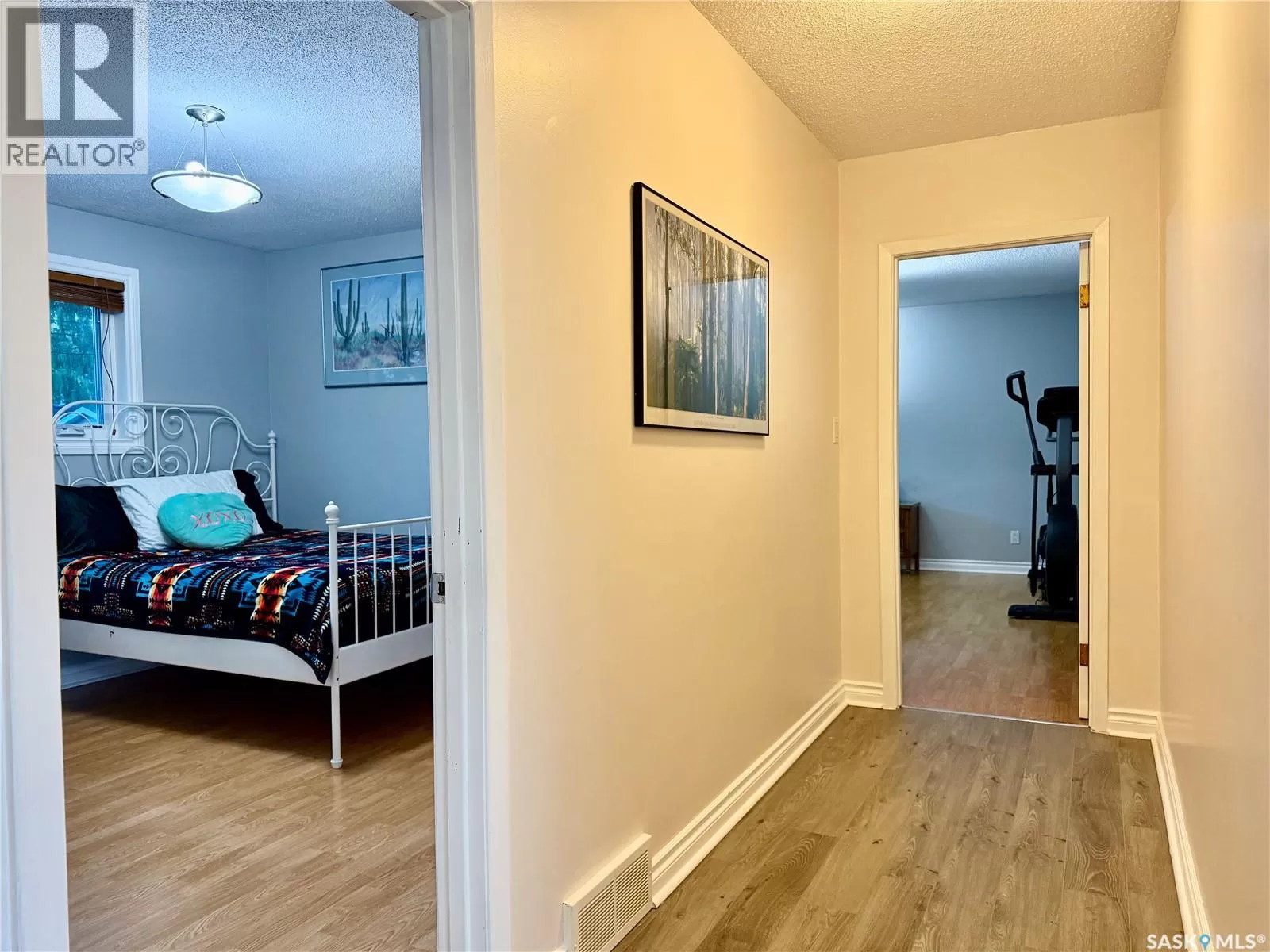 Well-Maintained Bungalow on Oversized Lot â Humboldt, SK . This updated bungalow is located on a quiet street close to a school and park, sitting on a 95â x 102â fully fenced lot with a deck, patio, garden, 2 sheds, RV parking, and front/back lawn. The main floor features direct entry from the attached insulated garage into a foyer and mudroom/laundry area with garden doors to the backyard deck with nat gas BBQ hookup. The kitchen offers abundant cabinetry and newer stainless steel appliances, adjoining a bright dining area with picture window and built-ins. The spacious living room, large primary bedroom, second bedroom, and 4-pc bath with ceramic tile complete the main level. The fully finished basement includes a large family room, 2 bedrooms (non-egress windows), and a stylish 4-pc bath with tile tub surround, rain shower, and Jacuzzi tub. Recent updates: furnace (2020), washer/dryer (2020), fridge (2023), stove basement bedroom flooring(2024), kitchen/dining/hallway main floor flooring, b/i dishwasher, microwave/rangehood (2025), shingles house and garage (July 2025), interior paint throughout house and garage(2025),Other updates over the years, windows, exterior doors, soffits, fascia, eaves, siding, most light fixtures, filter system for water throughout house. A move-in ready home with space, style, and locationâdonât miss this one! Call today to view! (id:27476)