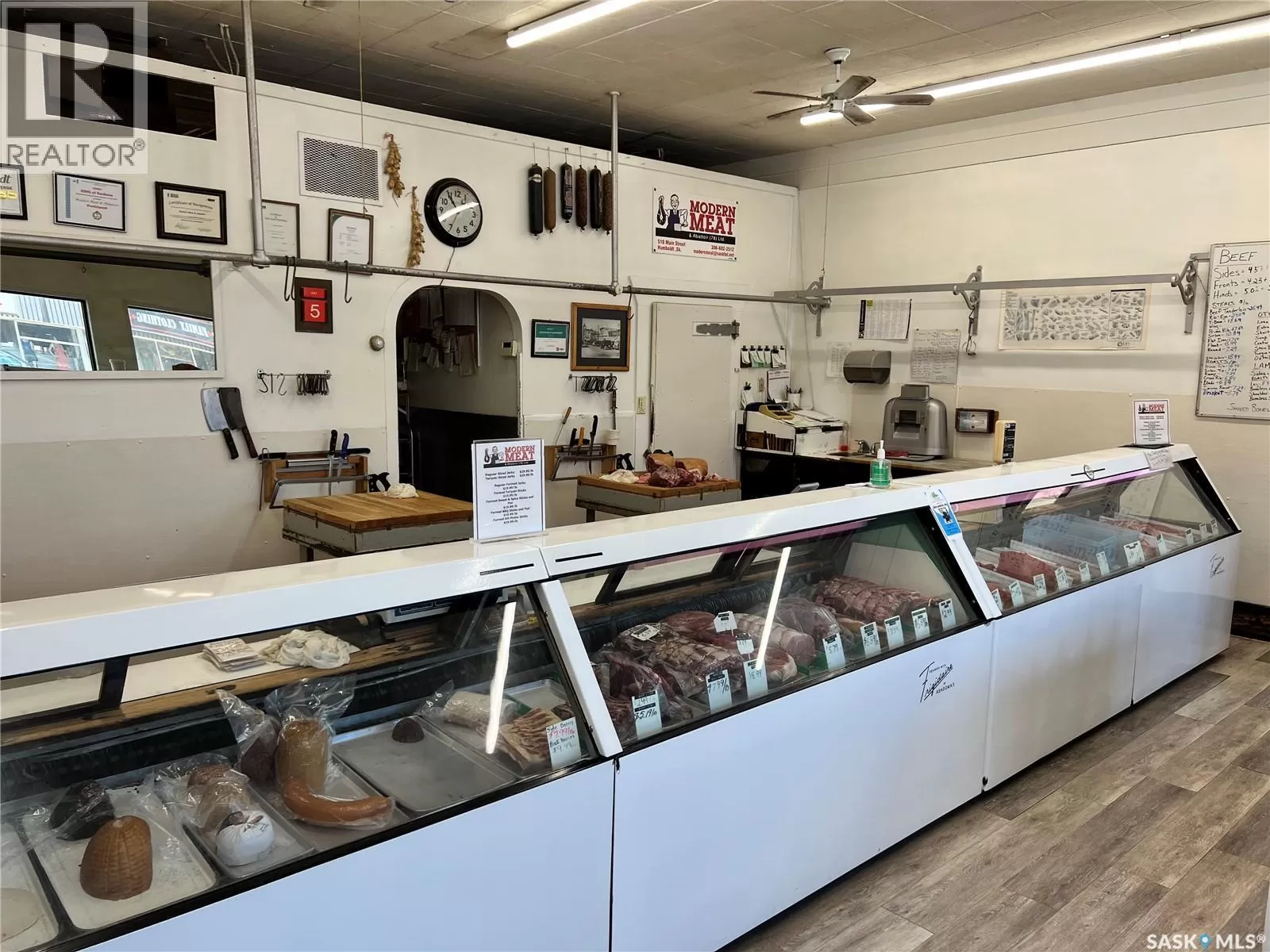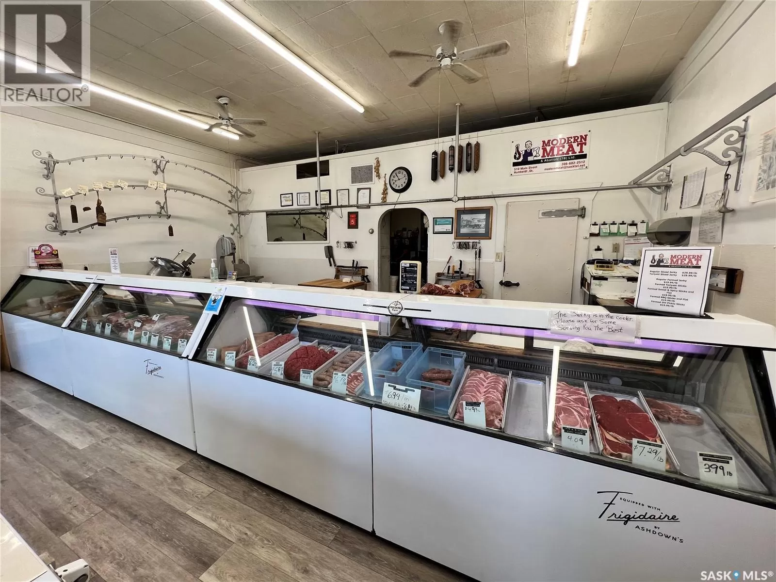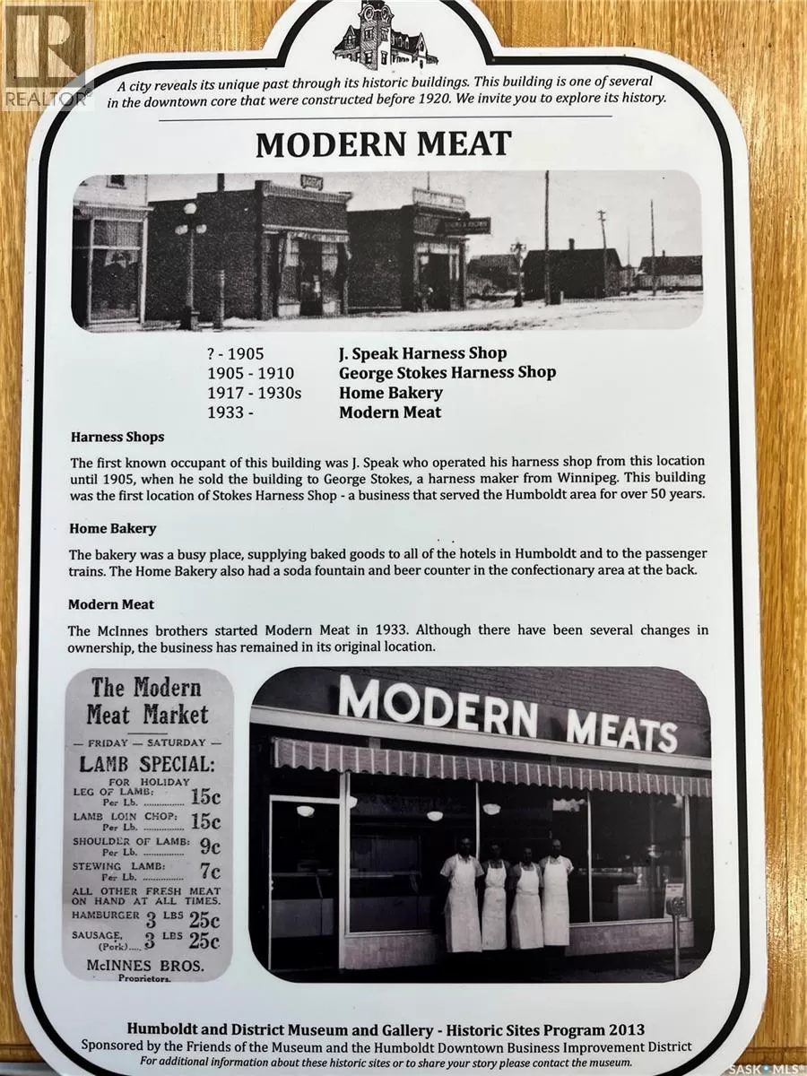 Modern Meat Butcher Shop and Retail Business for Sale in the City of Humboldt! Customers have been getting meat processed at this same location for 90 years. Located on Main Street(Hwy 20) in Humboldt, the current owner has been working at this shop for over 30 years, and ownership for the past 16 years. Owner is willing to train and stay on. A great opportunity for a buyer to get into the Meat Processing Industry. All equipment, machinery and fixtures are included, for a turnkey takeover. Information package available upon request. Call today to view or for more information! (id:27476)