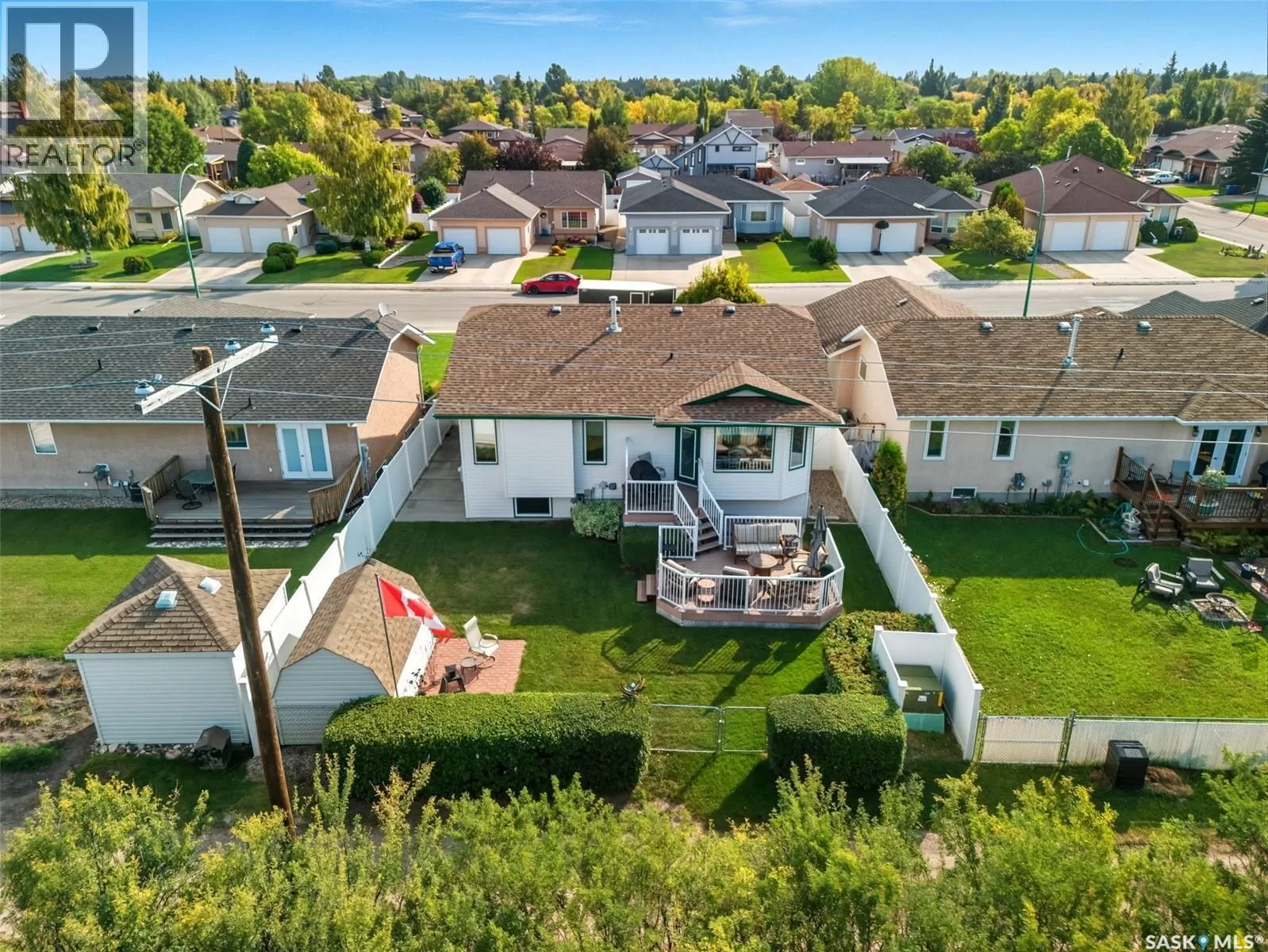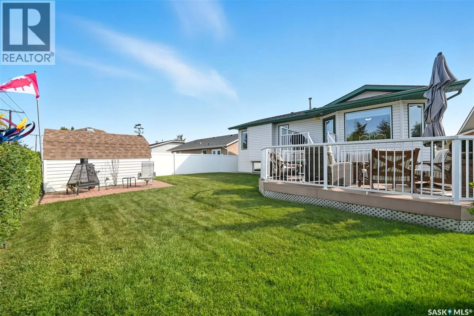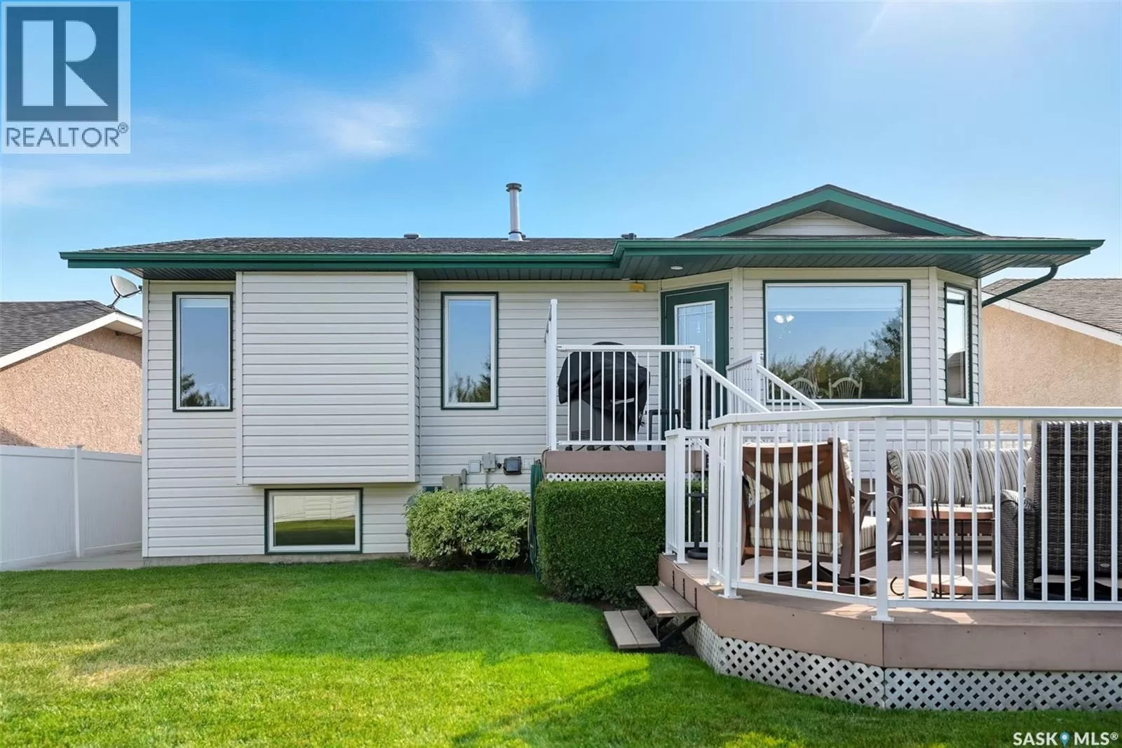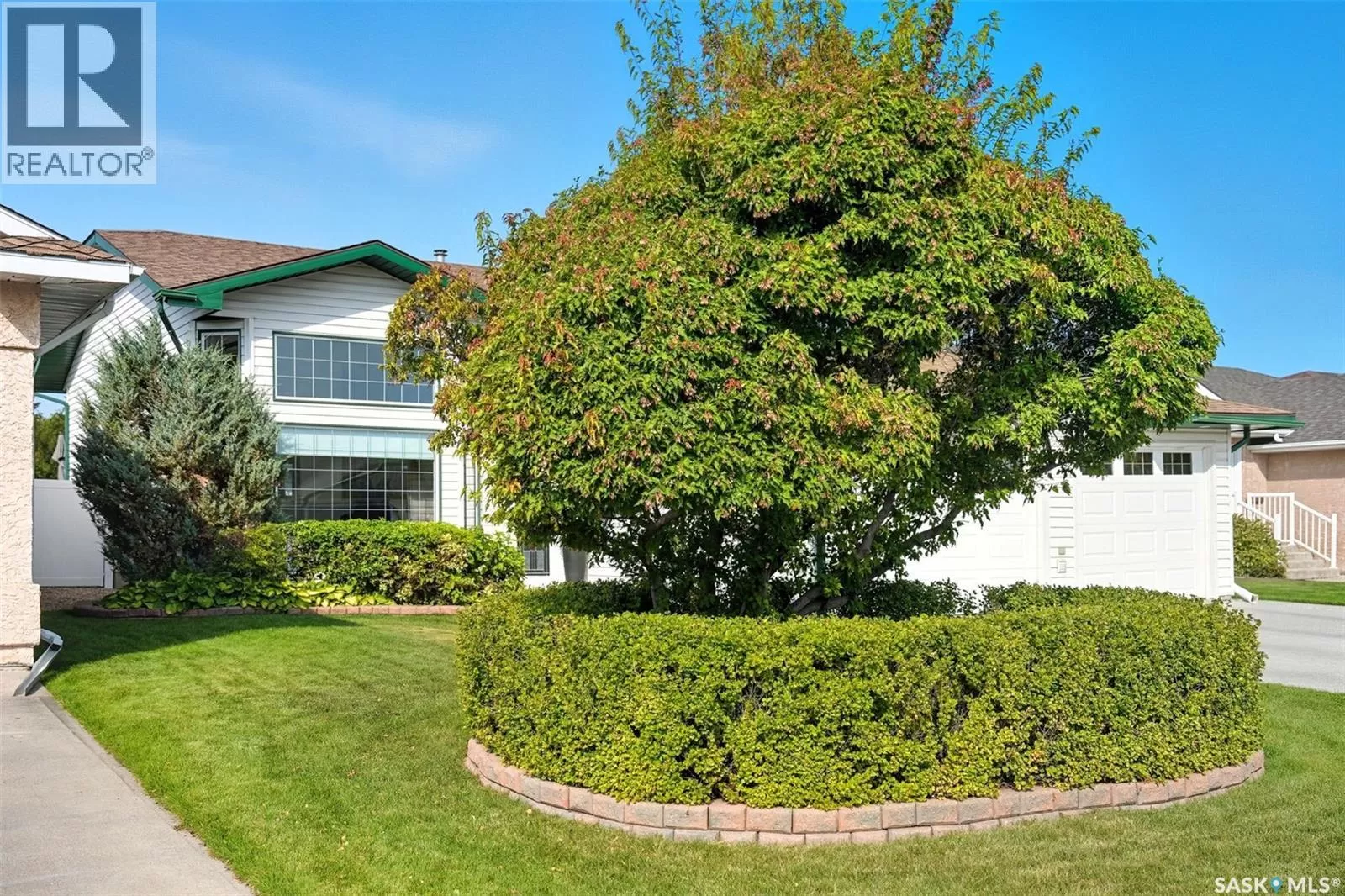Welcome to this immaculate bi-level home, perfectly situated in a highly desirable neighborhood near the Uniplex, and a variety of amenities. Backing a peaceful tree line with open prairie views, this property offers a rare combination of privacy and convenience. Step into a bright and inviting main level, where soaring ceilings and floor-to-ceiling windows in the front foyer and living room create an impressive sense of space. Decorative niches and ledges add character and style as you move into the heart of the home. The well-designed kitchen features an abundance of white cabinetry, seamlessly connected to the dining area with access to a maintenance-free, two-tiered deckâperfect for entertaining or simply enjoying the outdoors. The main floor is complete with a luxurious primary bedroom with a 3-piece ensuite, an additional bedroom, and a 4-piece bathroom. The lower level continues to impress with a stunning decorative glass feature overlooking the main living room, a spacious family room with a cozy natural gas fireplace, two additional bedrooms (including one with a walk-in closet), and a 3-piece bath/laundry room with plenty of built-in cabinetry. Car enthusiasts and hobbyists will love the garage, outfitted with cabinets and Handiwall slatwall systems for exceptional organization. Outside, the beautifully landscaped yard showcases mature trees, shrubs, hedges, flower beds, fire pit area, storage shed, and a fully fenced design that backs onto green space. This property truly shines inside and outâshowing 10/10 with pride of ownership throughout! (id:27476)