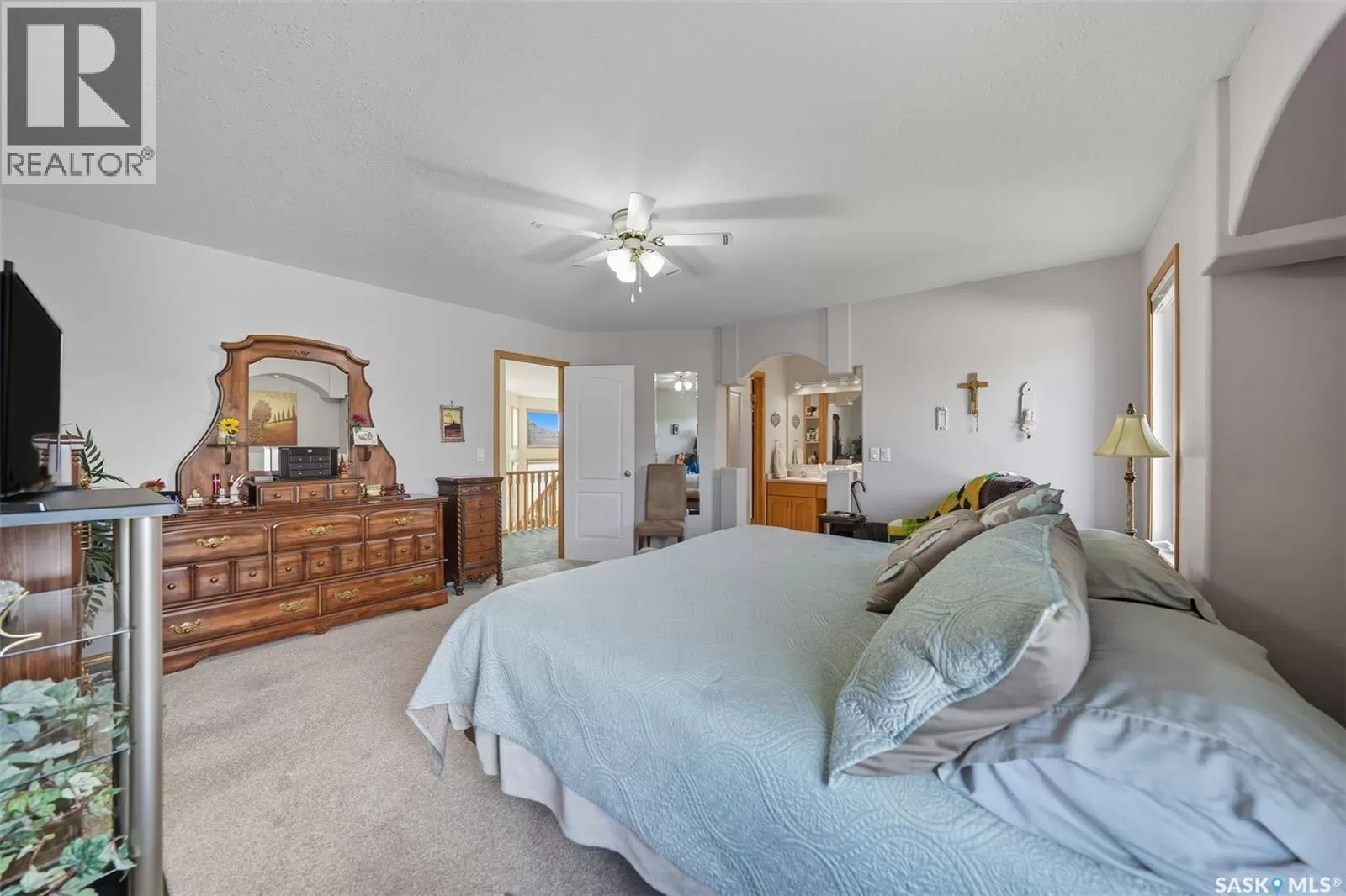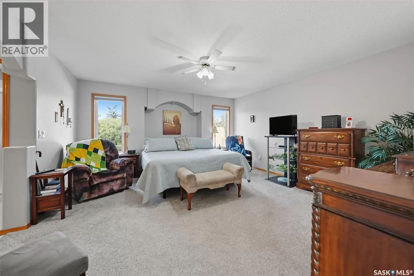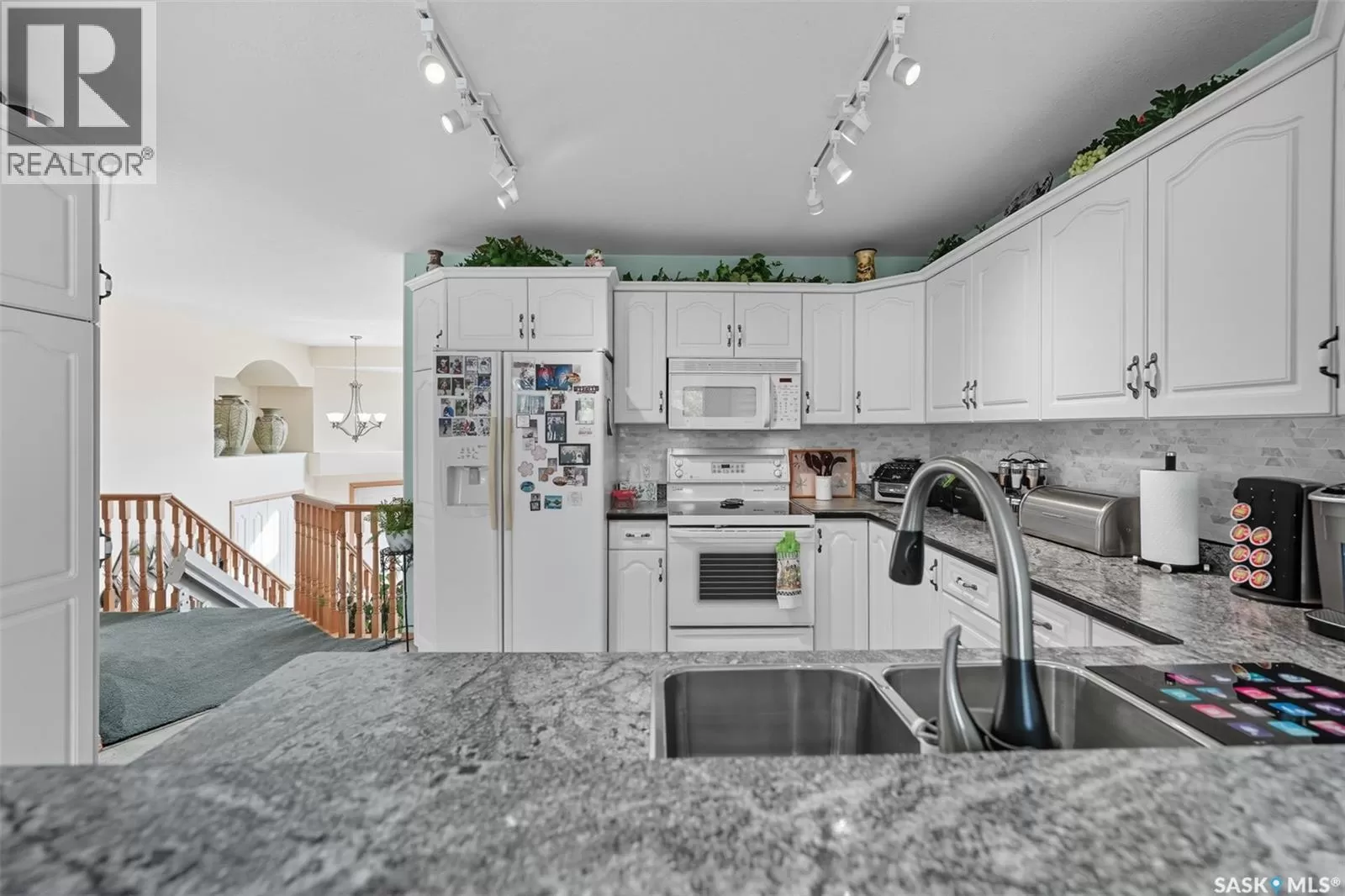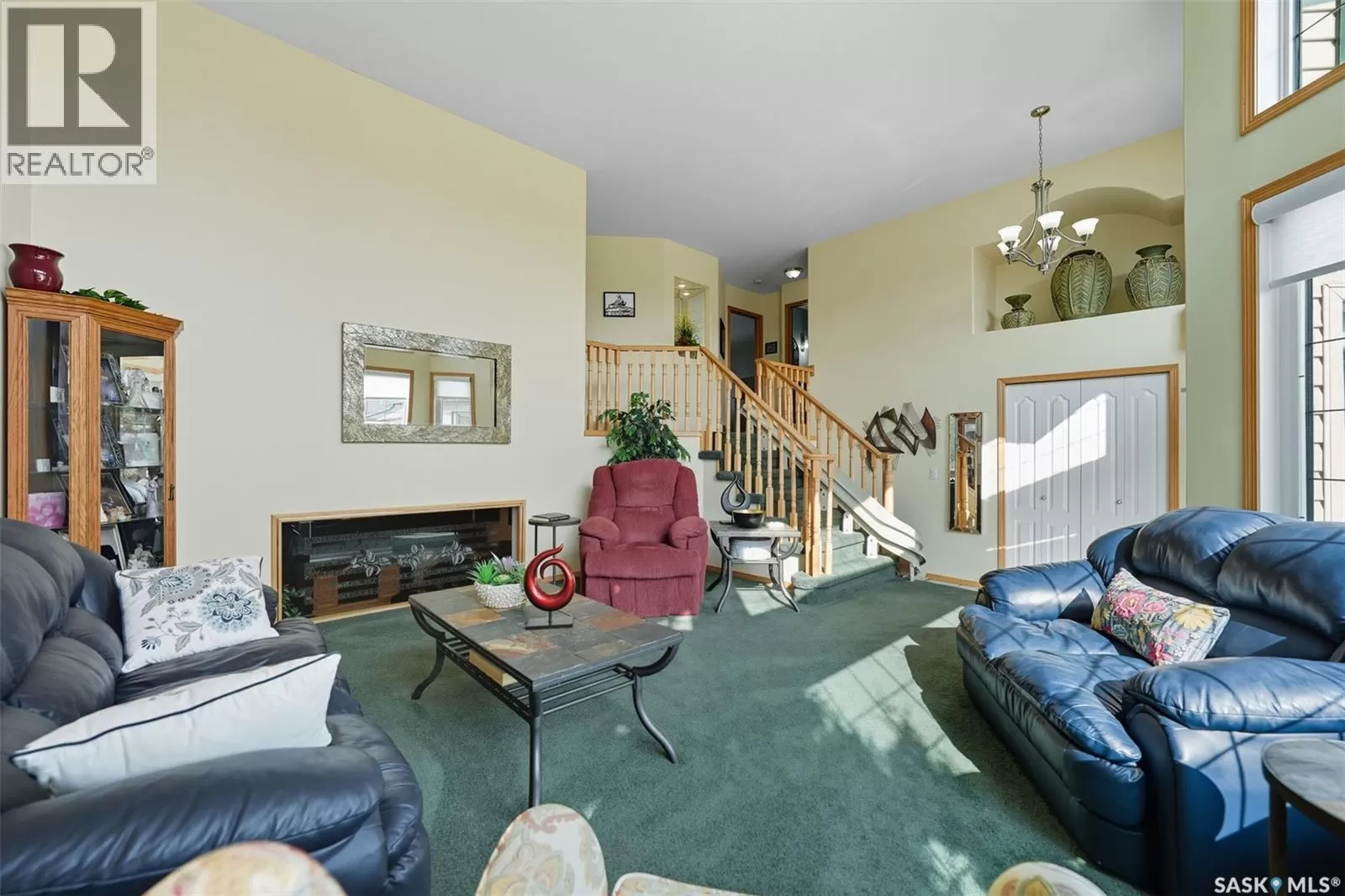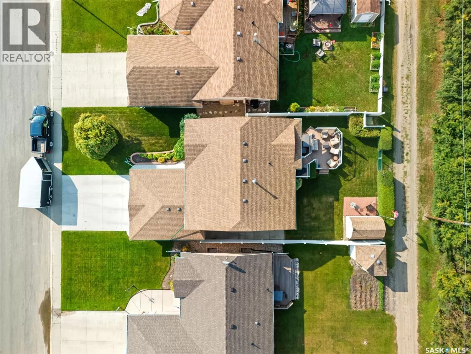 Welcome to this immaculate bi-level home, perfectly situated in a highly desirable neighborhood near the Uniplex, and a variety of amenities. Backing a peaceful tree line with open prairie views, this property offers a rare combination of privacy and convenience. Step into a bright and inviting main level, where soaring ceilings and floor-to-ceiling windows in the front foyer and living room create an impressive sense of space. Decorative niches and ledges add character and style as you move into the heart of the home. The well-designed kitchen features an abundance of white cabinetry, seamlessly connected to the dining area with access to a maintenance-free, two-tiered deckâperfect for entertaining or simply enjoying the outdoors. The main floor is complete with a luxurious primary bedroom with a 3-piece ensuite, an additional bedroom, and a 4-piece bathroom. The lower level continues to impress with a stunning decorative glass feature overlooking the main living room, a spacious family room with a cozy natural gas fireplace, two additional bedrooms (including one with a walk-in closet), and a 3-piece bath/laundry room with plenty of built-in cabinetry. Car enthusiasts and hobbyists will love the garage, outfitted with cabinets and Handiwall slatwall systems for exceptional organization. Outside, the beautifully landscaped yard showcases mature trees, shrubs, hedges, flower beds, fire pit area, storage shed, and a fully fenced design that backs onto green space. This property truly shines inside and outâshowing 10/10 with pride of ownership throughout! (id:27476)